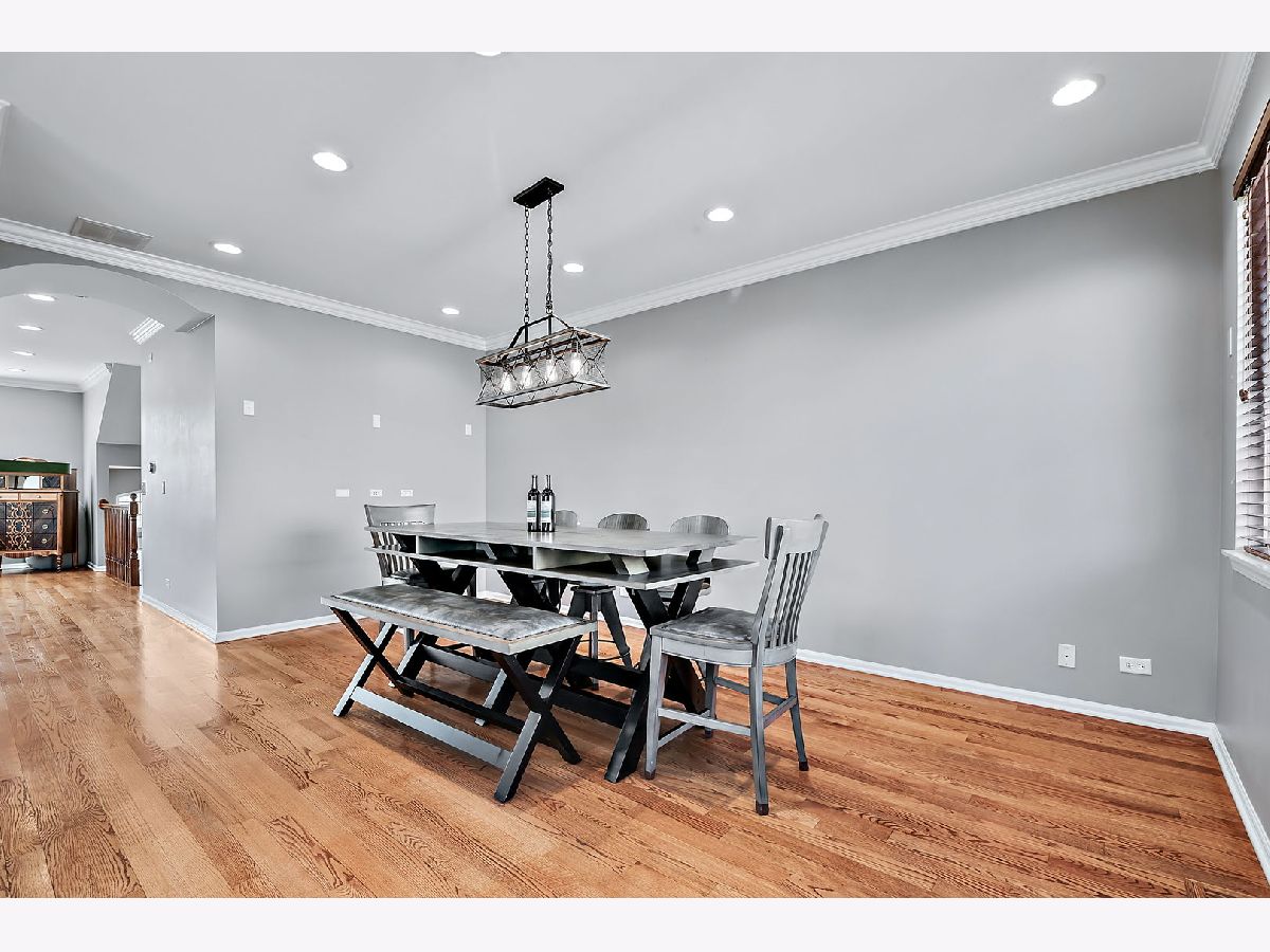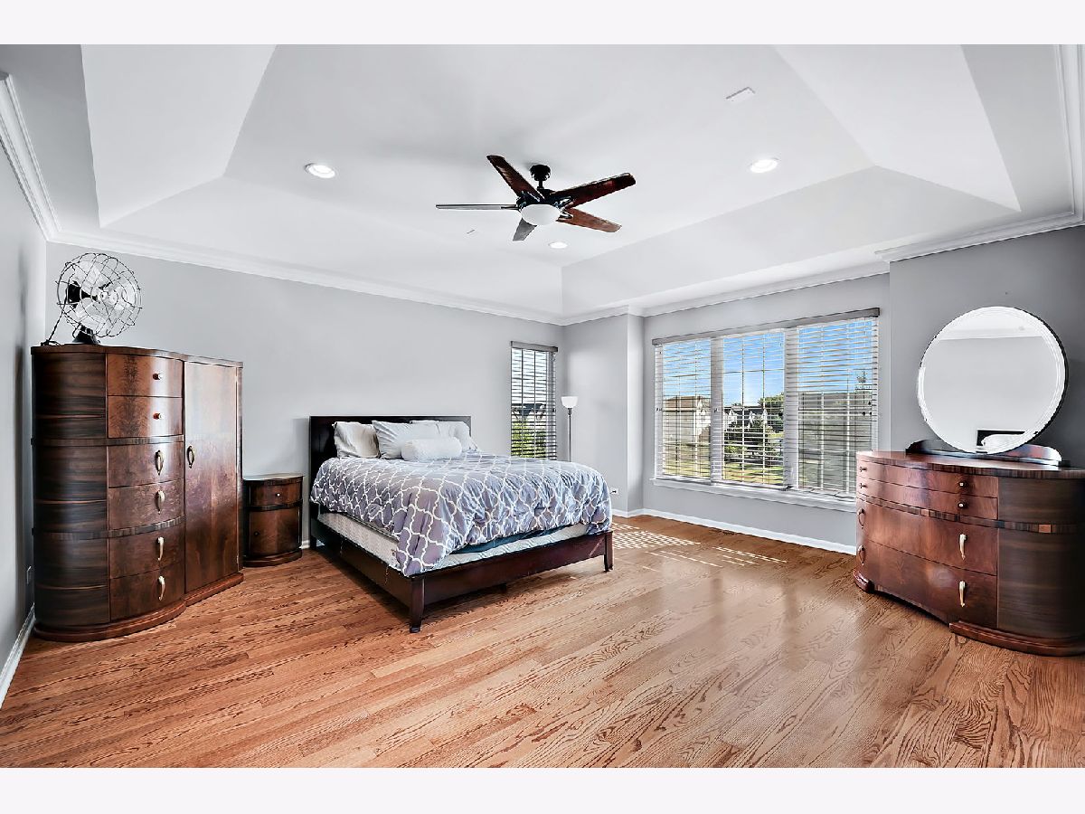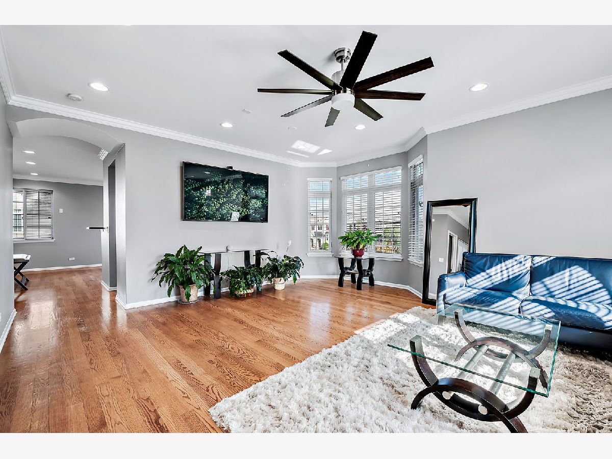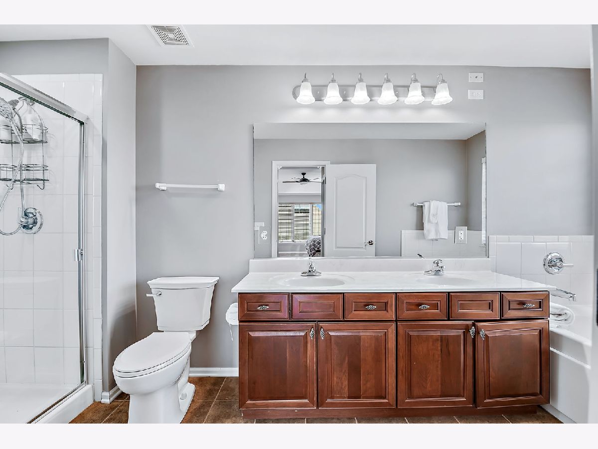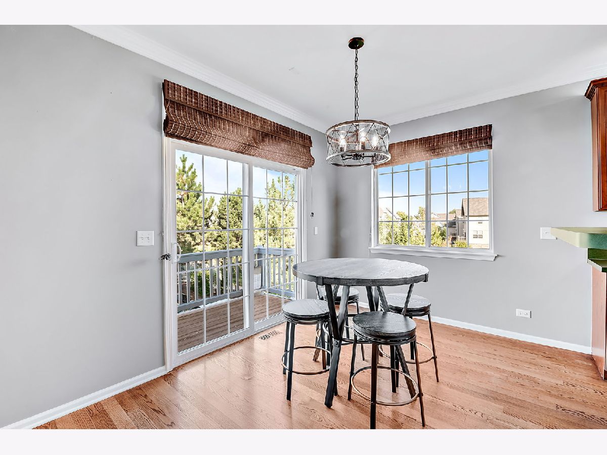This exceptional end-unit townhome is a true gem, featuring an inviting open-concept design and showcasing the elegance of hardwood floors throughout. With 9-foot ceilings on the first floor, this 3-bedroom, 3.5-bathroom home includes a 2-car garage for your convenience. You'll love the abundance of natural light that graces this east-facing residence. The well-appointed kitchen boasts 42" cabinets, a pantry, and stainless steel appliances, all set against the backdrop of a large window that frames a picturesque park view. Sliding doors in the breakfast area open to a charming balcony, seamlessly blending the indoors with the outdoors. The second-floor master suite is a private retreat, offering two generously sized walk-in closets, a tray ceiling, and a spacious bathroom with a separate shower, Jacuzzi bathtub, and dual sink vanity. Another master bedroom on the second floor enjoys its own bathroom suite and an extra-large closet, providing ample space and comfort. You'll find exceptional storage throughout the home, ensuring your organizational needs are met. The second-floor loft includes a dedicated workstation, perfect for those who work from home. Ceiling fans in all bedrooms enhance both comfort and style, while the second-floor laundry room streamlines daily tasks. The lower level is a versatile space, complete with a full bath and an additional bedroom, making it an excellent in-law arrangement or guest suite. Additional features include a newer oversized HVAC unit and outside condenser (replaced in 2020), brand new siding and roof (2023), and a Wink System that allows for seamless connection and automation of home devices via phone or tablet from anywhere in the world. Numerous other improvements are detailed in the additional information. The location of this home is truly ideal, just minutes away from expressways and train stations, ensuring a convenient daily commute. Don't miss out on this incredible opportunity to make this remarkable townhome your own.