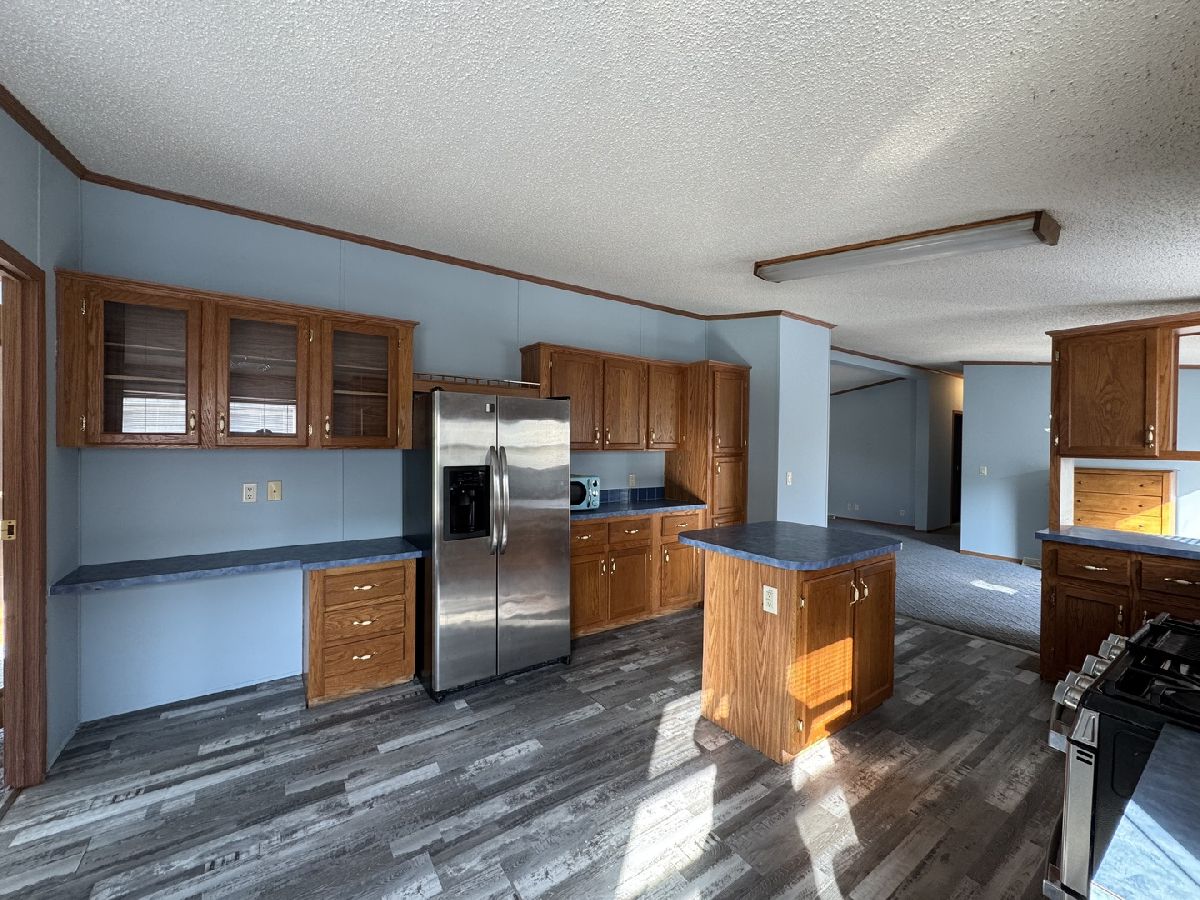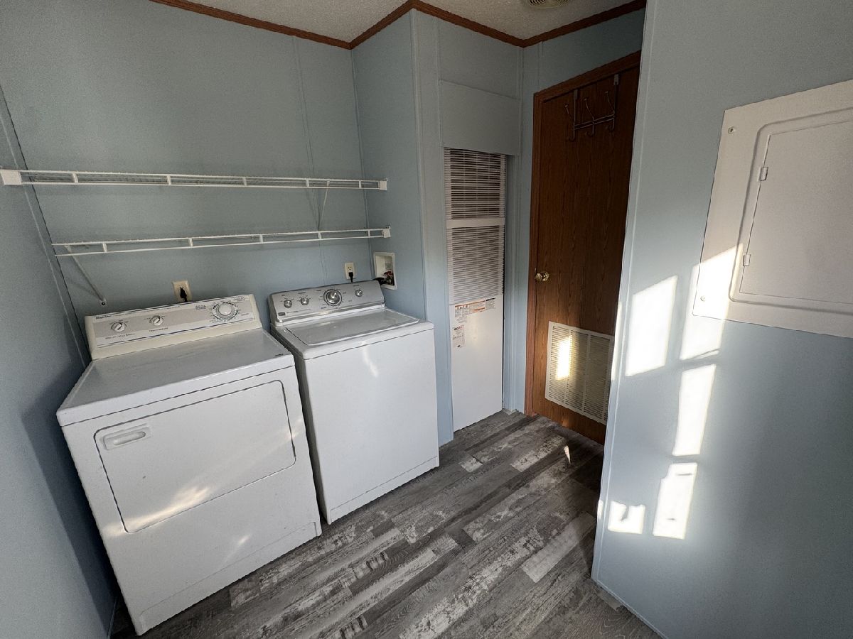 This manufactured home features 3 bedrooms and 2 full bathrooms, situated on a corner lot. It boasts a real wood-burning fireplace, adding a cozy touch to the living space. The roof was replaced in 2015, along with the roofs of both the house and garage, ensuring durability. The property includes an office space and a newly constructed backyard deck, perfect for outdoor relaxation. Additionally, the bedrooms have been updated with new carpeting, and the large master bedroom offers ample closet space for storage.
