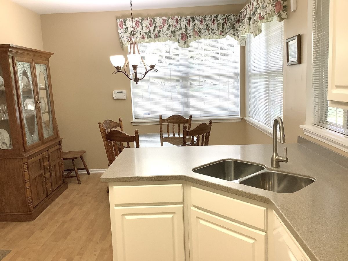 This first-floor end unit is filled with light. A large kitchen with Corian counters, a tile backsplash, laminate floors, and a dining area connects to the attached two-car garage. This home has an open floor plan, plenty of windows (with blinds that stay), and room for a dining room or a piano (currently there). For cozy nights, enjoy the gas fireplace and freshly cleaned berber carpet. A door from the living room leads to a cement patio and a small lawn (cared for by the HOA). An expansive primary bedroom suite has plenty of room for a king bed and furniture. The walk-in-closet is there in case you want MORE space. There are also two more closets in the primary bedroom. In the attached primary bath, you will find a walk-in shower with handles for safety. The entire condo is on one level and the doors are wide. The second bedroom has a generous closet and plenty of light. This unit has a separate laundry room with full-sized washer and dryer. With two large bedrooms, two full baths, and a two-car attached garage, there is nothing to do but move in. This home is also close to shopping, tollways & bike paths. Don't worry about the mechanicals - the AC and the furnace were installed in 2016. Make your appointment today.