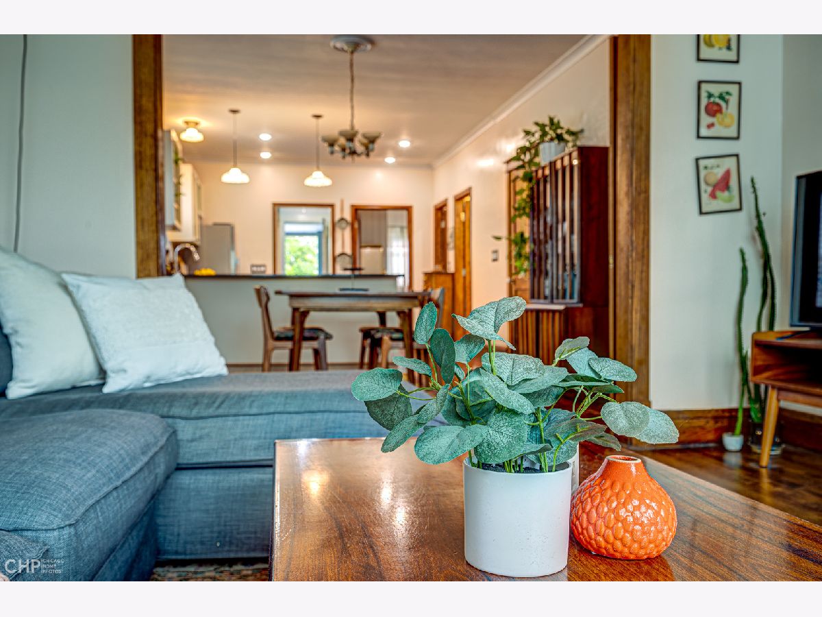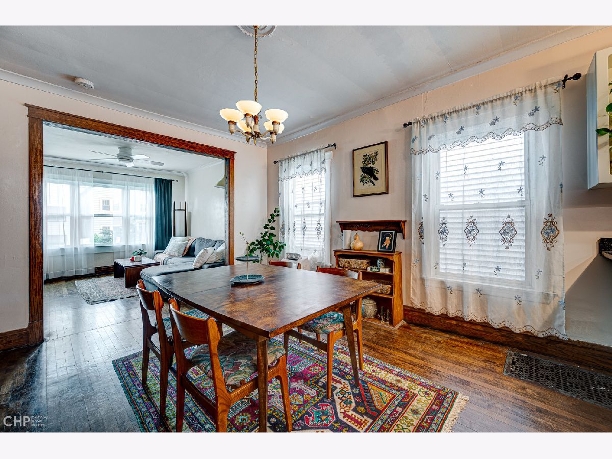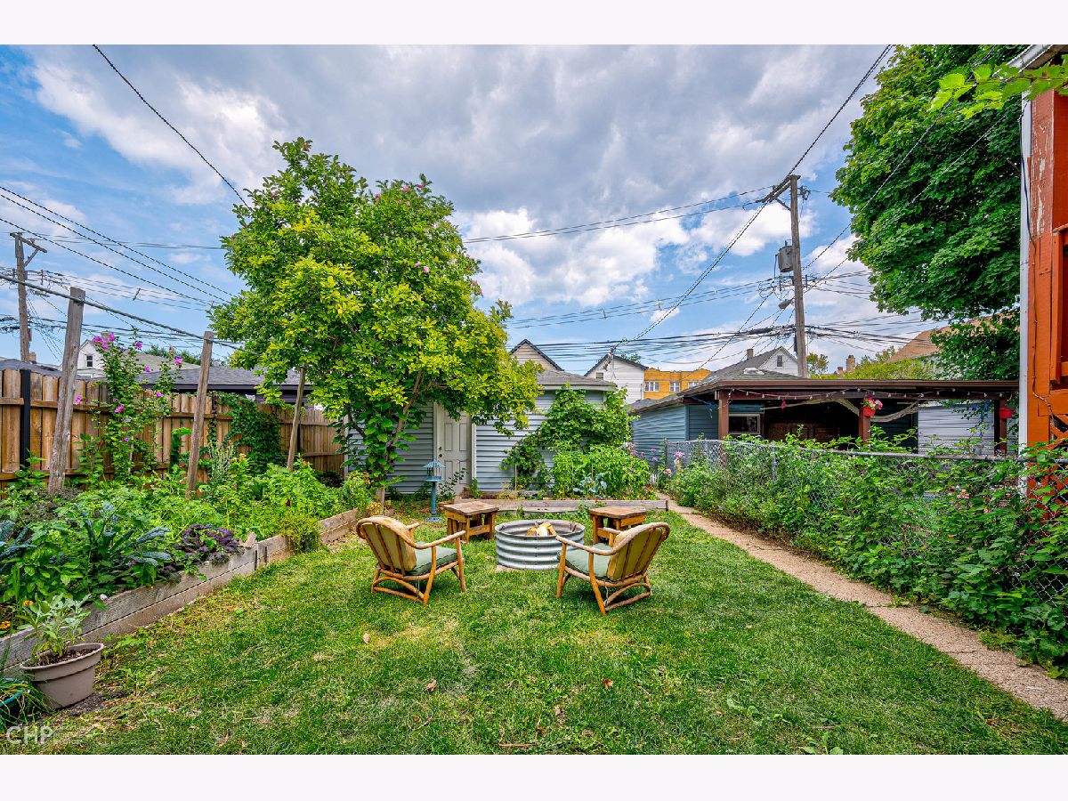 This adorable 4-bedroom 2-bathroom starter home is full of vintage charm and features an in-law suite, making it perfect for first-time homebuyers or those looking for rental income potential. The main living area has been freshly painted and boasts refinished hardwood floors, a brand-new kitchen with stainless steel appliances, granite countertops, and a large eat-in peninsula. The primary bedroom is quaint and cozy, while the bathroom includes a soaking tub, ornamental wallpaper, and beautiful finishes. Downstairs you'll find plenty of storage space, a side-by-side washer and dryer, a utility room, and an area perfect for an in-law arrangement or a rental space - complete with one bedroom, one bathroom, a renovated kitchen, and a spacious living area. Walk outside to a backyard oasis, a gardener's dream! Large planters filled with seasonal vegetables and herbs border a spacious grassy area and firepit, the perfect place to unwind and enjoy the dog days of summer. The home is steps to restaurants, cafes, bars, shops, the Logan Square farmer's market, and so much more! A quick walk to the blue line, buses, and easy access to the expressway. With plenty of charm and character, this house won't last long, so act fast!
