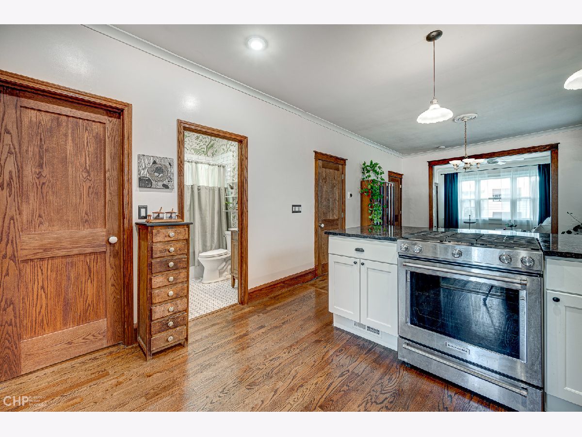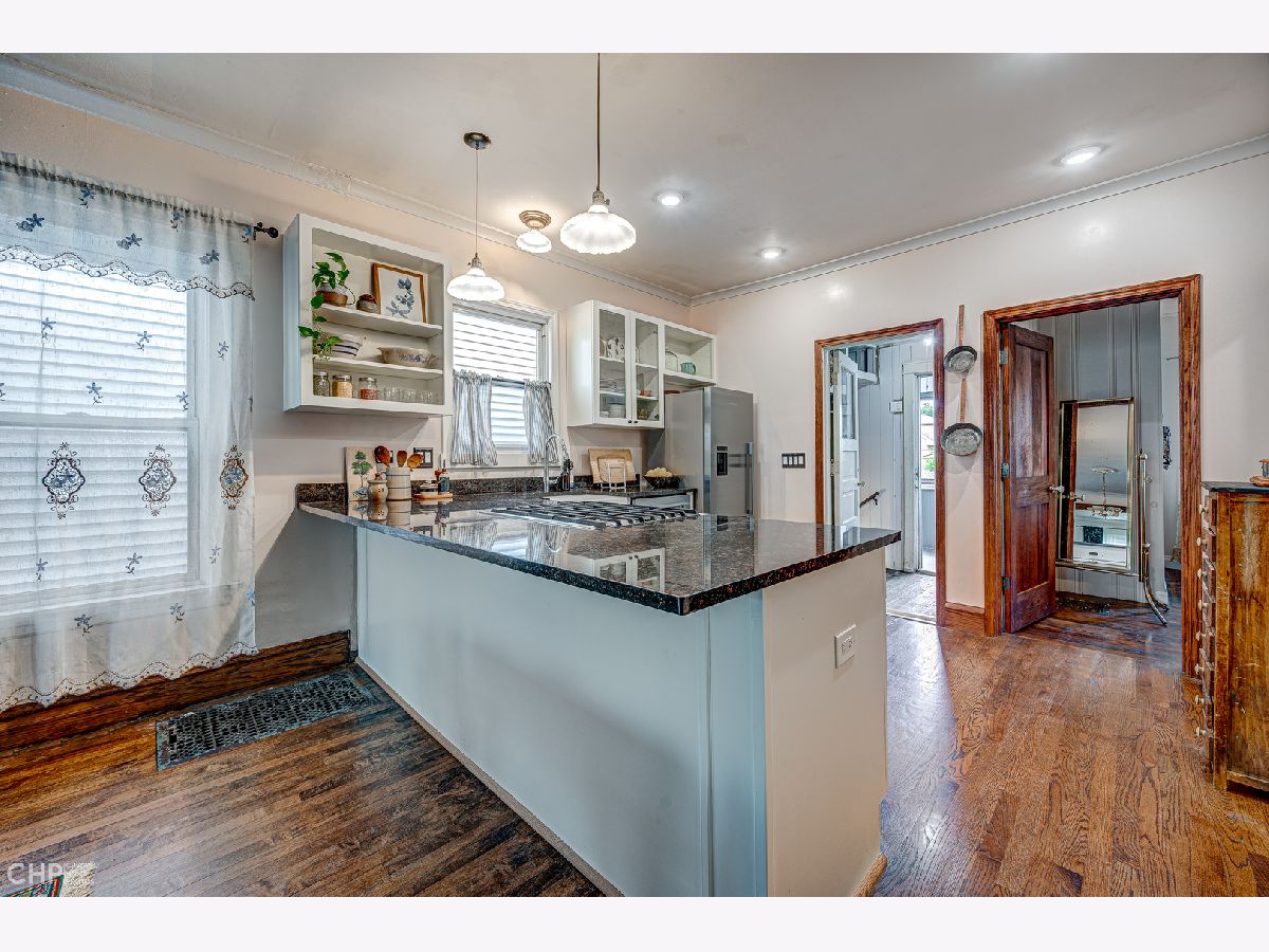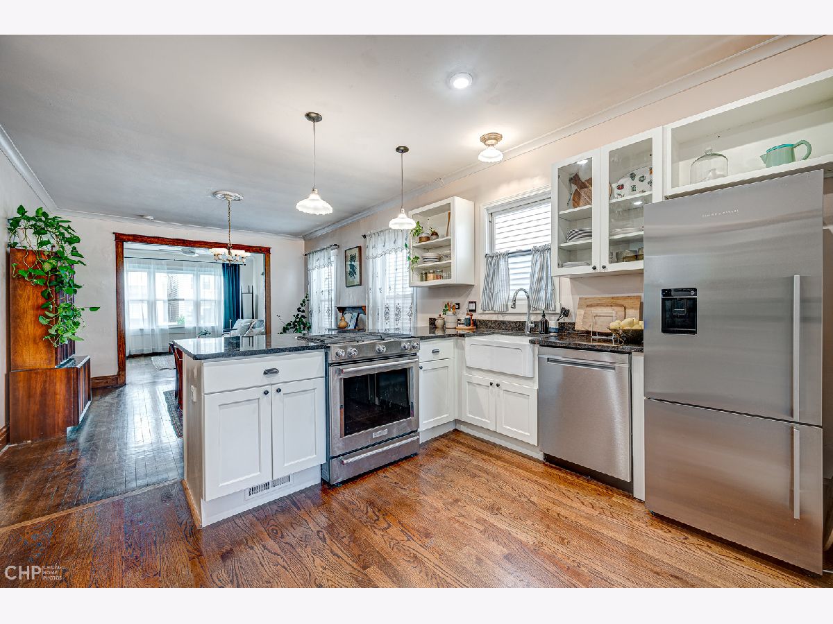This adorable 4-bedroom 2-bathroom starter home is full of vintage charm and features an in-law suite, making it perfect for first-time homebuyers or those looking for rental income potential. The main living area has been freshly painted and boasts refinished hardwood floors, a brand-new kitchen with stainless steel appliances, granite countertops, and a large eat-in peninsula. The primary bedroom is quaint and cozy, while the bathroom includes a soaking tub, ornamental wallpaper, and beautiful finishes. Downstairs you'll find plenty of storage space, a side-by-side washer and dryer, a utility room, and an area perfect for an in-law arrangement or a rental space - complete with one bedroom, one bathroom, a renovated kitchen, and a spacious living area. Walk outside to a backyard oasis, a gardener's dream! Large planters filled with seasonal vegetables and herbs border a spacious grassy area and firepit, the perfect place to unwind and enjoy the dog days of summer. The home is steps to restaurants, cafes, bars, shops, the Logan Square farmer's market, and so much more! A quick walk to the blue line, buses, and easy access to the expressway. With plenty of charm and character, this house won't last long, so act fast!