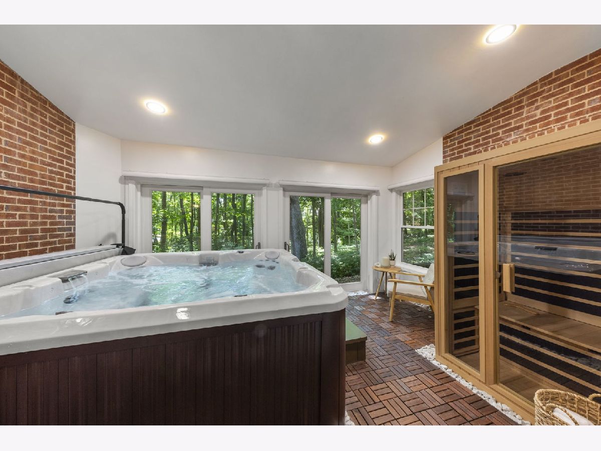 Tucked away on a serene cul-de-sac and set on a lush, nearly 3/4-acre private wooded lot, this stately residence offers the perfect blend of luxury, privacy, and timeless design. From the moment you enter the grand two-story foyer, you're greeted by elegant architectural details, custom trimwork, and a flowing layout designed for both comfortable living and stylish entertaining. The expansive main level features a formal living and dining room, a private office with coffered ceilings and a cozy fireplace, and a spacious family room bathed in natural light. The chef's kitchen connects seamlessly to the wraparound deck-ideal for summer gatherings with views of the beautifully wooded backyard. The sought-after first-floor primary suite offers a quiet escape with ample space and comfort. Upstairs, you'll find generously sized bedrooms, including a versatile bonus room perfect for a home gym, studio, or additional office. A tastefully remodeled Jack-and-Jill bath adds convenience and charm. The finished walk-out lower level is an entertainer's dream-complete with a full bar, full bathroom, fifth and sixth bedroom or office, workout space, and plenty of space for recreation or guest accommodations. Don't forget your spa oasis with new hot tub and sauna allowing you to unwind 365 days/year! Located in one of St. Charles' most desirable neighborhoods, with top-rated schools and convenient access to shopping, dining, and scenic trails, this home truly has it all. New Davinci Composite Slate Roof - 2023. Two EV stations at 220 Amp in the garage. Both water heaters 2024. New garage door openers 2022. Kitchen painted 2022. Sellers offering a $1,400 Achosa Home Warranty (Pro Plan) at closing for peace of mind.