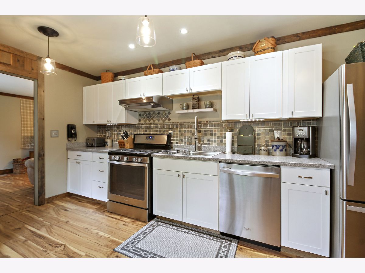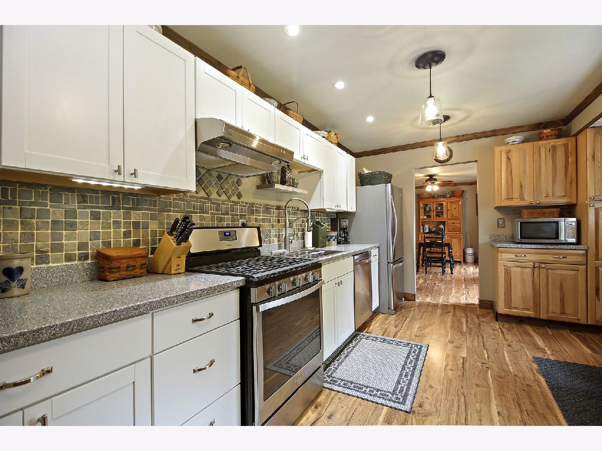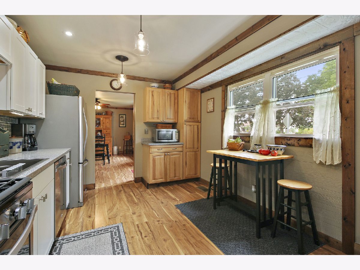UPDATED & ADORABLE 2 bedroom, 1 bath ranch in desirable Aroma Township! This perfect starter or downsizer has a flexible layout, and the very latest in Modern Farmhouse design elements - w/high grade laminate flooring, timber trim & classic fixtures throughout. There is a bright & spacious LR; huge family room, and FABULOUS kitchen - w/loads of custom cabinetry, SS appliances, and pressed tin ceiling accent. Both BRs are quite large, and the master has a huge WIC & custom ceiling. The outdoor space is a treat: BEAUTIFULLY landscaped front & back - with lush green grass, raised beds, and trellises for vines & roses. The fenced backyard also has an enormous deck w/canopied metal pergola; 16x10 shed w/paver patio, and plenty of room for recreation & relaxation. A WONDERFUL place to call home - come and see! (c)2020 fpg