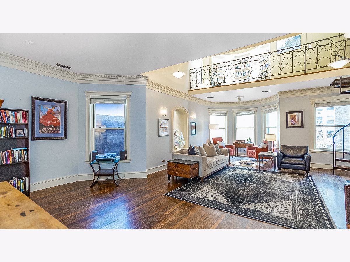 This one-of-a-kind penthouse condo in an intimate classic Greystone building is a must see! Nestled in the heart of Lakeview, this extra wide 3 bed, 2.5 bath unit boasts classic details such as handcrafted original molding and trim work and hardwood floors throughout. The sun-drenched living room is a showstopper and features soaring 15ft ceilings, a wood burning fireplace, large bay windows, and a spiral staircase leading to a lofted library. A separate dining room with stained glass windows and coffered ceilings is perfect for entertaining guests while the updated kitchen offers high end appliances and granite countertops. The second living space off the kitchen is perfect for a family room, home office, or a 4th bedroom. Oversized west facing deck off the back is perfect for watching sunsets. Spacious primary bedroom with custom closet organizers and en-suite bath comes complete with a soaker tub, stand up shower, and double vanity. Recently renovated guest bathroom and 2 additional bedrooms round out this unique condo that is so spacious it lives like a single-family home! Other highlights include in-unit W/D, central heat and air, an oversized storage room in the basement and exclusive roof rights. Located just steps from multiple public transportation options, shopping, dining, and entertainment on bustling Broadway St, Lake Michigan, the bike path, Belmont Harbor, Diversey Driving Range, and numerous parks, this condo offers the best of city living in an unbeatable location.