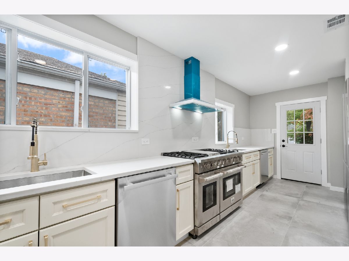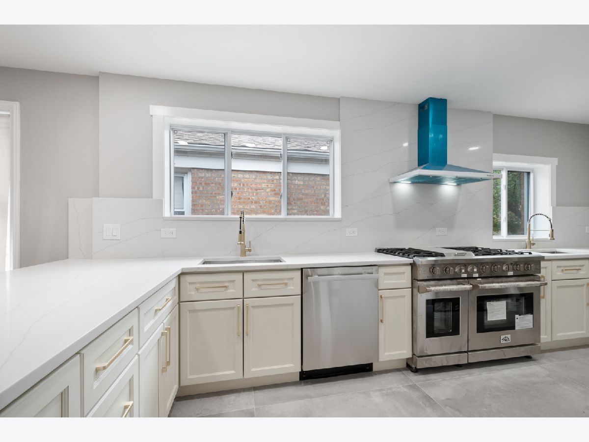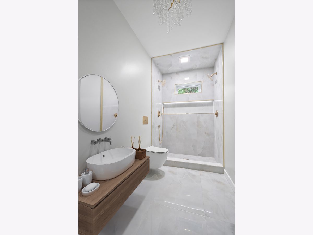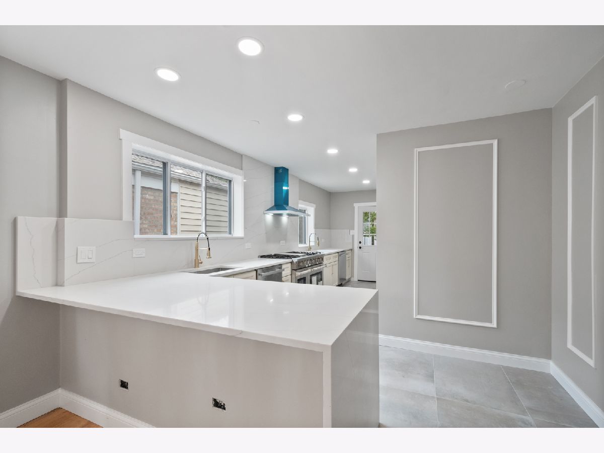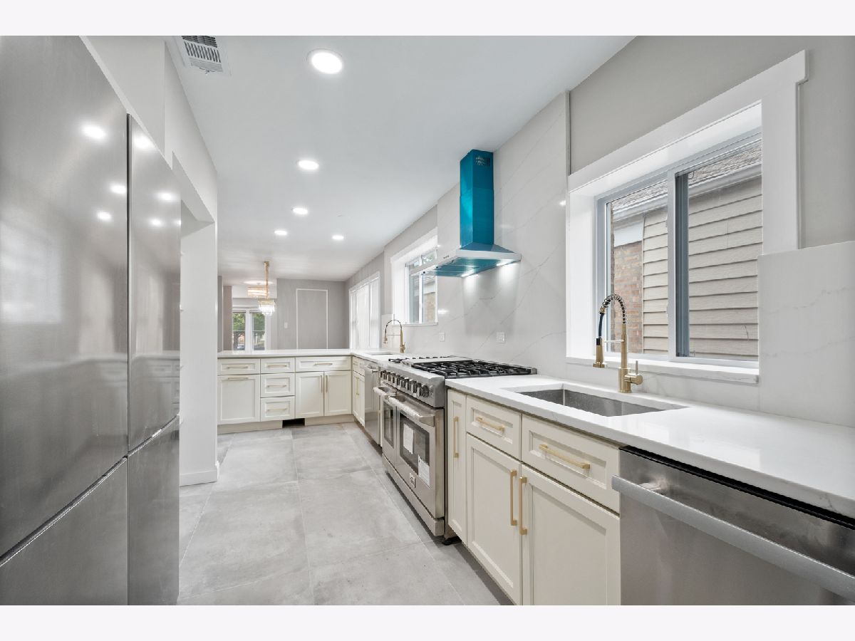Nestled in the heart of West Rogers Park, 3021 West Birchwood Ave is a beautifully remodeled home boasting five spacious bedrooms and three full bathrooms-two on the main level and one in the fully finished basement. As you step inside, you're greeted by a stylish mudroom featuring elegant wood tile flooring, built-in hooks, and organized compartments-perfect for managing gear through all of Chicago's seasons. To your right, the expansive living room offers a warm and inviting atmosphere, highlighted by an electric fireplace, custom shelving, soft-close cabinets, and large windows that fill the space with natural light. On your left, a modern living area with an almost floor-to-ceiling window provides a bright, airy space ideal for entertaining. The open-concept kitchen is a chef's dream! All brand new and never used appliances, equipped with a 48-inch double range with six burners, a spacious double refrigerator/freezer, and an oversized pantry with elegant doors-seamlessly blending beauty and functionality. The kitchen also features two large sinks, two dishwashers, abundant under-cabinet storage, and a large peninsula. The calming color palette adds warmth, ensuring the kitchen feels peaceful, no matter the level of activity. The master suite includes a spacious walk-in closet and an en-suite bathroom with a floating vanity and toilet, a double shower-head system with a handheld option, and thoughtfully designed lighting and shelving, creating a truly luxurious experience. Two additional bedrooms on the main floor feature deep closets, plush carpeting, and elegant ceiling fan fixtures. The main bathroom also showcases a sleek design with a shower and handheld option. Downstairs, the fully finished basement offers additional living space, including a laundry room, three more bedrooms with deep closets, and plush carpeting throughout. The expansive open area is perfect for a recreation or playroom. With brand new windows, the basement feels airy and spacious.