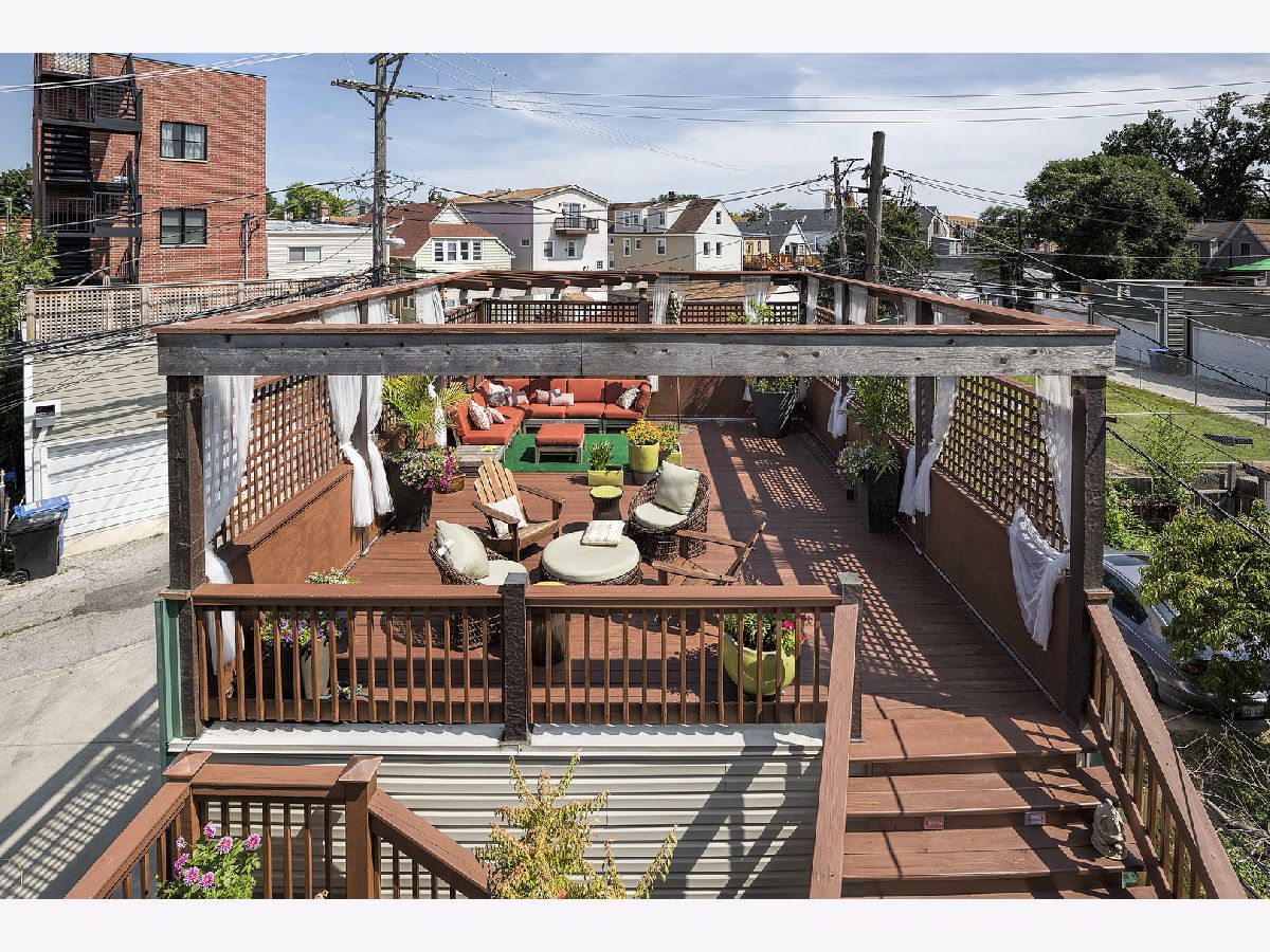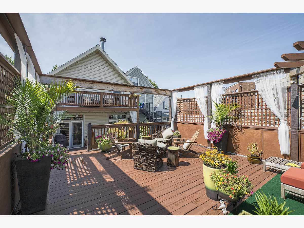 This Sun drenched single family home is a 4 BRM 4BTH with spacious outdoor area in West Lakeview. Floors refinished w/ Jacobean stain and freshly painted in Dec. 2020. LR features fireplace w/granite surround, bar w/frig., surround sound and double doors leading to an expansive , multilevel outdoor entertainment area.Kitchen with white wood cabinets, SS appliances and eating area. Primary bedroom suite has vaulted ceilings , fireplace, two walk-in closets, jacuzzi tub, separate shower, double vanity and double doors to balcony. Recently renovated bathrooms, all with Kohler or Grohe fixtures and large multi-head showers. Skylights and transoms throughout allow natural light to stream in. Airy finished lower level with today's Must have home office & built-in desk. Lower level also features a private bedroom with full bath w/ natural oak slab counter and copper-inlaid barn door. Lower level has large Rec. room w/tool room, loads of storage and cedar closet. Insulated garage has a 7'x20' heated workshop with dehumidifier. New roof 2015. New 75 gal. hot water tank 2017. All systems impeccably maintained. Perfectly located b/w Roscoe Village, Logan Square & Bucktown. Quick highway access. Two blocks from Hamlin Park and new public canoe launch at river's bend. Jahn school area. Beautiful front English garden landscape. This home is a one of a kind oasis