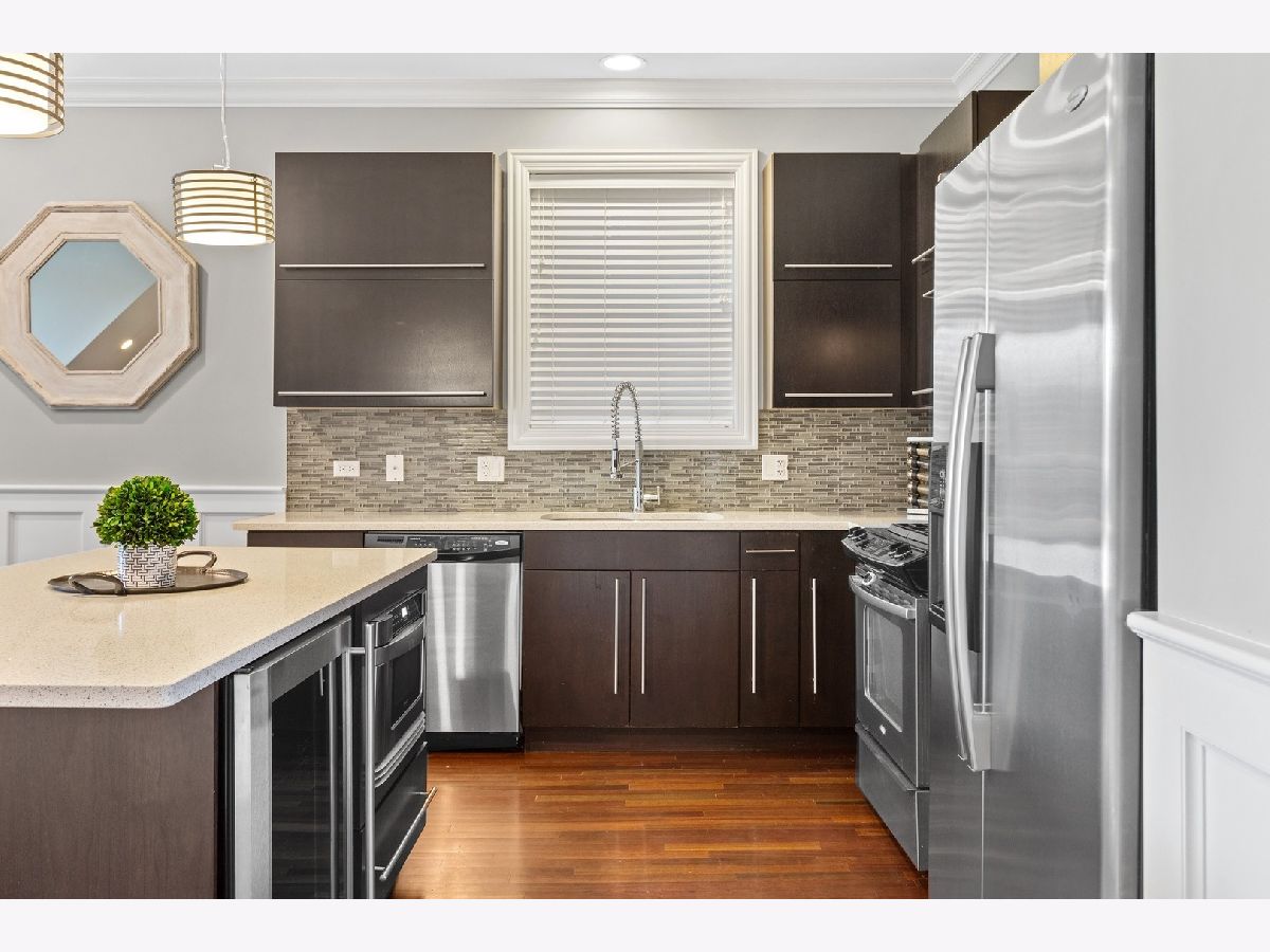 This nicely updated duplex down is situated on a beautiful tree lined street and overlooks Hamlin Park! The massive windows allow sunlight to pour in and offer a perfect view of the park from your living room, kitchen and lower level. You will be impressed by the size, layout and finish of this home. The chef's kitchen features quartz counter tops, stainless steel appliances, wine fridge, backslash, breakfast bar, wine fridge, pantry and ample cabinet space. The huge master suite boasts a custom built walk in closet and spa-like bathroom with dual vanity and separate tub and shower with body sprays. The lower level has tons of windows which light up the spacious second living space and bedrooms. Hardwood floors throughout, custom wainscoting & mill-work, fireplace, surround sound and side by side washer and dryer nicely finish off this meticulously kept home. Enjoy the front patio overlooking the park, private back deck and back yard perfect for entertaining or for a dog to play. Walk to public transportation, restaurants, dog park across the street, boutiques and all that beautiful Roscoe Village has to offer. 1 garage space included and an option to rent a second space in the same garage!