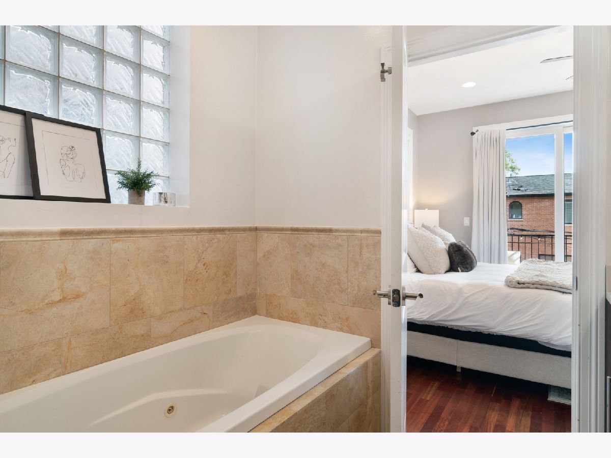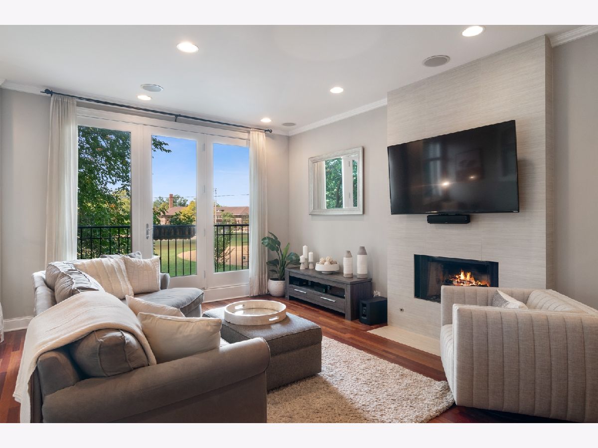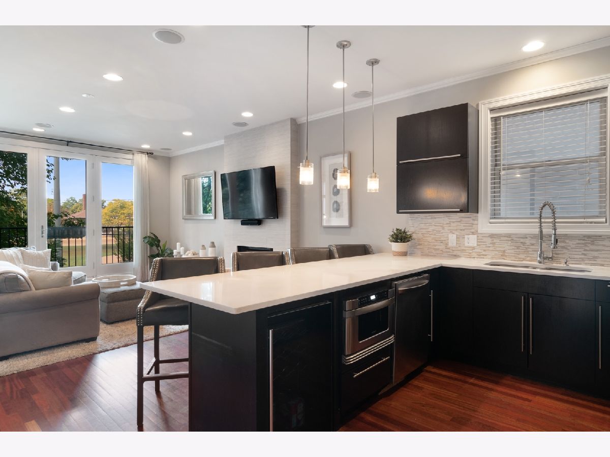 STUNNING updated second-floor condo in the heart of Roscoe Village. This modern 2 bed/2 bath condo is located on a tree-lined street overlooking Hamlin Park. This pristine sun-filled condo is perfect for entertaining and features a bright & sunny open floor plan, hardwood floors throughout, high ceilings, and custom crown moulding. The kitchen boasts beautiful dark cabinets with white countertops and a large breakfast bar for four. Cozy up in the living room with your gas burning fireplace during the cooler months or open your door to the Juliet balcony for a welcoming breeze. Retreat to your large primary bedroom with ensuite bath, double vanity, and whirlpool jetted tub with separate stand-up shower. This condo has a spacious second bedroom and luxurious second bath with a marble stand up shower. Additional features include in-unit washer/dryer, large private deck off the back, and indoor garage parking spot. Pet friendly building. Live near everything Roscoe Village and Lakeview has to offer. High walk score! Close to the River Walk, Southport Corridor, shops, grocery stores, restaurants, bars, public transportation, and more!