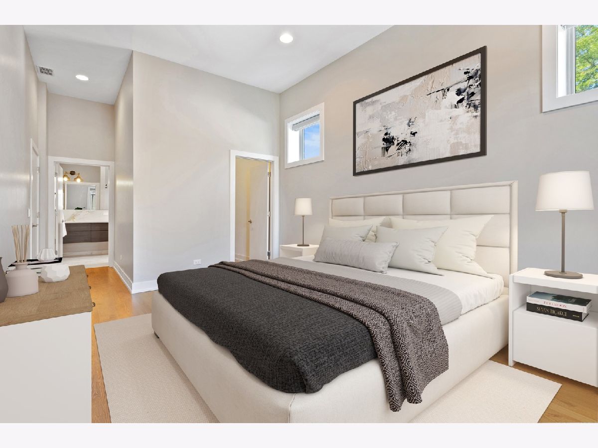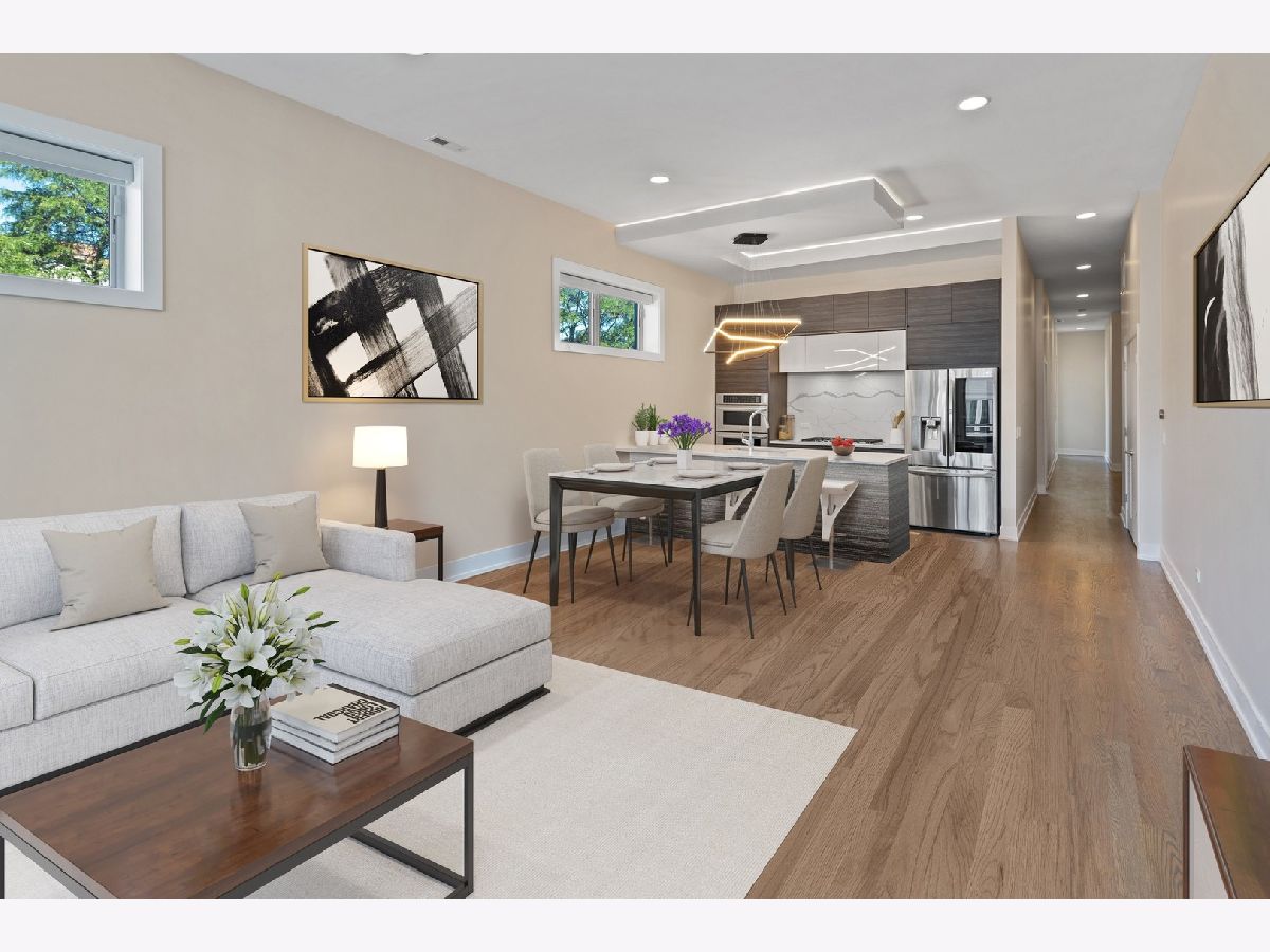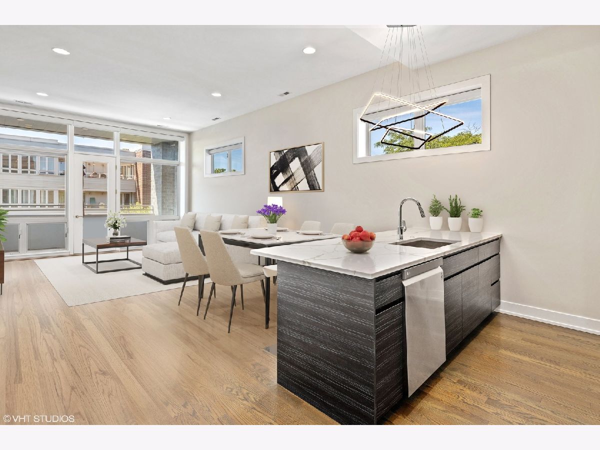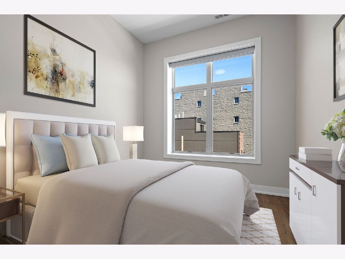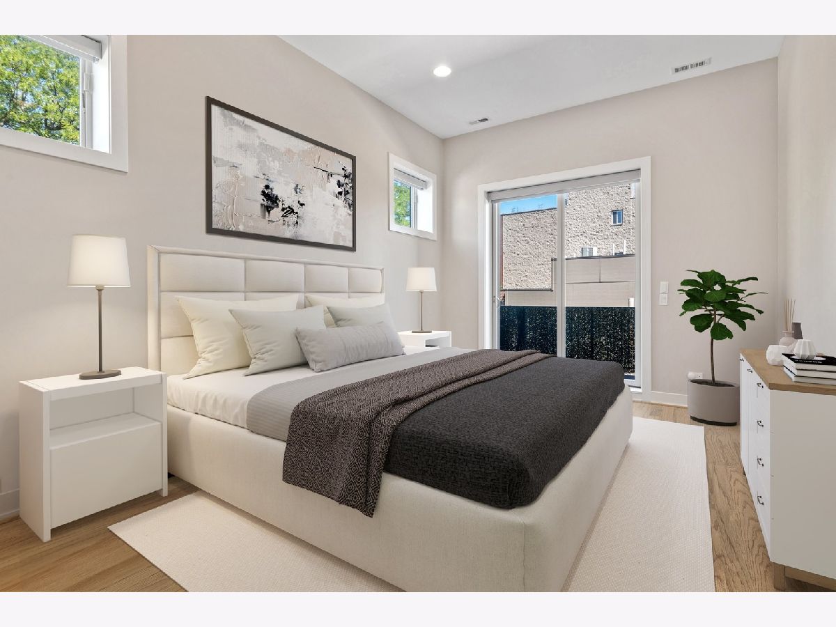 Immaculate newer construction 3 bedroom 2.5 bathroom Logan Square condo. This luxurious 9 unit building has been well maintained since it was built in 2019. Expertly designed layout with hardwood floors throughout and high ceiling. Open concept that is perfect for entertaining and hosting with living room, dining area, and large island with more additional seating. Living room has floor to ceiling windows and access to one of the two balconies that the condo has. Massive primary bedroom with a large walk-in closet with a perfect setup for your wardrobe. Walk into the spa like primary bathroom with two sinks and extra-large shower. Walk out of the primary bedroom onto the second balcony and enjoy your morning coffee. Great size second and third bedroom with large closets with are equipped with organizers. Laundry room includes sink and shelving for more storage. Every window in the condo has powered Hunter Douglas shades. Building has a large roof deck with incredible views of the Chicago skyline. Condo comes with one indoor heated parking spot. Convenient location to shops, parks, and highway.