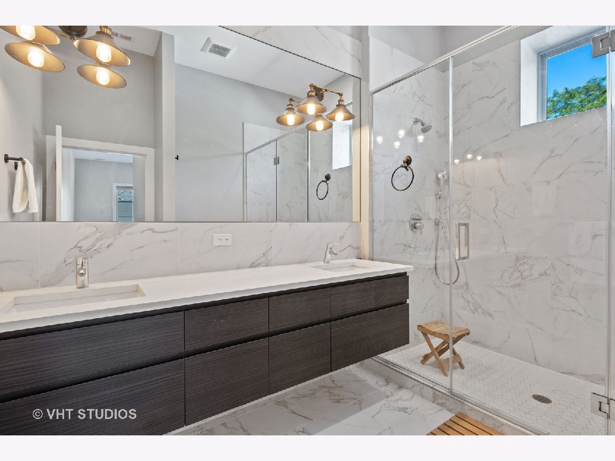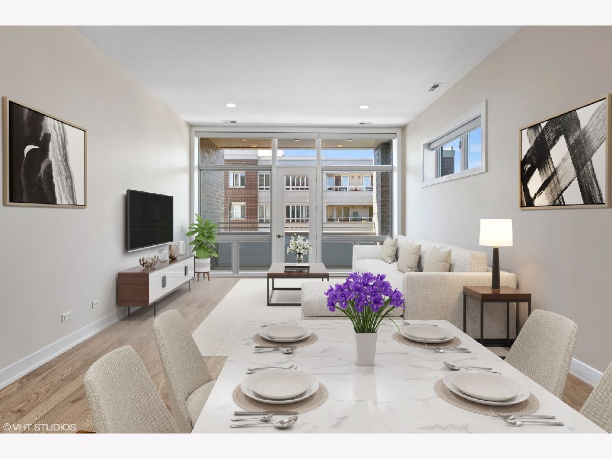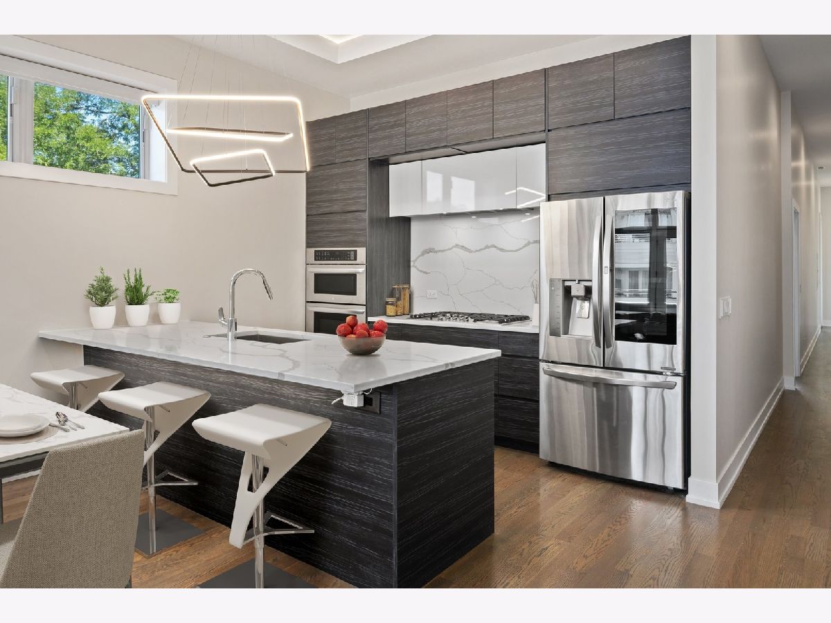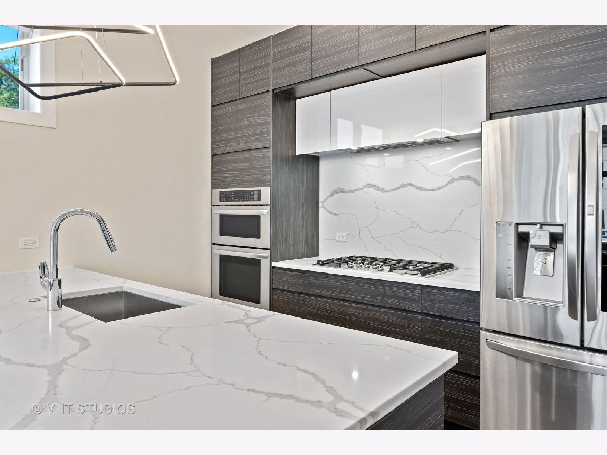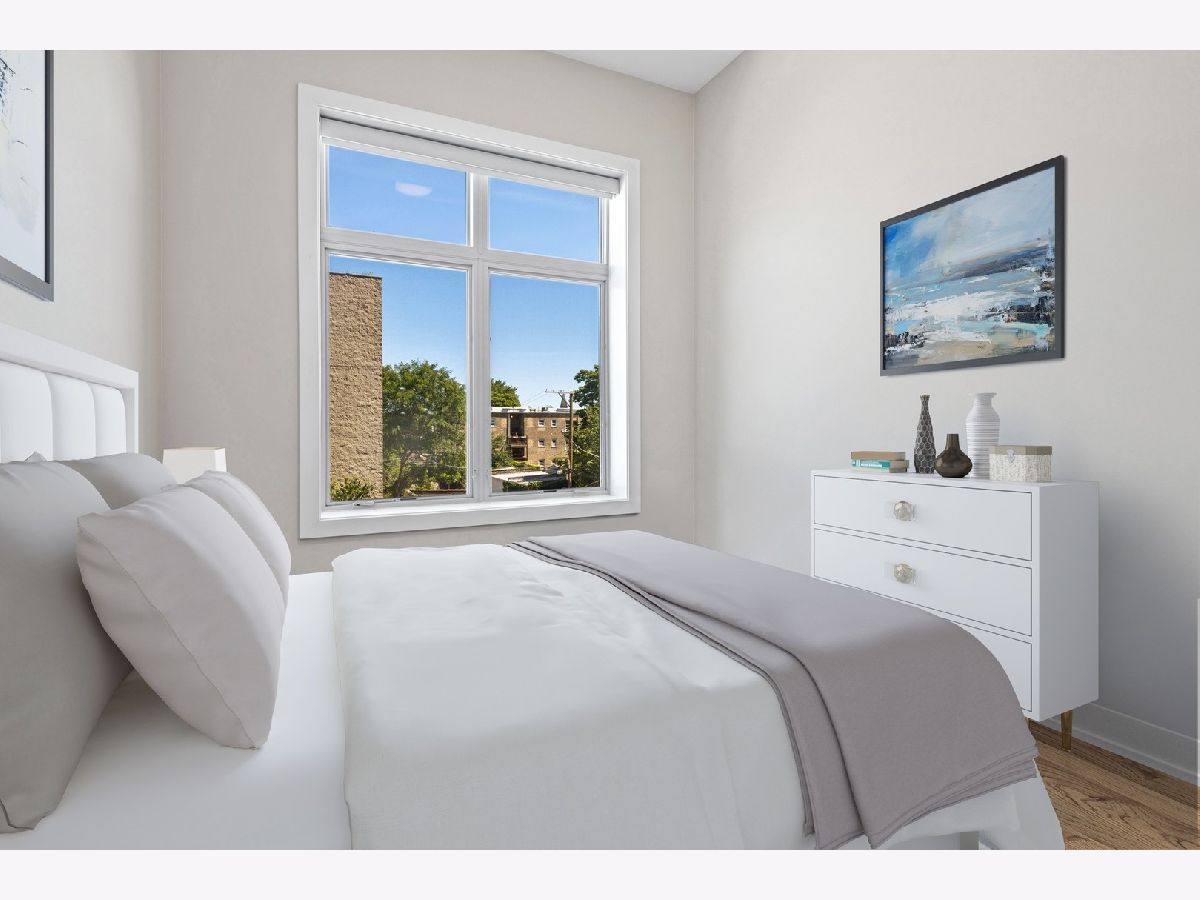 Immaculate newer construction 3 bedroom 2.5 bathroom Logan Square condo. This luxurious 9 unit building has been well maintained since it was built in 2019. Expertly designed layout with hardwood floors throughout and high ceiling. Open concept that is perfect for entertaining and hosting with living room, dining area, and large island with more additional seating. Living room has floor to ceiling windows and access to one of the two balconies that the condo has. Massive primary bedroom with a large walk-in closet with a perfect setup for your wardrobe. Walk into the spa like primary bathroom with two sinks and extra-large shower. Walk out of the primary bedroom onto the second balcony and enjoy your morning coffee. Great size second and third bedroom with large closets with are equipped with organizers. Laundry room includes sink and shelving for more storage. Every window in the condo has powered Hunter Douglas shades. Building has a large roof deck with incredible views of the Chicago skyline. Condo comes with one indoor heated parking spot. Convenient location to shops, parks, and highway.