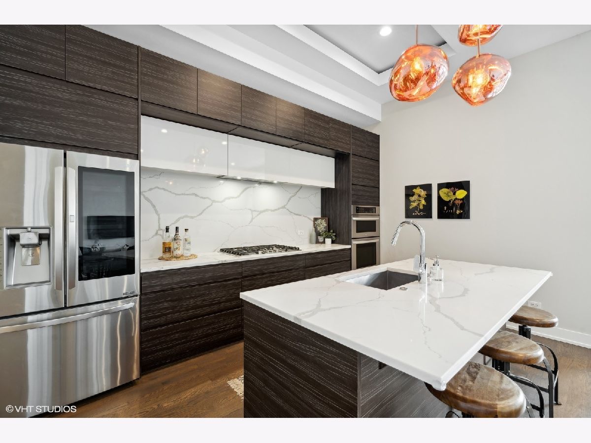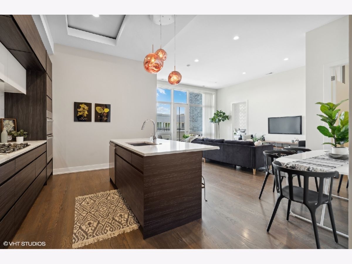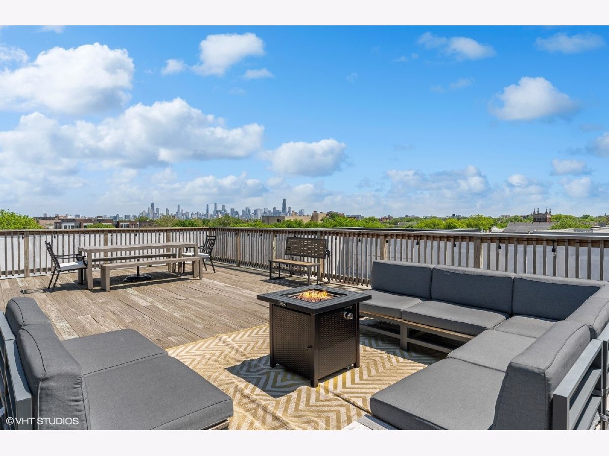 Excellent quality newer construction 3BD/2BA top floor condo with two heated garage parking spots included in the price! This home offers a timeless aesthetic and finishes in mint condition, excellent craftsmanship rarely seen in new construction, soaring 11' ceilings, tons of outdoor space including a massive communal roof deck with skyline views and a large terrace private to this unit - all in a prime location in Logan Square with easy access to the hotspots of the neighborhood and across the city. The sprawling kitchen features LG appliances, tons of cabinetry and excellent counter space including an eat-in island & the bright and airy great room flowing from the kitchen can easily accommodate several living + dining layouts and is lined with windows. In the large primary suite, there is a well designed walk-in closet and ensuite luxury bathroom with heated floors, a double vanity, huge walk-in shower and beautiful finishes. Both the second and third bedrooms are very spacious and have great closets. The second bathroom features beautiful tile work and finishes and has a modern soaking tub. This home is an extremely well crafted space and excellent for the modern buyer drawn to timeless finishes, a well oriented layout and tons of outdoor space! Located steps from Parsons, Middle Brow, Gretel, Osteria Langhe, Bang Bang, Scofflaw, the California Blue Line stop, The 606 and Palmer Square Park.