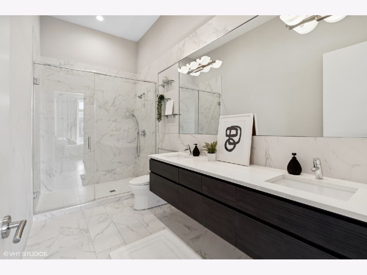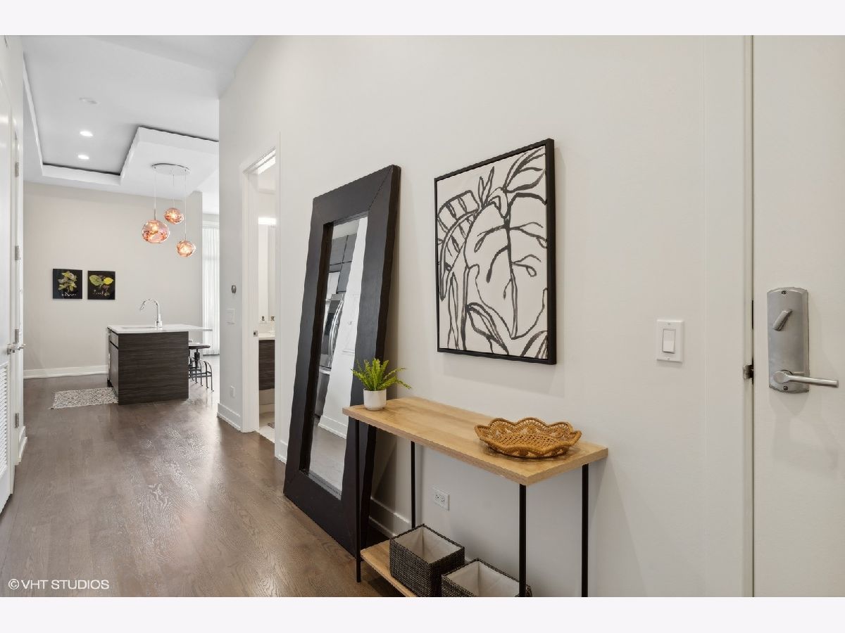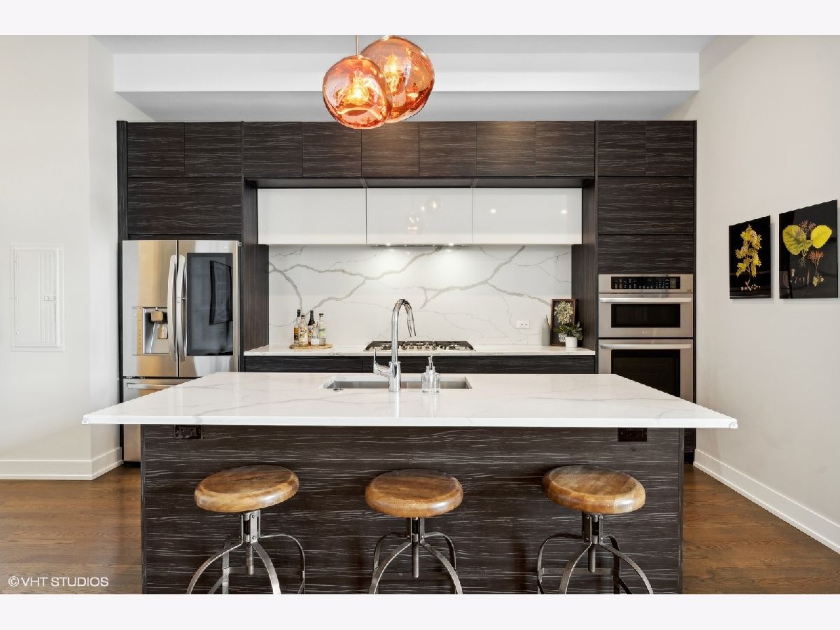 Excellent quality newer construction 3BD/2BA top floor condo with two heated garage parking spots included in the price! This home offers a timeless aesthetic and finishes in mint condition, excellent craftsmanship rarely seen in new construction, soaring 11' ceilings, tons of outdoor space including a massive communal roof deck with skyline views and a large terrace private to this unit - all in a prime location in Logan Square with easy access to the hotspots of the neighborhood and across the city. The sprawling kitchen features LG appliances, tons of cabinetry and excellent counter space including an eat-in island & the bright and airy great room flowing from the kitchen can easily accommodate several living + dining layouts and is lined with windows. In the large primary suite, there is a well designed walk-in closet and ensuite luxury bathroom with heated floors, a double vanity, huge walk-in shower and beautiful finishes. Both the second and third bedrooms are very spacious and have great closets. The second bathroom features beautiful tile work and finishes and has a modern soaking tub. This home is an extremely well crafted space and excellent for the modern buyer drawn to timeless finishes, a well oriented layout and tons of outdoor space! Located steps from Parsons, Middle Brow, Gretel, Osteria Langhe, Bang Bang, Scofflaw, the California Blue Line stop, The 606 and Palmer Square Park.