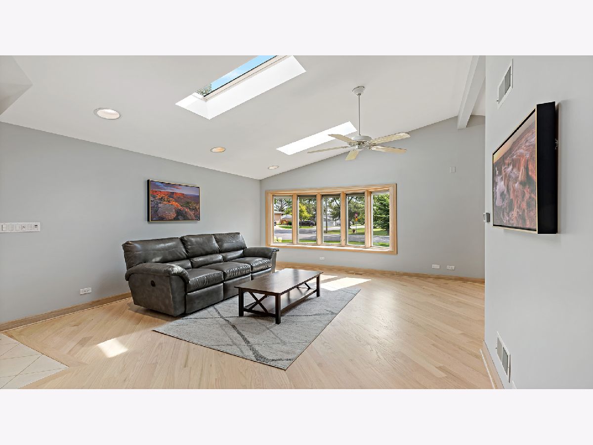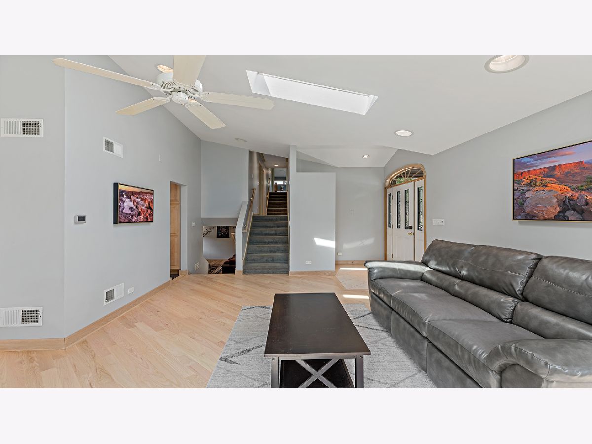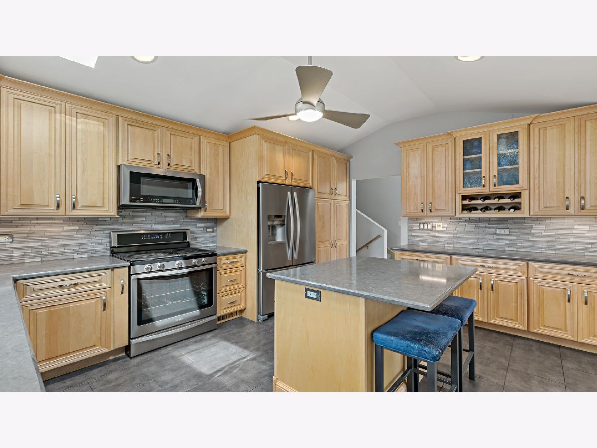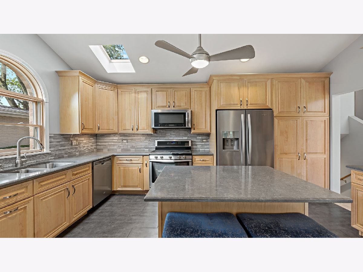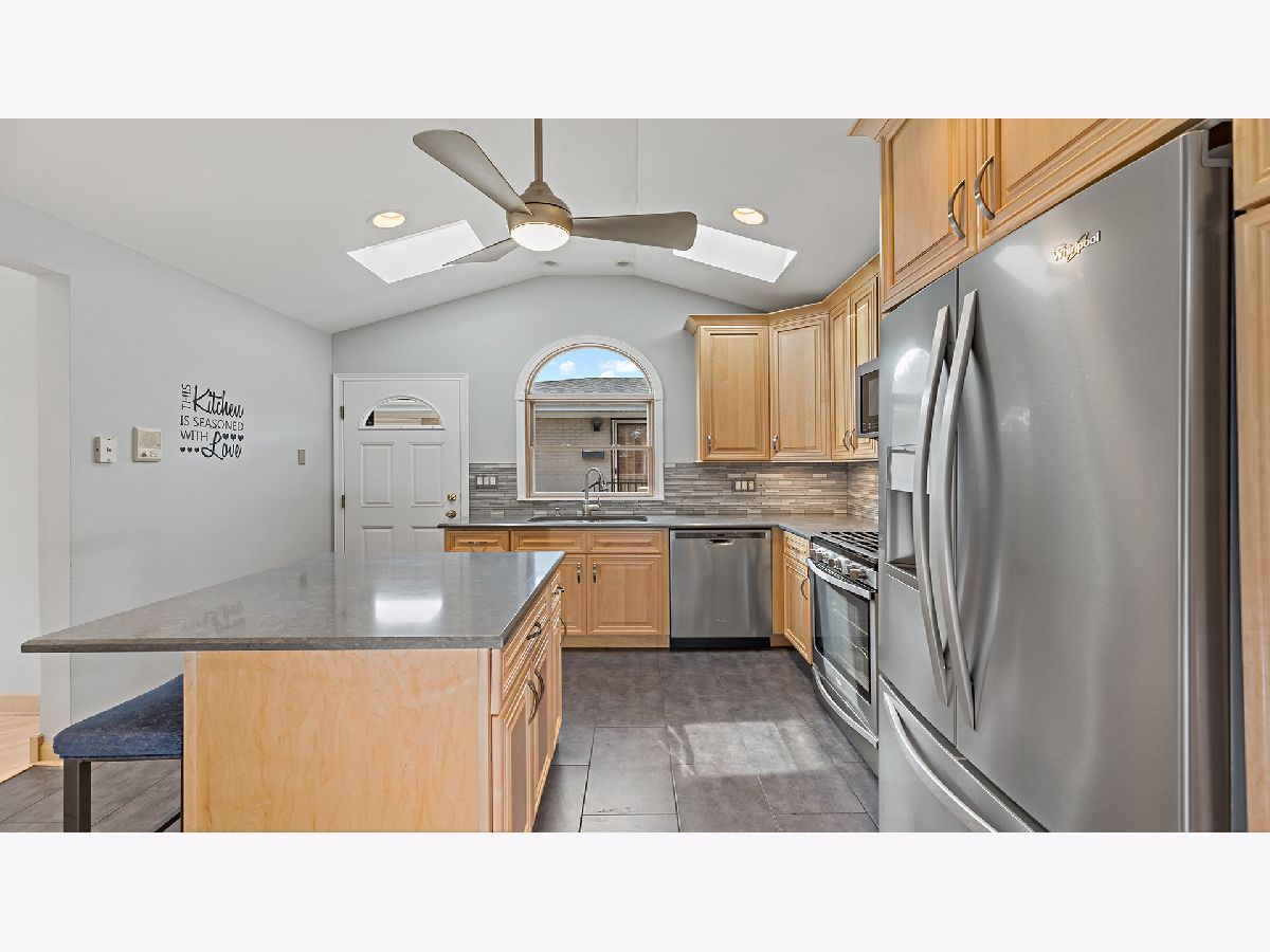 This AMAZING 4 level home boasts over 2,500 finished sq. ft. 4 bedrooms 3 baths. Newly renovated kitchen is a dream; with new flooring, island, and quartz counter tops and wine rack. Upon entering you will be wowed by the soaring ceilings on this level. Natural light floods this area, with skylights in the living room and kitchen, recessed lighting. Gorgeous refinished hardwood floors. Living room flows into the formal dining room which is open to the kitchen. A few steps down the family room awaits. 3/4 bath on this level with storage and access to the garage with oversized doors. Garage is plumbed for hot water heat. Upstairs 2 bedrooms and a full bath, with laundry on this level. Ascend 1 more level to an office nook, bedroom, and the grand master suite with fireplace and sumptuous master bath. Beautiful arched windows accent this room and other bedrooms. Impeccable new landscaping, features paver brick patio. Fenced backyard. SPOTLESS move in ready. 2 HVAC systems. Back up sump pump. Leaf guard gutter system.