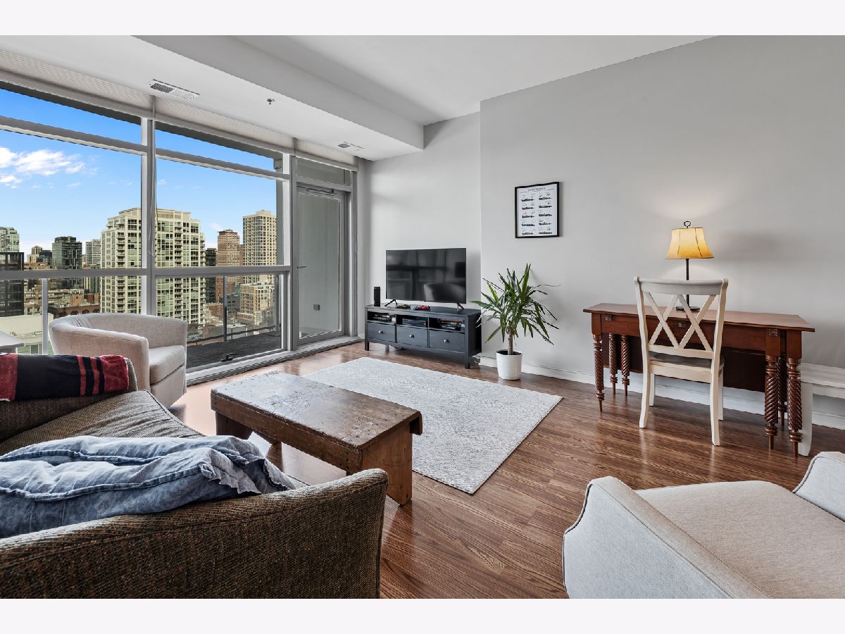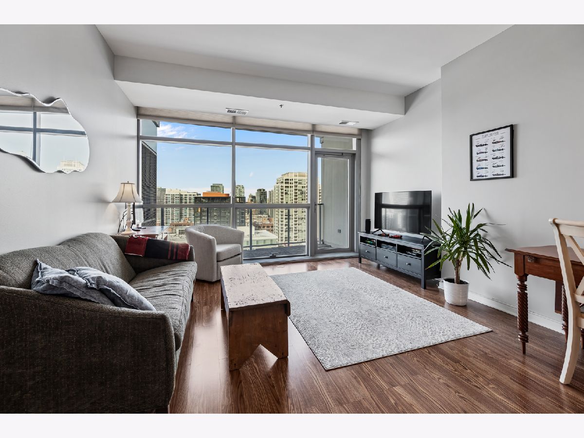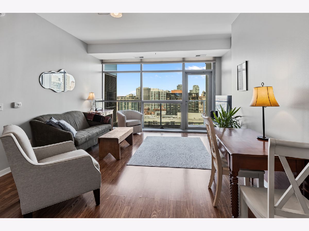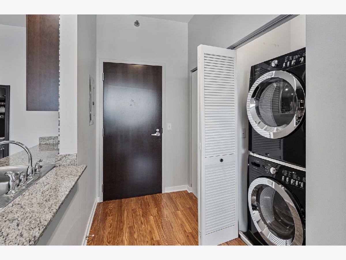 BEST PRICE on a one bedroom at the highly sought after Silver Tower of River North. Luxury vinyl floors and floor to ceiling windows that bring in city views and peeks of Lake Michigan. A private spans the entire living room. Open kitchen with granite and stainless steel appliances. Bedroom with huge walk in closet. Coat closet in the entry. Front load washer and dryer included. Spacious bathroom with tub/shower combination and wide single sink vanity. Enjoy walking to everything in the city. Especially convenient to East Bank Club, Chicago River walk, Zarella Pizza, Avli, Oud Coffee, Target, Merchandise Mart, Fox Trot. The building features an incredible management team including 24 hour door staff, on site engineer, and on site manager. State of the art fitness center, common roof deck, 12th floor terrace and dog run, storage for every owner on 11, guest parking, and electric vehicle charging station. Recent building improvements includes new garage doors and butterfly mx keyless entry. For an additional $35k, attached garage parking for one car. All furnishings can be included in the price.
