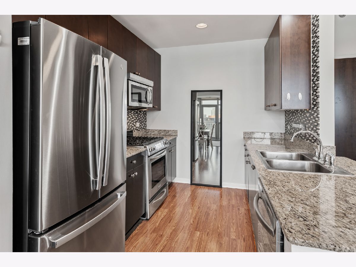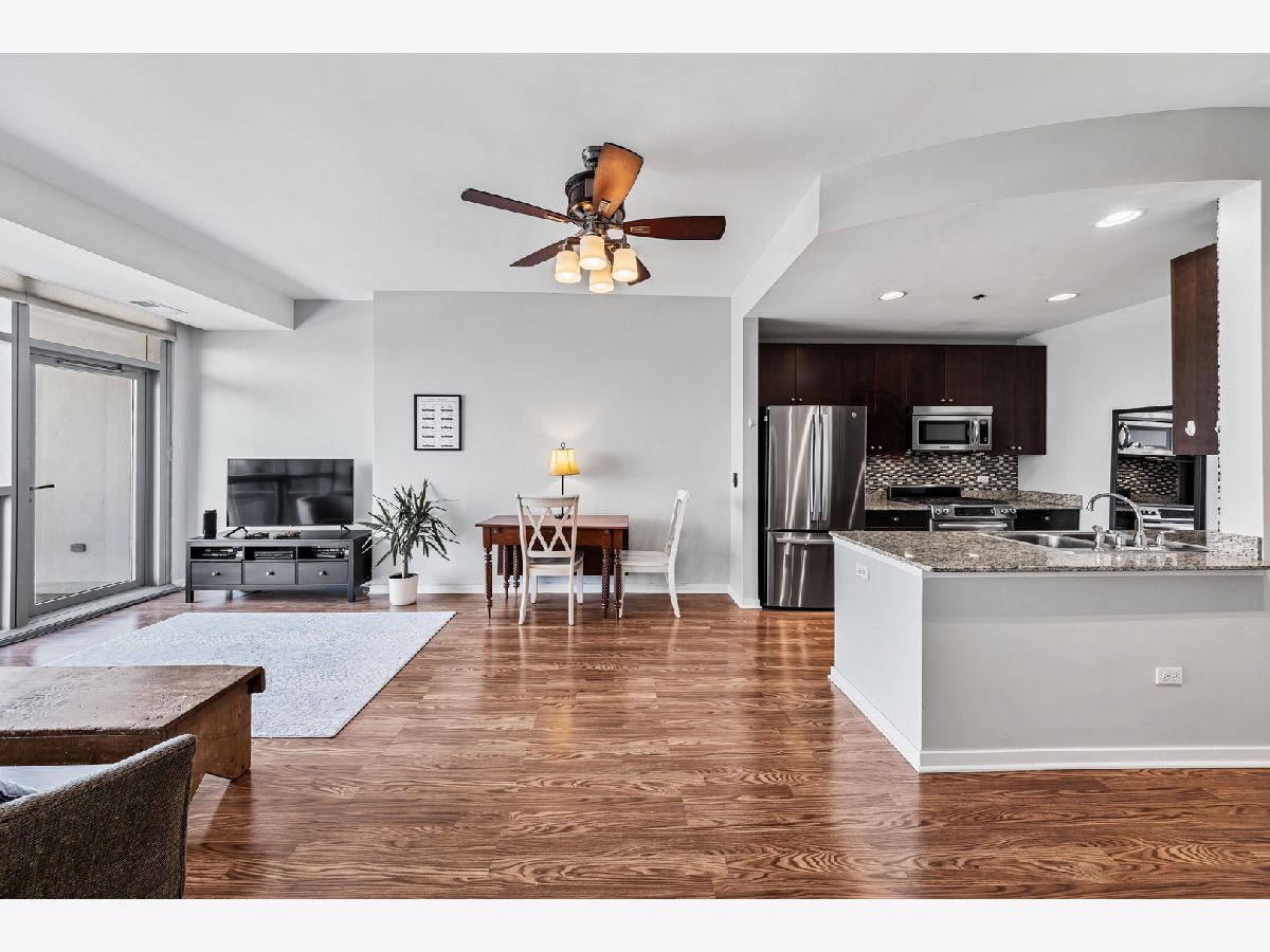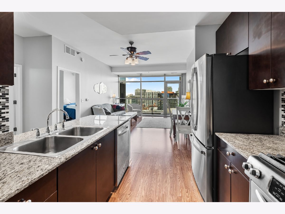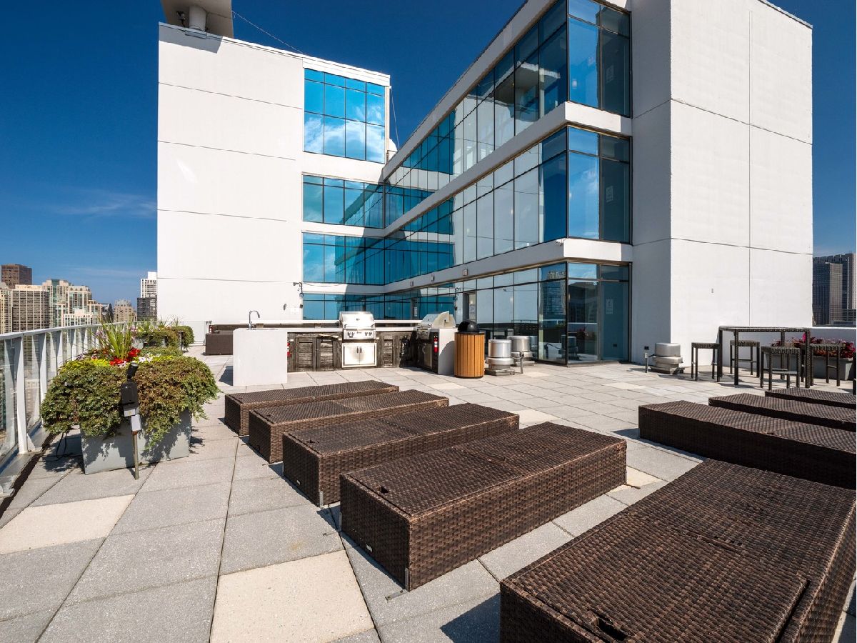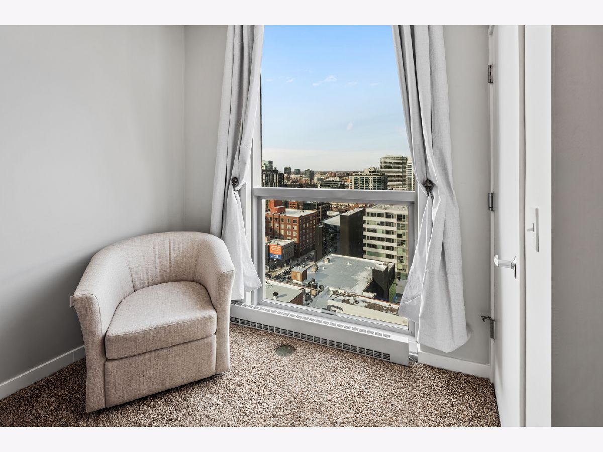 BEST PRICE on a one bedroom at the highly sought after Silver Tower of River North. Luxury vinyl floors and floor to ceiling windows that bring in city views and peeks of Lake Michigan. A private spans the entire living room. Open kitchen with granite and stainless steel appliances. Bedroom with huge walk in closet. Coat closet in the entry. Front load washer and dryer included. Spacious bathroom with tub/shower combination and wide single sink vanity. Enjoy walking to everything in the city. Especially convenient to East Bank Club, Chicago River walk, Zarella Pizza, Avli, Oud Coffee, Target, Merchandise Mart, Fox Trot. The building features an incredible management team including 24 hour door staff, on site engineer, and on site manager. State of the art fitness center, common roof deck, 12th floor terrace and dog run, storage for every owner on 11, guest parking, and electric vehicle charging station. Recent building improvements includes new garage doors and butterfly mx keyless entry. For an additional $35k, attached garage parking for one car. All furnishings can be included in the price.