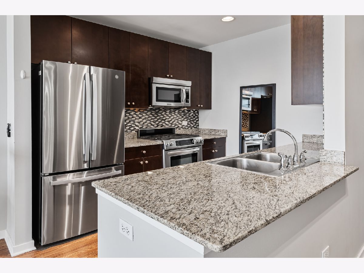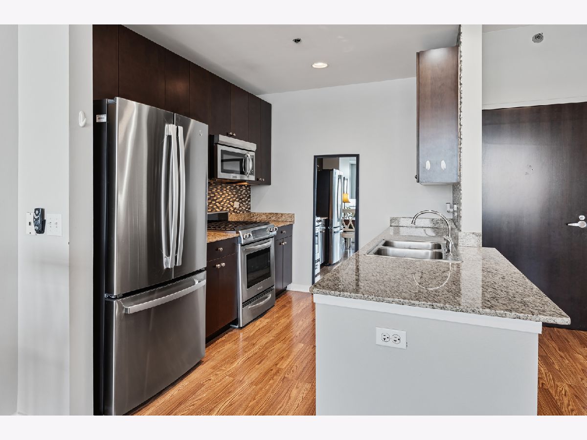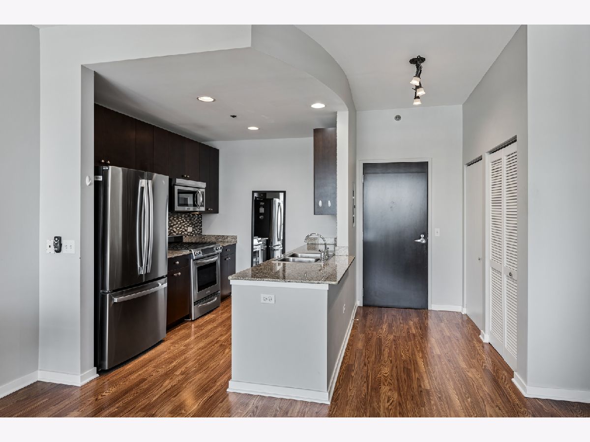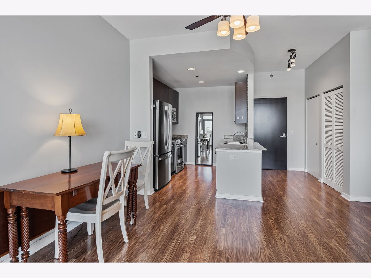 BEST PRICE on a one bedroom at the highly sought after Silver Tower of River North. Luxury vinyl floors and floor to ceiling windows that bring in city views and peeks of Lake Michigan. A private spans the entire living room. Open kitchen with granite and stainless steel appliances. Bedroom with huge walk in closet. Coat closet in the entry. Front load washer and dryer included. Spacious bathroom with tub/shower combination and wide single sink vanity. Enjoy walking to everything in the city. Especially convenient to East Bank Club, Chicago River walk, Zarella Pizza, Avli, Oud Coffee, Target, Merchandise Mart, Fox Trot. The building features an incredible management team including 24 hour door staff, on site engineer, and on site manager. State of the art fitness center, common roof deck, 12th floor terrace and dog run, storage for every owner on 11, guest parking, and electric vehicle charging station. Recent building improvements includes new garage doors and butterfly mx keyless entry. For an additional $35k, attached garage parking for one car. All furnishings can be included in the price.