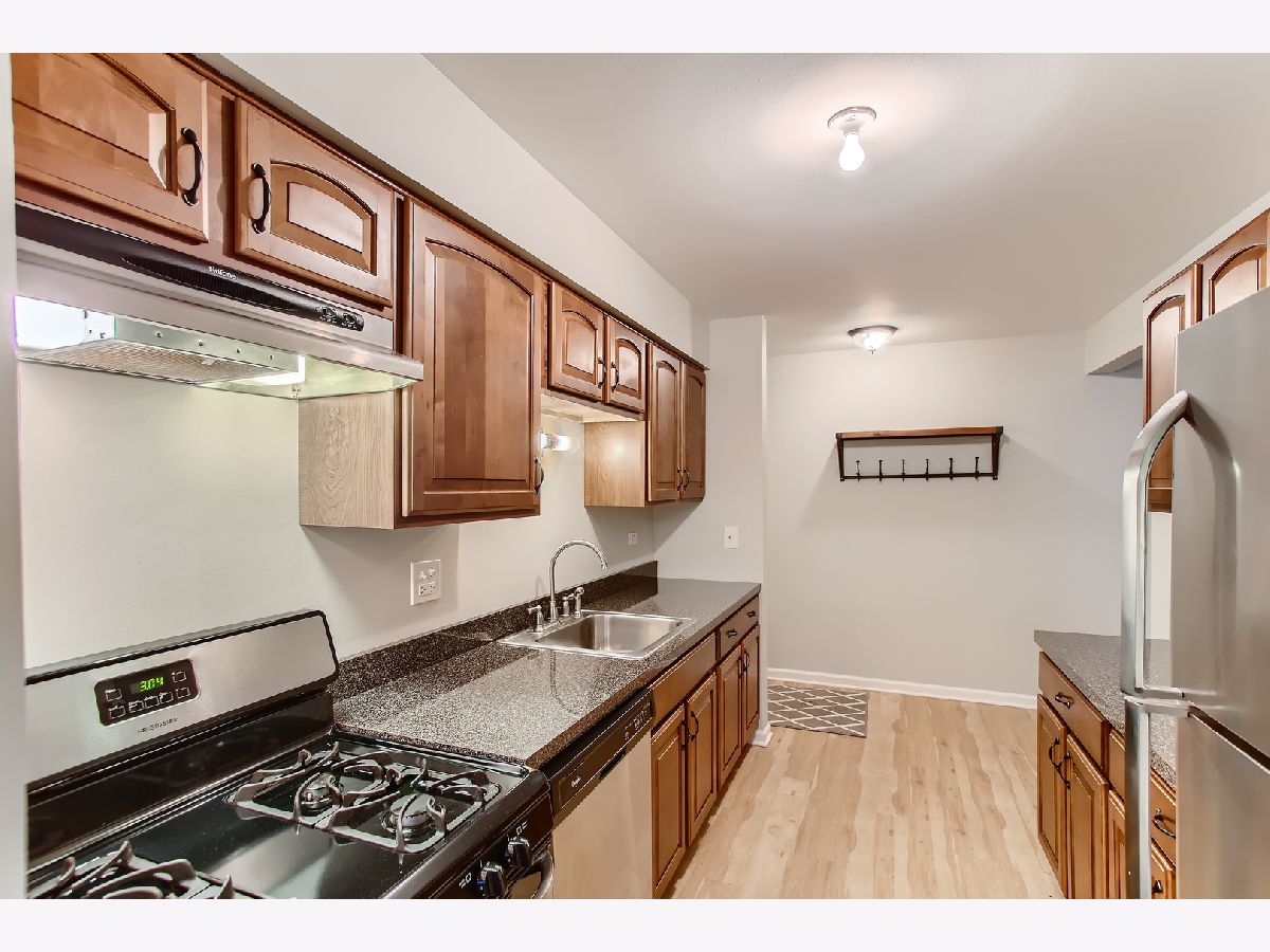 HIGHEST AND BEST OFFERS DUE SUNDAY 12/12 BY 5PM. Welcome home to your 2 bedroom, 2 bath first floor condo in a desirable Woodridge location! Featuring engineered hardwood flooring throughout, neutral paint, modern fixtures and designated dining, this property is sure to impress. The galley kitchen boasts stainless steel appliances, custom cabinetry and extra counter space. Large windows let in plenty of natural light and the location overlooks a sprawling green courtyard. 1 outdoor assigned parking space included with the price! Steps to Hobson Rd, Hwy 53, Castaldo Park Disc Golf Course, Camp Greene Wood, and plenty of restaurants, grocery options, entertainment and shopping in Lisle and Naperville! Not FHA approved. Rentals allowed