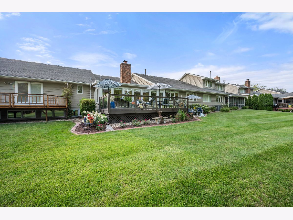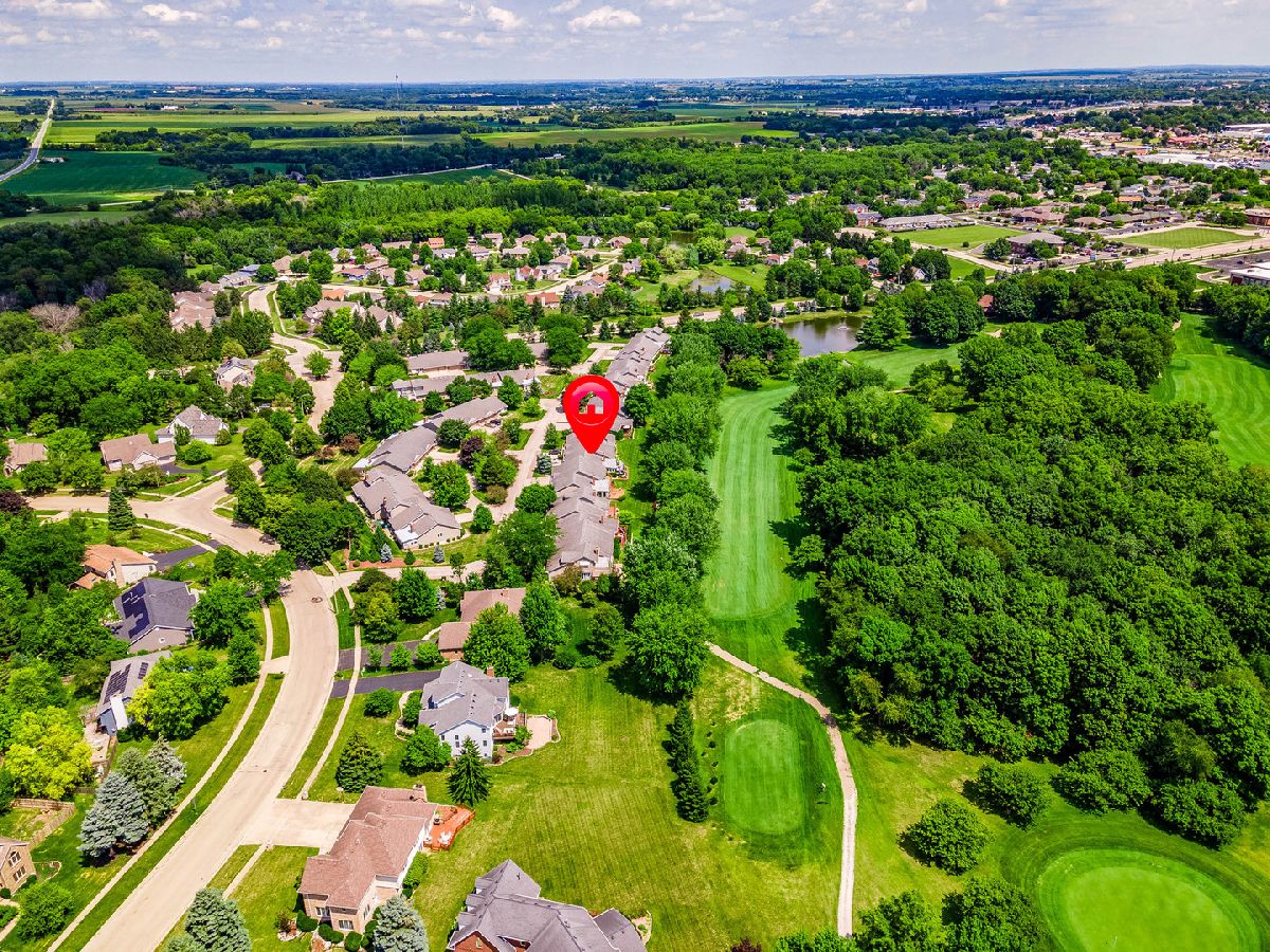 BEAUTIFLLY APPOINTED RANCH CONDO is nestled on the 11th fairway of the Kishwaukee Country Club... a premier home and premier setting! Take in the breathtaking views from the wood deck with glass spindles and intimate stone patio. This outdoor sanctuary is embraced by abundant landscaping offering golf course, pond, and wooded panoramic scenery... enjoy outdoor living at its finest! Dazzling crystal-like lighting and white millwork foyer wall accents welcome you into this amazing showcase home. Light and inviting wall color, white 8" base trim, solid white Craftsman interior doors, Levolor window shades, gleaming hardwood floors and multi-piece white crown molding accent the heart of this lovely condo. The stunning kitchen boasts gorgeous quartz countertops, white subway tile backsplash, white painted cabinetry, open cabinets to display your favorite dinnerware, pantry French doors with pullout drawers and a cozy bay window setting with a flower garden view. Samsung stainless steel appliances with 5-burner gas range and front knobs complete this chef's delight cooking space. The Living Room showcases white painted brick and mill-work surround the gas log lit fireplace with custom handcrafted white mantle. Decorative French door opens into a built-in wall hutch displaying glass shelving and owner's lighting... simply delightful! The Dining area joins this favorite gathering space, all accented with white crown molding. Two openings step down into the sun-filled sunroom presenting a sloped ceiling, modern clean face electric fireplace, white brick accent wall, white window shades and ceramic tiled flooring, all leading to the outdoor oasis! French doors open into the office or 2nd bedroom with a closet currently being used for a desk cubby. The primary bedroom suite hosts an eye-catching modern reflective light fixture, window shades, and amazing golf course views. 10'x6' walk-in closet is equipped with custom drawers and shelving. Cabinets sit on top of vanity offering an elegant appeal and convenient storage. The shared hallway bath features a copper-like vessel bowl and quartz vanity top, glass shower door, Kohler toilet and oiled bronze faucet. Double doors open into the private laundry room offering GE white washer and gas dryer, cabinets, and utility sink. Mission-style staircase spindles invite you to the finished lower-level family room with recessed lighting and closet storage. Puradigm, one of the most validated air and surface purifier in the market is an accessory to assure a clean and healthy home. Energy efficient furnace, Aprilaire humidifier, attached wood shelving are additional bonus items in this basement. Wait, there is more! You will find the 2 1/2 car heated garage with custom installed epoxied floor other updated features. There is a home owners' association self-managed by Golf Villas of Fairway Oaks. Be entertained by carefree living, extraordinary golf course setting and an exquisite dream residence!