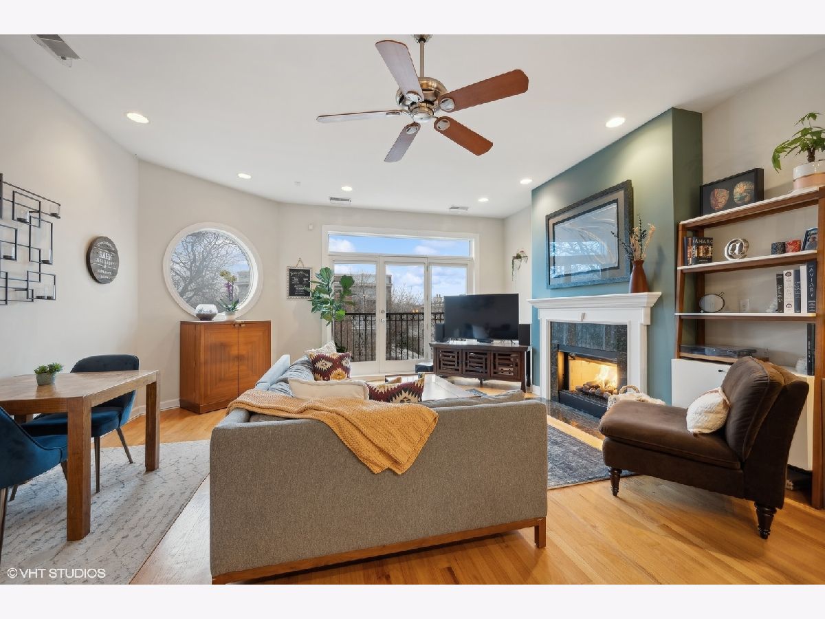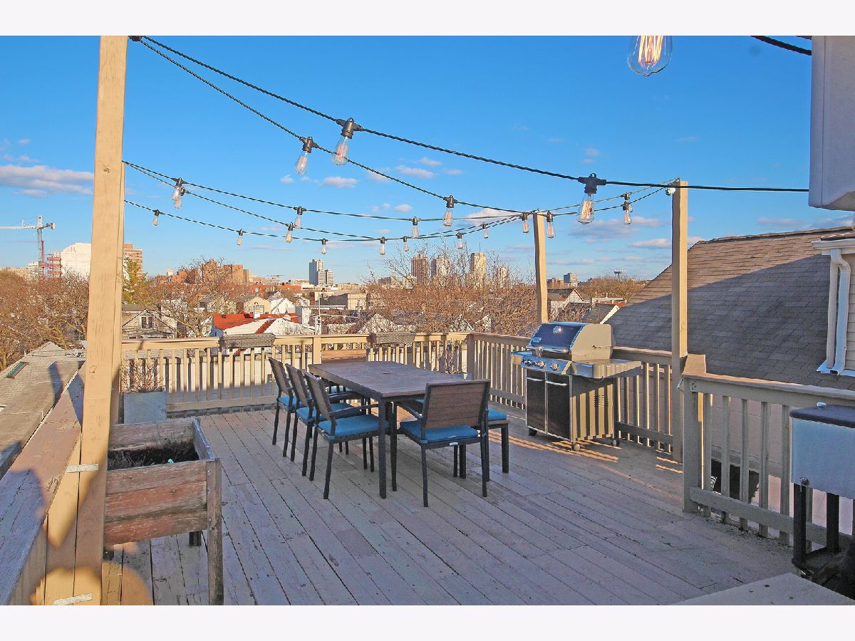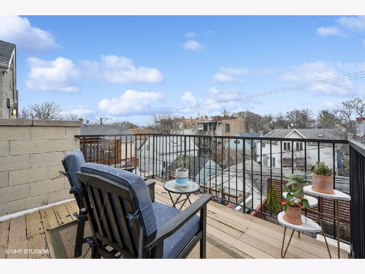 Top floor 2 bed, 2 bath bright condo with 2 outdoor spaces, in the heart of Lakeview. Enjoy the entire 700 sq. ft. roof deck to yourself and take in the awesome 360 views, two seating areas with built-in speakers, as well a separate back deck off the main level hallway. When entering the home, you're invited into a beautiful foyer with a custom wallpaper accent wall. The living room has large windows and a gas fireplace, and open to the kitchen featuring SS appliances, granite, 42" cabinets and clever lighting. Your primary bedroom is super bright, has surround sound speakers and attached bathroom with shower and separate soaking tub. The second bedroom and second bath are off the main hallway. Other features include, hardwood floors throughout, central HVAC, great storage and in unit W/D. 1 car garage space and additional storage unit included. Great Lakeview location, walking distance to red/brown line trains, Southport Corridor and tons of businesses, restaurants, theaters and bars along Belmont Ave. And most importantly, only 10 minutes to Wrigleyville - Go Cubs!!