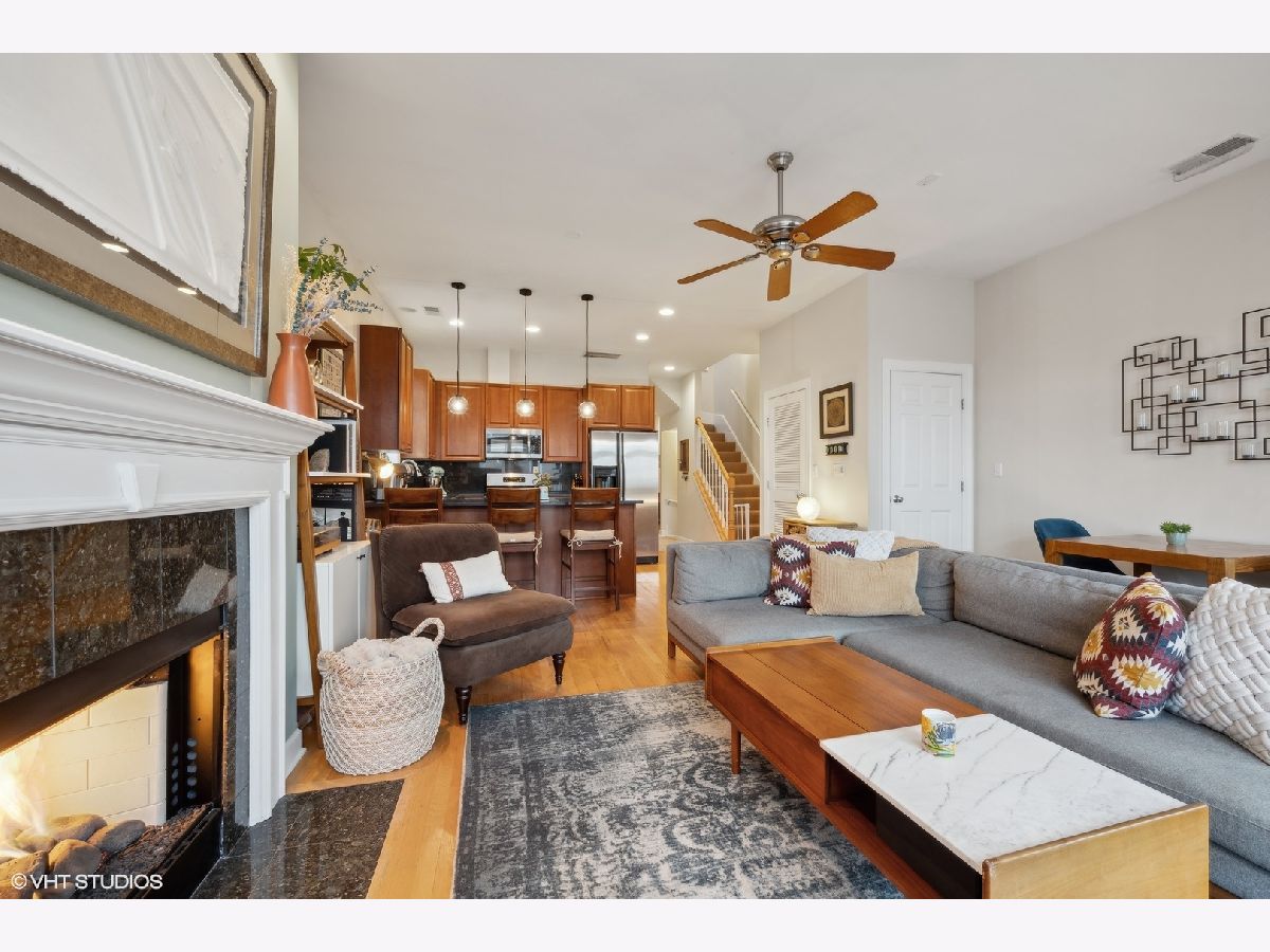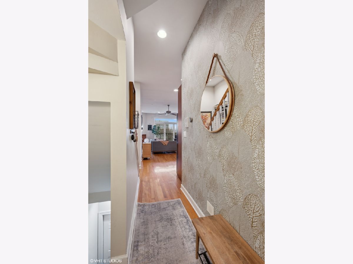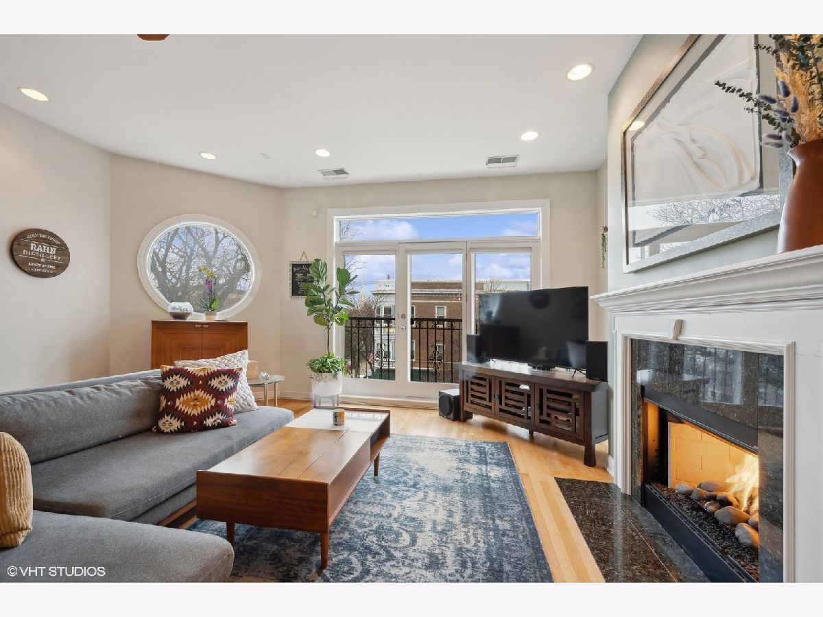 Top floor 2 bed, 2 bath bright condo with 2 outdoor spaces, in the heart of Lakeview. Enjoy the entire 700 sq. ft. roof deck to yourself and take in the awesome 360 views, two seating areas with built-in speakers, as well a separate back deck off the main level hallway. When entering the home, you're invited into a beautiful foyer with a custom wallpaper accent wall. The living room has large windows and a gas fireplace, and open to the kitchen featuring SS appliances, granite, 42" cabinets and clever lighting. Your primary bedroom is super bright, has surround sound speakers and attached bathroom with shower and separate soaking tub. The second bedroom and second bath are off the main hallway. Other features include, hardwood floors throughout, central HVAC, great storage and in unit W/D. 1 car garage space and additional storage unit included. Great Lakeview location, walking distance to red/brown line trains, Southport Corridor and tons of businesses, restaurants, theaters and bars along Belmont Ave. And most importantly, only 10 minutes to Wrigleyville - Go Cubs!!