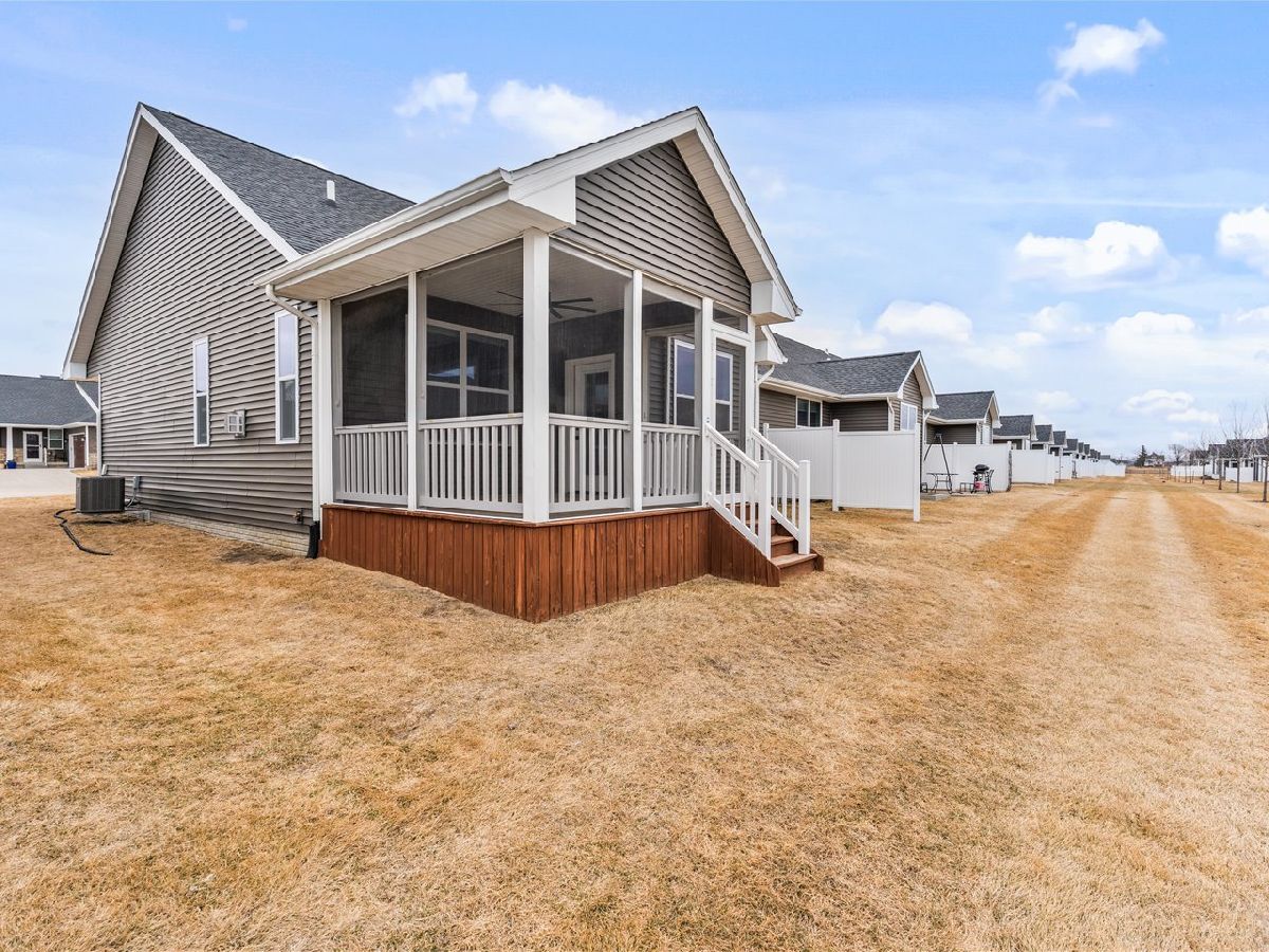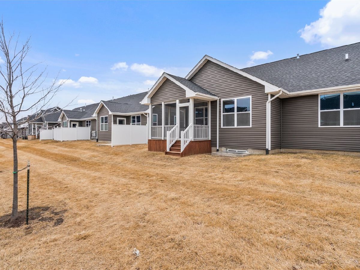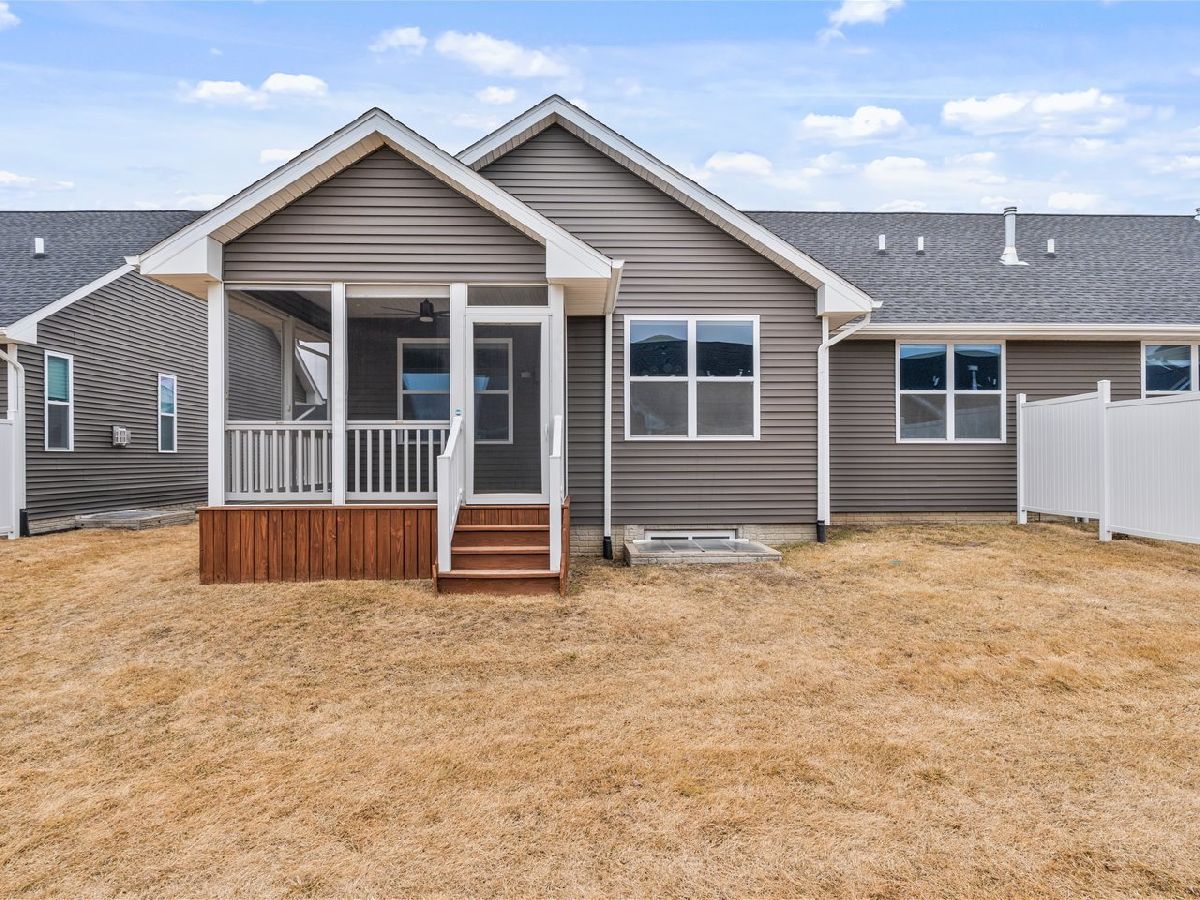 3-bed, 2-bath ranch villa in Bettendorf offering stylish, low-maintenance living in the Pleasant Valley School District. Built in 2020, this home still looks & feels brand new & is completely move-in ready. The open-concept layout provides seamless flow between the kitchen, dining area, & living room, with a center island defining the spaces. The living room features a gas fireplace & custom plantation shutters for a polished finish. Just off the dining area, a screened porch extends the living space & provides a comfortable outdoor retreat. The primary suite includes a private en suite bathroom & a spacious walk-in closet. Two additional bedrooms & a full bathroom complete the main level, along with a conveniently located laundry room that leads directly to the attached, heated 2-car garage. The full basement is clean, unfinished, & ready for future expansion, with a bathroom rough-in already in place. This well-maintained villa combines modern construction with thoughtful design. Schedule your private showing today.