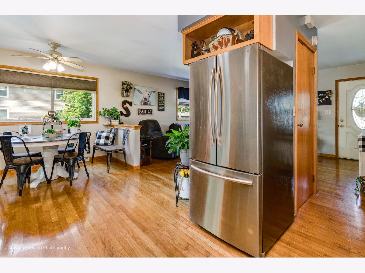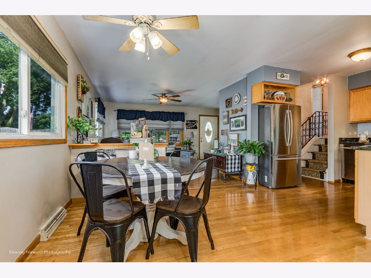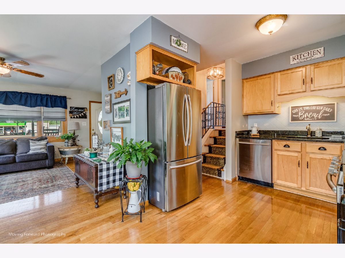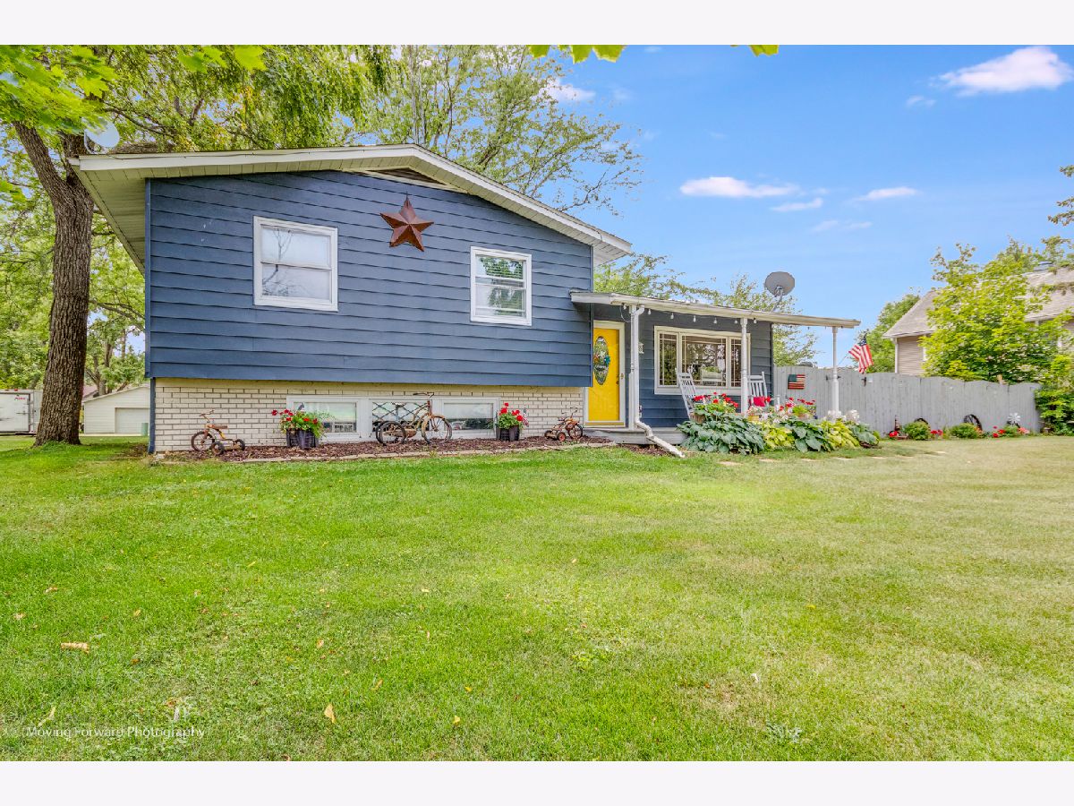 Cheerfully Vibrant and Updated Home in Newark! Picturesquely tucked away in an idyllic small town, this 3+BR/2BA, 1,815sqft residence immediately charms with beautiful new siding, a canary yellow front door, an inviting covered front porch, and a neatly landscaped 0.26-acre lot. Marvelously maintained and perfectly kept, the interior further captivates with gleaming hardwood flooring, an attractive color scheme, abundant natural light, rustic wood trim, and a spacious living room. Holiday gatherings and cozy morning meals are a cinch in the updated kitchen, which includes stainless-steel appliances, granite countertops,large pantry, wood cabinetry, gas stove, built-in microwave, dishwasher, stylish tile backsplash, French door refrigerator, and an adjoining dining area. Three upper-level bedrooms are generously sized. Upper-level full bathroom with a shower/tub combo and a storage vanity. As a fabulous bonus, the lower-level offers an enormous flex room/potential 4th bedroom and a full bathroom. Enjoy the entertainment-ready outdoor space. Boasting a shaded oversized concrete patio, the backyard also has tons of greenspace for gardening and playing games. Other features: oversized detached 2.5 car garage, New Furnace and AC w/transferable warranty, laundry room, quick 29-mile drive to Downtown Naperville or 60-miles to Downtown Chicago, close to restaurants, schools, and shopping, and more! Call now to schedule your showing!--