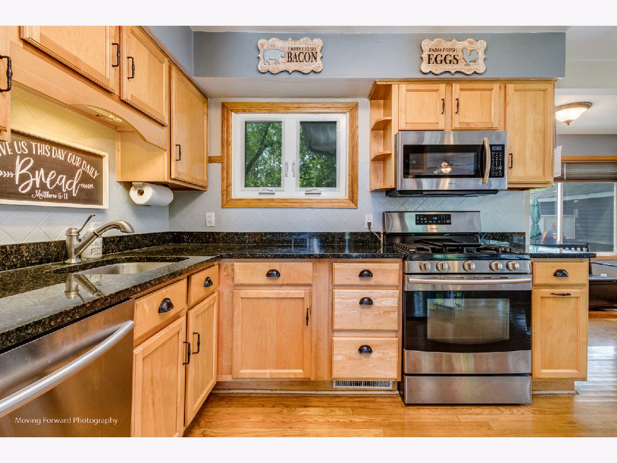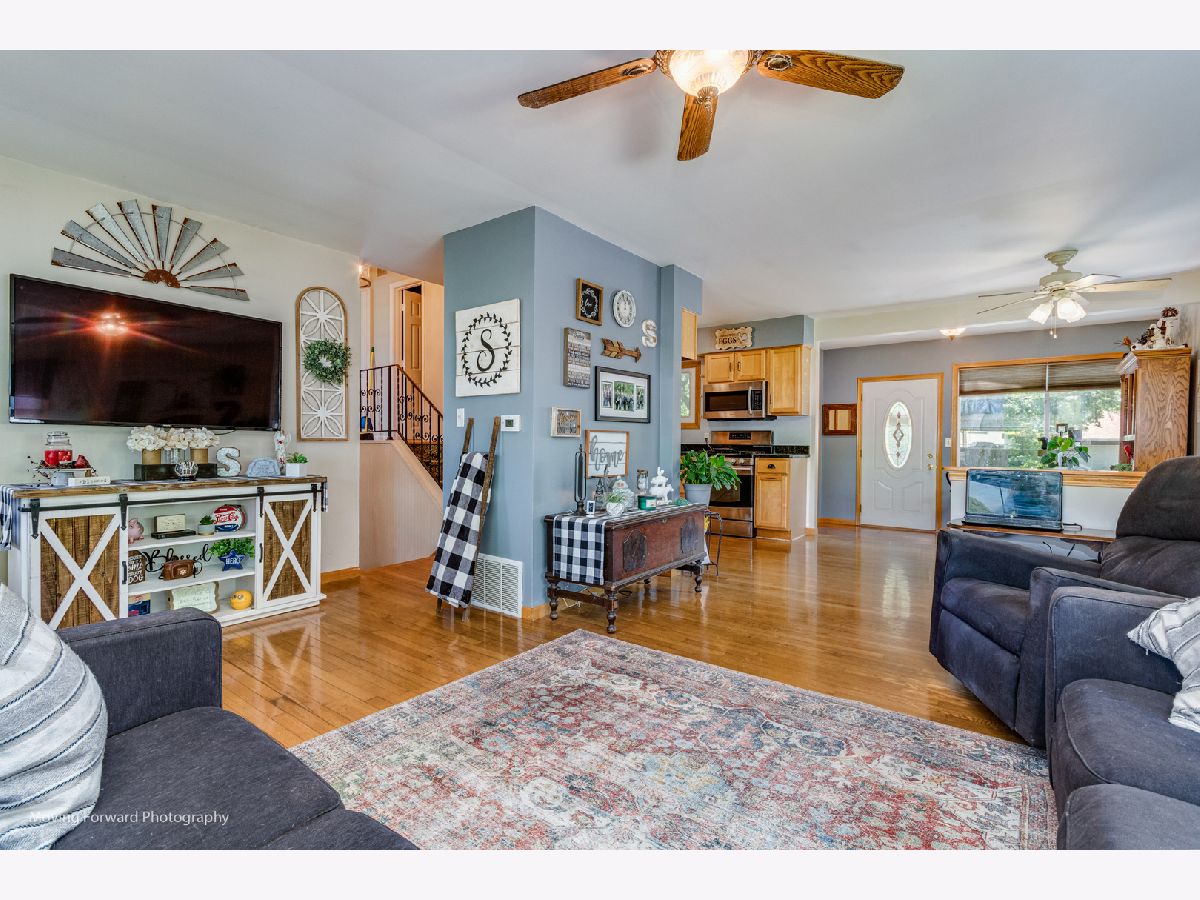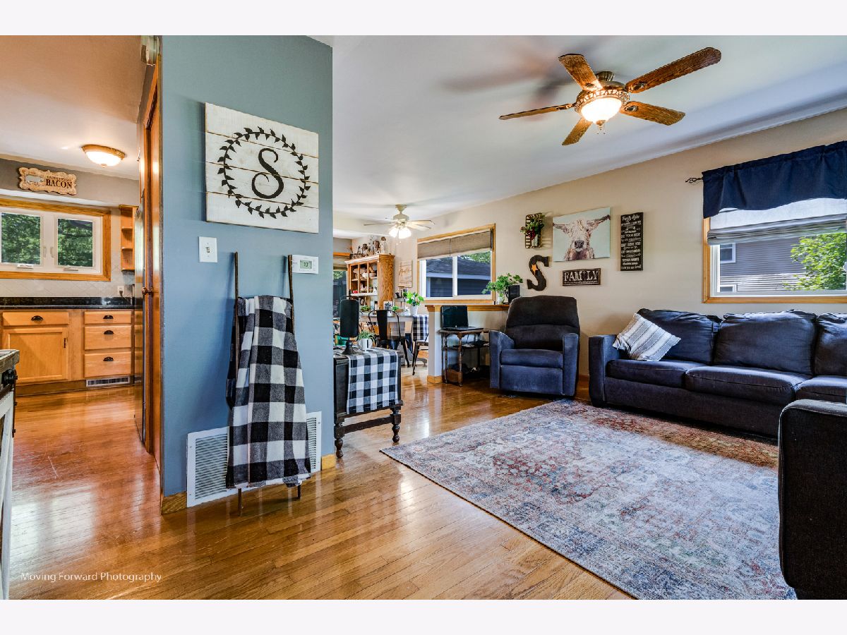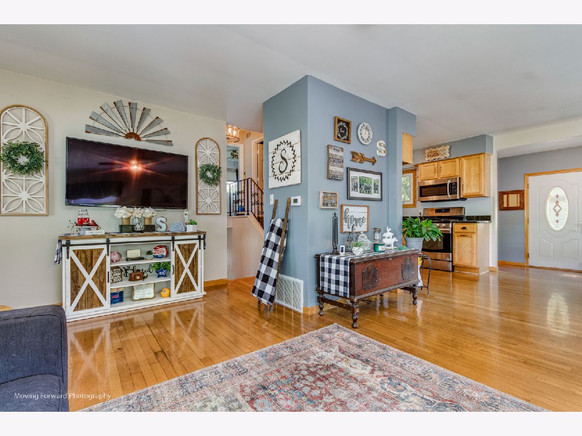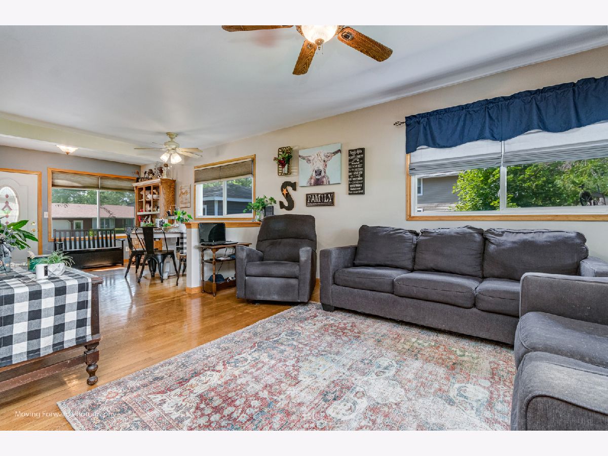 Cheerfully Vibrant and Updated Home in Newark! Picturesquely tucked away in an idyllic small town, this 3+BR/2BA, 1,815sqft residence immediately charms with beautiful new siding, a canary yellow front door, an inviting covered front porch, and a neatly landscaped 0.26-acre lot. Marvelously maintained and perfectly kept, the interior further captivates with gleaming hardwood flooring, an attractive color scheme, abundant natural light, rustic wood trim, and a spacious living room. Holiday gatherings and cozy morning meals are a cinch in the updated kitchen, which includes stainless-steel appliances, granite countertops,large pantry, wood cabinetry, gas stove, built-in microwave, dishwasher, stylish tile backsplash, French door refrigerator, and an adjoining dining area. Three upper-level bedrooms are generously sized. Upper-level full bathroom with a shower/tub combo and a storage vanity. As a fabulous bonus, the lower-level offers an enormous flex room/potential 4th bedroom and a full bathroom. Enjoy the entertainment-ready outdoor space. Boasting a shaded oversized concrete patio, the backyard also has tons of greenspace for gardening and playing games. Other features: oversized detached 2.5 car garage, New Furnace and AC w/transferable warranty, laundry room, quick 29-mile drive to Downtown Naperville or 60-miles to Downtown Chicago, close to restaurants, schools, and shopping, and more! Call now to schedule your showing!--