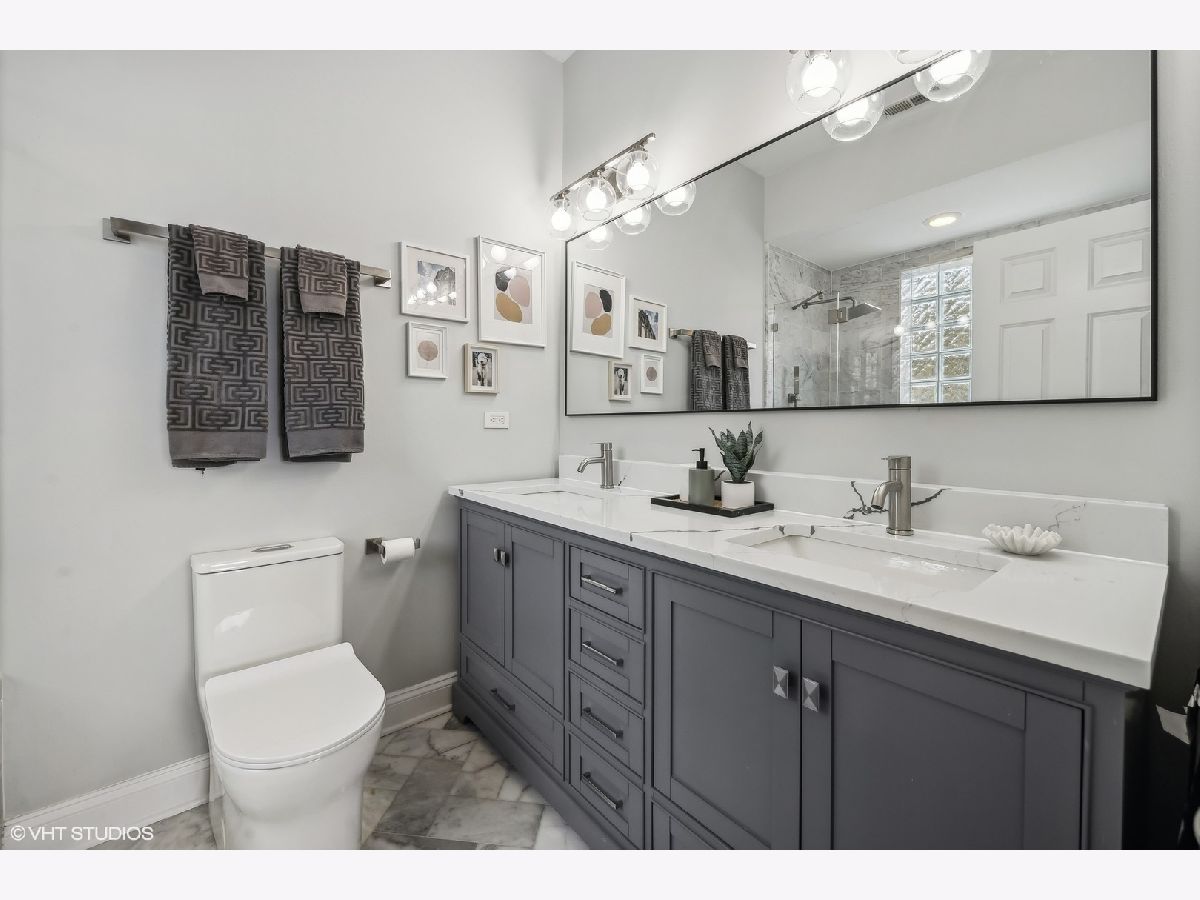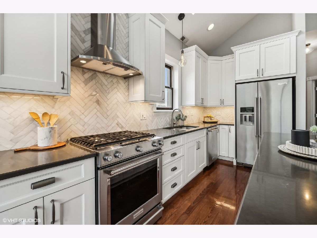 ****Multiple offers received, best and final due Monday at noon.Welcome to this meticulously maintained 2 Bed, 2 Bath penthouse nestled in the vibrant heart of Lakeview. Bathed in natural light, this home exudes modern elegance and comfort. Boasting expansive east-facing windows, vaulted ceilings, and skylights, it offers a sense of spaciousness and airiness. Step into luxury with a recent kitchen renovation featuring pristine white, extra tall, shaker-style cabinets, complemented by quartz countertops and adorned with marble herringbone-laid backsplash. A new stainless steel appliance package completes this chef's dream. The primary suite is a sanctuary of sophistication, featuring a professionally organized closet. Relax and unwind in a brand new en-suite marble bath with dual vanity sinks and large soaking tub. Gracious 2nd bedroom with organized closets and newly renovated marble bathroom with walk-in shower. The home is equipped with modern amenities, including a newer washer and dryer(2020), new light fixtures throughout, and new Pella window system in the front. Hardwood walnut stained oak floors add warmth and character to the living space. Entertain or simply soak up the sun on the spacious private back deck, accessible through the back hallway and primary bedroom. Located in an intimate and healthy 3-unit building, this property offers peace of mind with a new roof and recent sealing and tuck-pointing. A new steel decking system with Trex ensures durability and longevity. Parking is a breeze with 2 car exterior tandem parking included in the price, along with additional storage space. Don't miss this opportunity to experience luxury living at its finest in the heart of Lakeview.