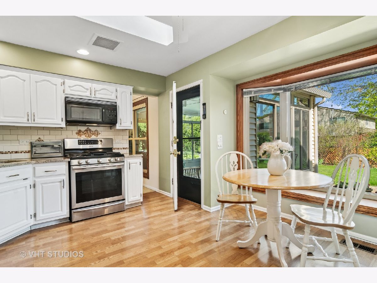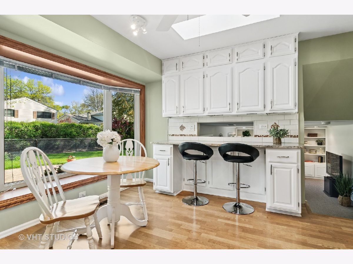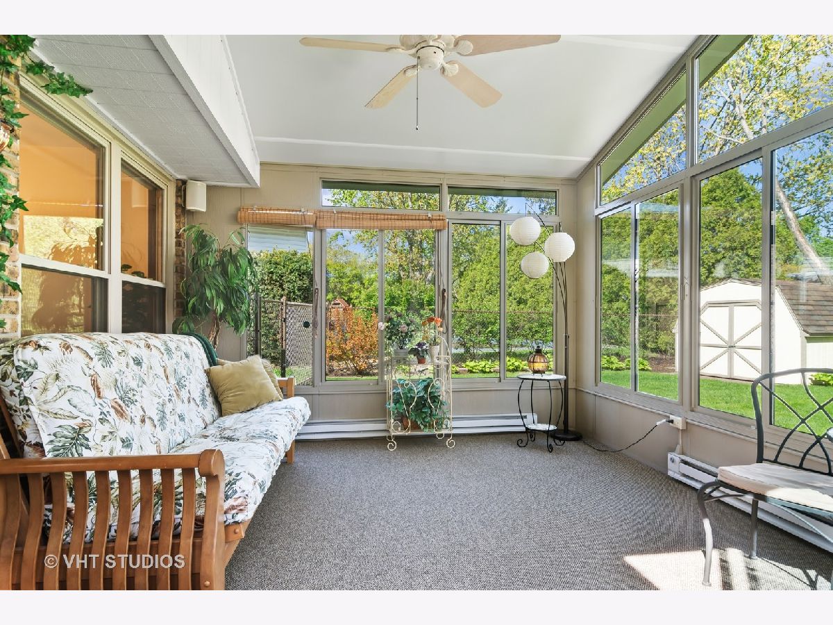 There is so much to love about this home, starting with the premium location, tucked away on the interior of desirable Northgate. You'll have easy access to summer fun at Centennial park, tennis courts, and playground. Inside you'll find the perfect combination of open and private spaces with abundant natural light flooding in from the oversized windows. The front living room is perfect as a quiet place to get away or enjoy a glass of wine with friends before moving to the dining area for game night. The pretty white kitchen is enhanced with skylights and additional cabinetry and counter space offering flexibility for extra seating, researching recipes, supervising homework, or setting up a buffet. Off the kitchen you'll find a 3-season room where huge windows provide great views, beautiful natural light, and an opportunity to watch the seasons change in comfort. Like your own vacation getaway, close your eyes and imagine the summer breeze moving through while you're enjoying dinner, drinks, or a peaceful moment in this wonderful space. A few steps down from the kitchen you'll find the family room-perfect as a backdrop to a lifetime of memories. It features a lovely brick fireplace with built in cabinets on either side where you can display your favorite photos and treasures and limitless possibilities for your holiday decor! We love the idea of keeping a desk in this area for work or projects or swap it with a chair and lamp for additional seating and the perfect reading nook! Also, on this level you'll find a remodeled full bathroom and nice sized laundry/mudroom ideal for creating a drop zone to keep all the shoes, bags, coats, and accessories organized and out of sight. Upstairs features a primary bedroom, updated bathroom, and 2 good-sized secondary bedrooms with hardwood flooring. Rare for this model, this home features a basement offering play and recreation space as well as additional storage in the built-in cubbies. It is plumbed for a bath if you would like to add one. There are truly so many flexible spaces that it makes it easy to find room for everyone, whether working from home or creating multiple play or tv zones. Step into the backyard and discover your outdoor sanctuary including a spacious brick patio that is ready for you to relax or entertain. The yard is lovely with mature plantings and a fenced perimeter. There is a shed for storage and plenty of grassy space for play. The home has been very well cared for. The seller has improved energy efficiencies by adding insulation in the attic and over the years the seller has replaced or upgraded the following: Air conditioner, furnace, electrical box, garage opener, siding, gutters, roof, sewer cleanout, sump pump, windows, & more (contact agent for a additional details and specific ages). You'll love the Northgate neighborhood where pride of ownership is evident, and residents come together for events & activities throughout the year. Located within the award-winning Buffalo Grove High School District plus you'll enjoy other area amenities including Lake Arlington, Camelot Park & pool, abundant shops & restaurants, & a short drive to downtown Arlington Heights & the Metra train.