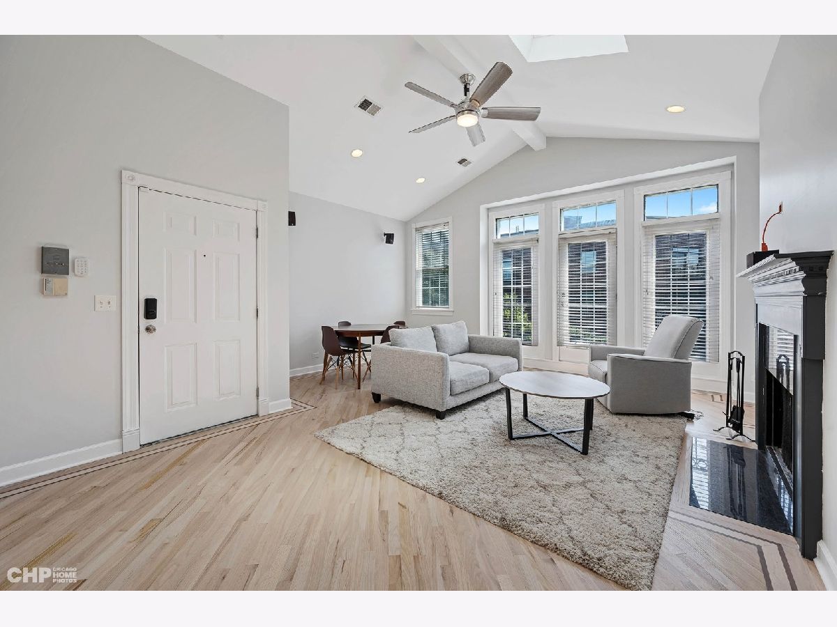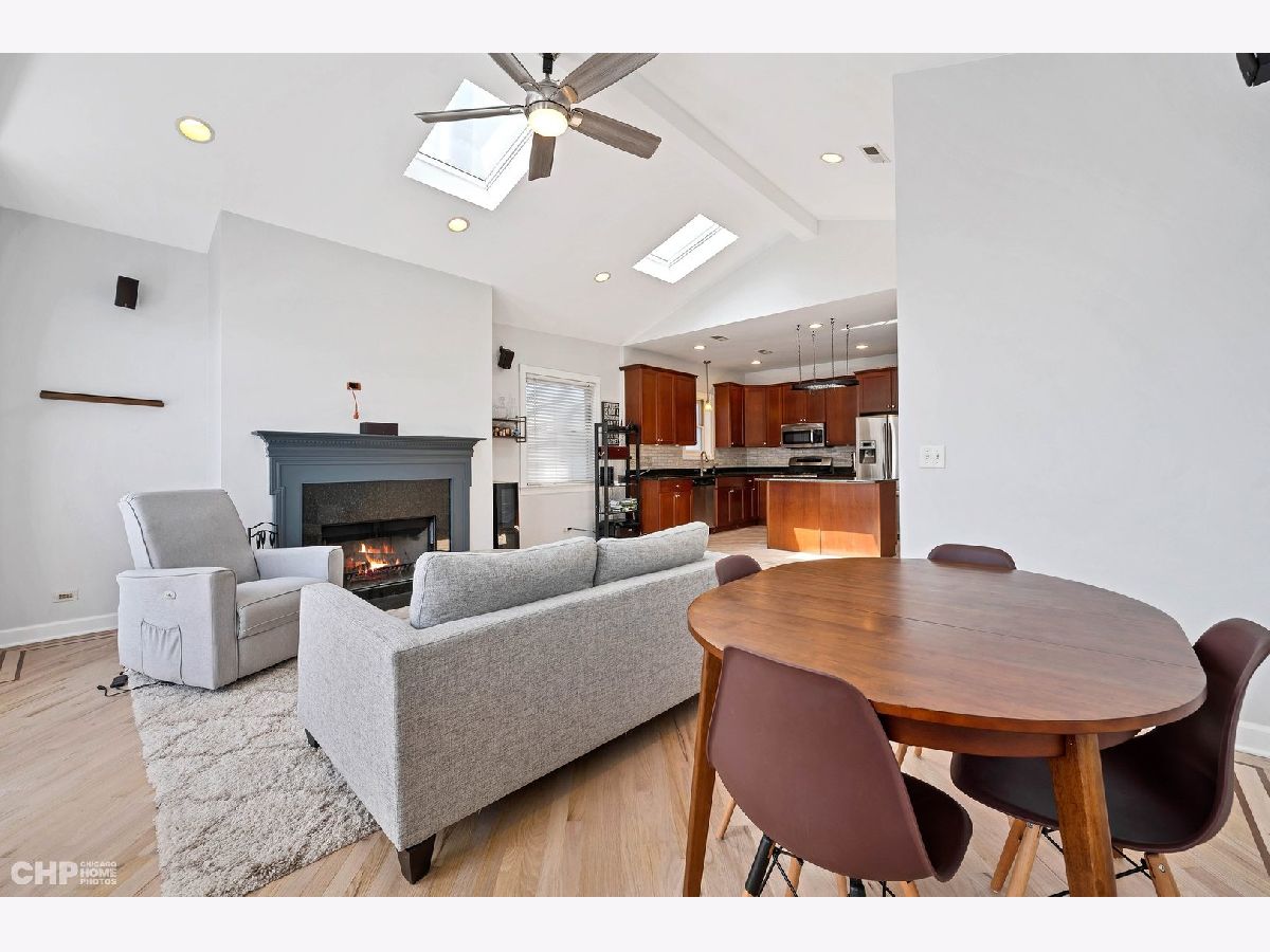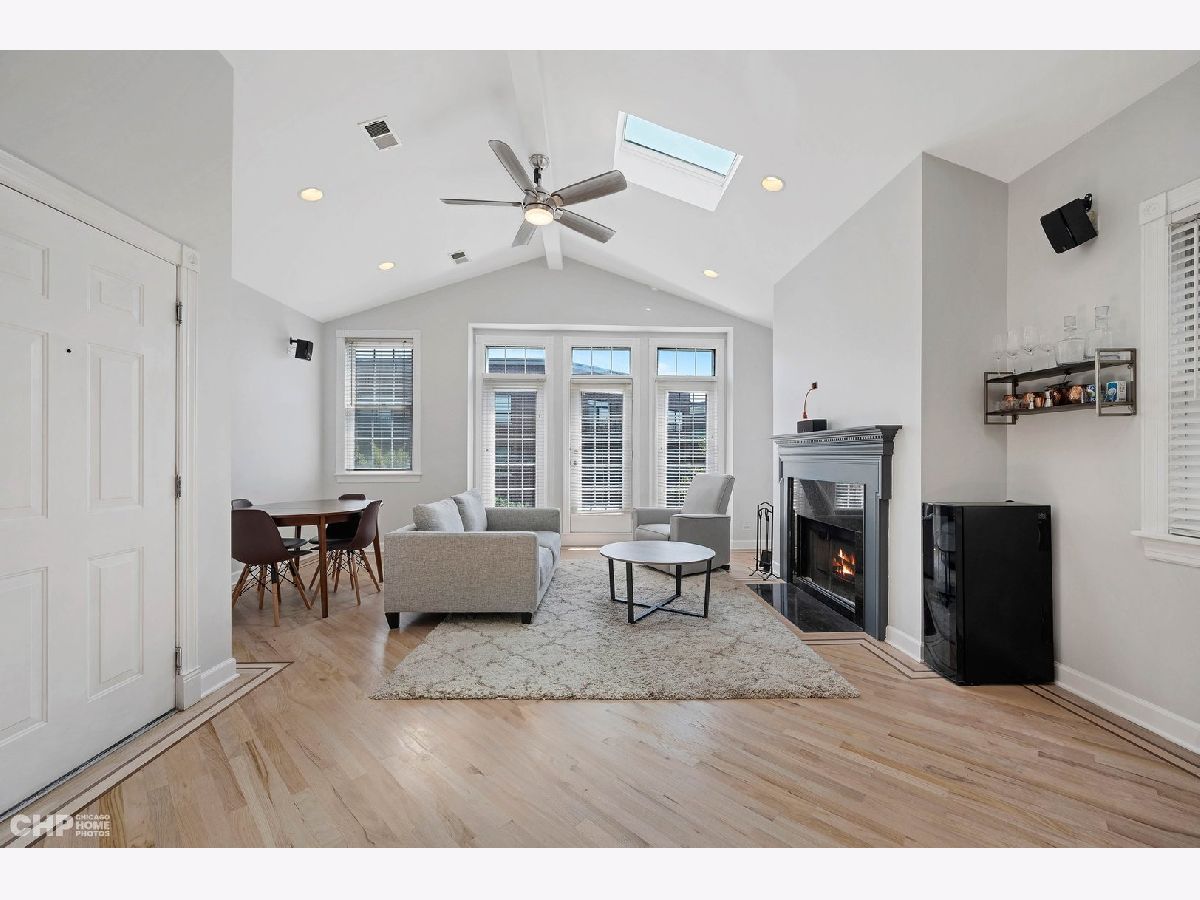Beautiful 2 BR/2 BA condo in Hamlin Park! This freshly painted and sunny top floor unit will impress with its high vaulted ceilings, skylights, and cozy fireplace. Oversized windows and gorgeous oak floors with decorative inlay give you a custom feel. The spacious kitchen offers a ton of counter space and storage, complimented by quality cabinets, under mount lighting, and marble backsplash. King-sized primary bedroom has vaulted ceilings and attached ensuite with ample storage. Big private balcony off the back is perfect for Chicago summers! Great location, minutes to the riverfront trail, Hamlin Park (with a pool!), and dog parks. Short walk to lots of neighborhood favorites, including main Roscoe St corridor, 90 Miles, and Metropolitan Brewing. Not to mention close to tons of shopping and grocery for convenience and ease of living. Additional storage in basement. Low assessments. In-unit washer/dryer and a heated garage space top it all off! Highly desirable Jahn school district