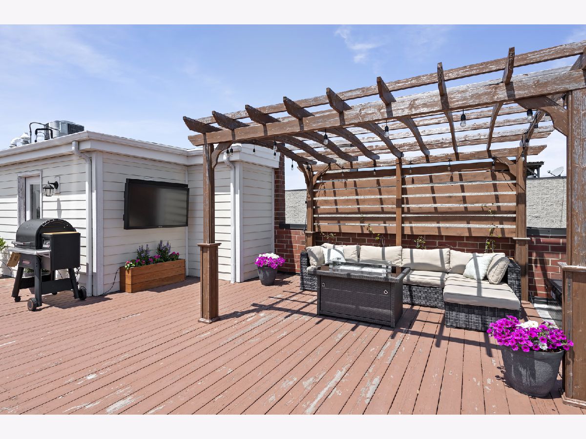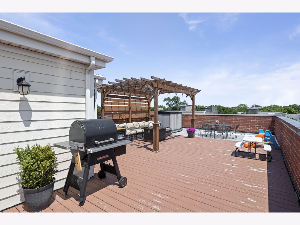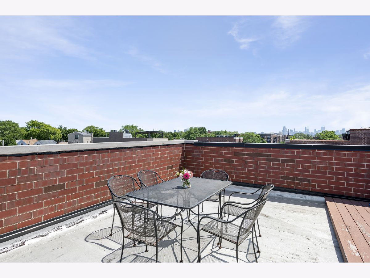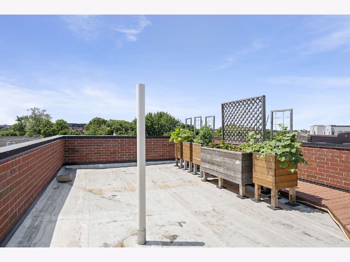 Extra wide 1800 square feet 3 bed 2 bath top floor unit in Roscoe Village! Sitting on an extra wide 28X128 ft lot, this all brick building built in 2015 will not disappoint. The home features a large private roof deck that spans the entire building with skyline views, a wooden pergola, and raised garden beds that include a Bluetooth irrigation system. Additional 2nd deck off of the living room that is perfect for grilling and entertaining. Throughout the home you will find extensive millwork, crown molding, and dark hardwood floors. Enjoy the open floorplan and custom white kitchen with stone countertops, full tiled backsplash & professional Viking appliances. At the front of the unit is a giant living room with a gas fireplace, combined dining area and expansive windows offering tons of sunlight. Head down the hall to two good size bedrooms and full bath with dual vanities. At the back of the unit is the large primary suite with a walk-in closet and primary bath complete with an oversized steam shower, heated floors, and double vanity. 1 garage parking space included and additional storage. This is very conveniently located in the Roscoe Village Neighborhood with quick access to shopping, Hamlin Park, river walk, dog park, kids playscape, restaurants, and downtown within minutes down Clybourn.