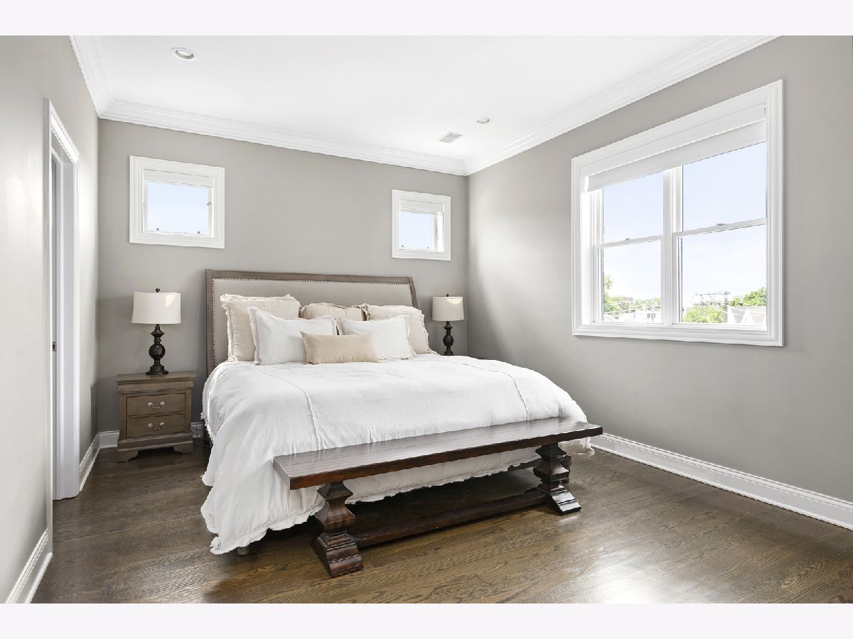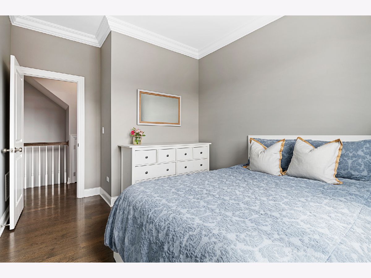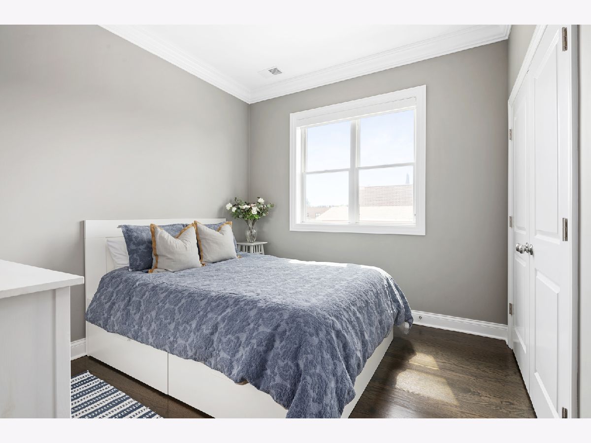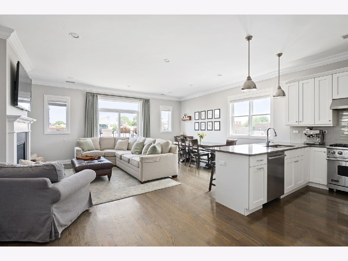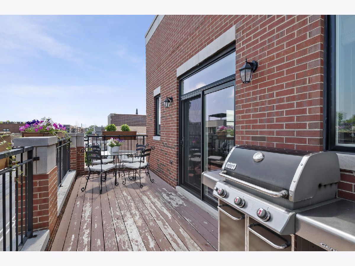 Extra wide 1800 square feet 3 bed 2 bath top floor unit in Roscoe Village! Sitting on an extra wide 28X128 ft lot, this all brick building built in 2015 will not disappoint. The home features a large private roof deck that spans the entire building with skyline views, a wooden pergola, and raised garden beds that include a Bluetooth irrigation system. Additional 2nd deck off of the living room that is perfect for grilling and entertaining. Throughout the home you will find extensive millwork, crown molding, and dark hardwood floors. Enjoy the open floorplan and custom white kitchen with stone countertops, full tiled backsplash & professional Viking appliances. At the front of the unit is a giant living room with a gas fireplace, combined dining area and expansive windows offering tons of sunlight. Head down the hall to two good size bedrooms and full bath with dual vanities. At the back of the unit is the large primary suite with a walk-in closet and primary bath complete with an oversized steam shower, heated floors, and double vanity. 1 garage parking space included and additional storage. This is very conveniently located in the Roscoe Village Neighborhood with quick access to shopping, Hamlin Park, river walk, dog park, kids playscape, restaurants, and downtown within minutes down Clybourn.