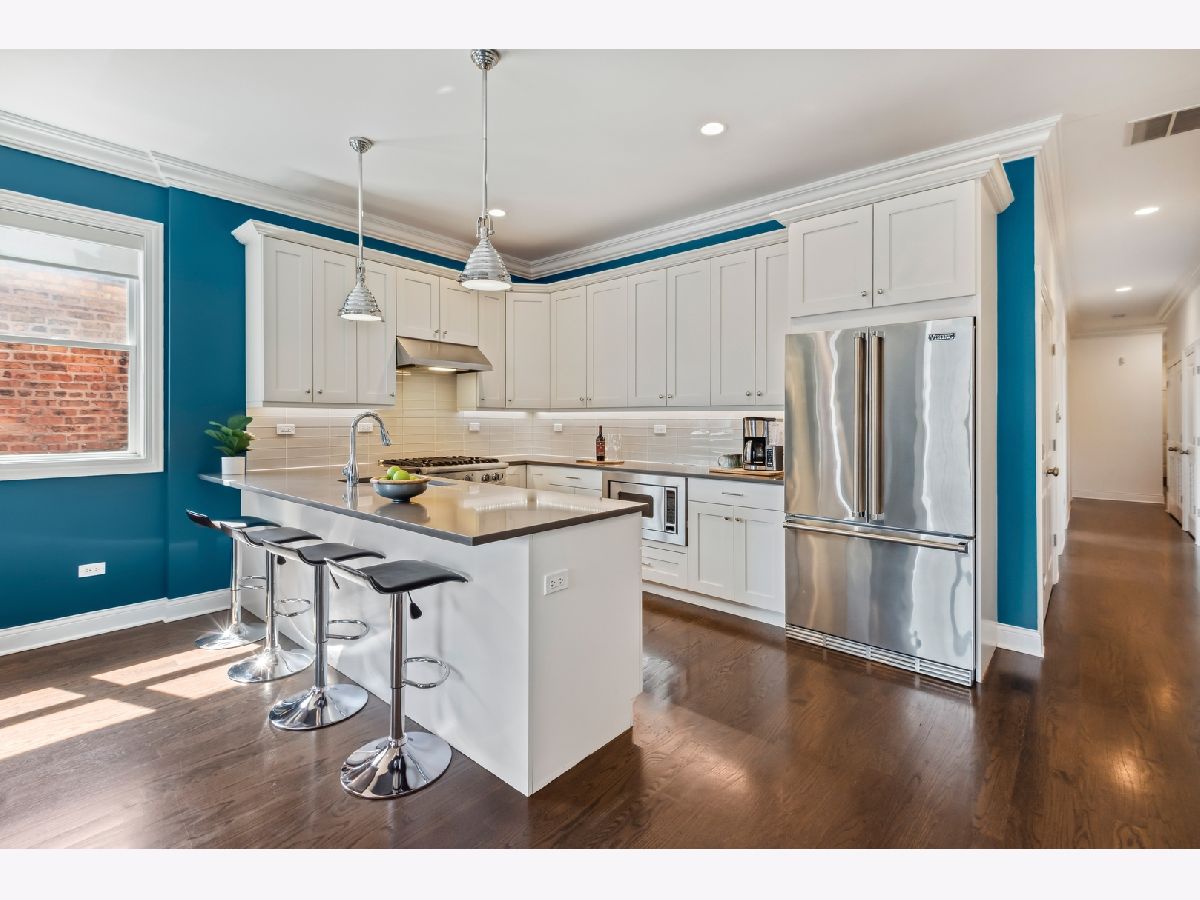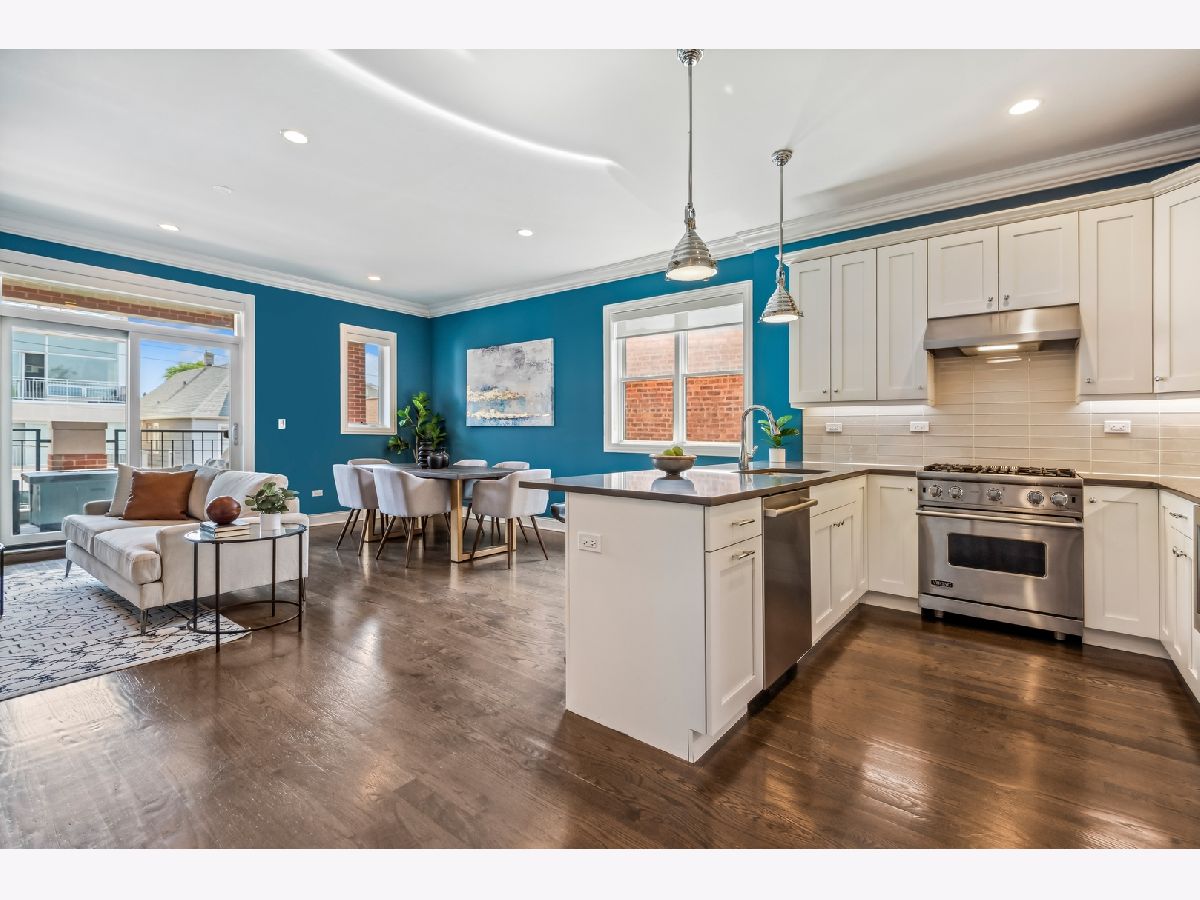 Come check out this remarkable newer construction condo in West Lakeview. This 3-bedroom, 2-bathroom unit spans a generous 1,750 square feet, offering an abundance of space for comfortable living. Situated on a wide 28x128 ft lot, this all-brick building, constructed in 2015, is sure to exceed your expectations. Step out onto the expansive balcony connected to the living room and perfect for grilling and entertaining. The home boasts intricate millwork, elegant crown molding, and rich dark hardwood floors, adding a touch of sophistication throughout. Embrace the harmonious flow of the open floor plan, allowing for effortless movement between spaces. The custom kitchen beckons with its beautiful stone countertops, tiled backsplash, and professional-grade Viking appliances. At the front of the unit, you'll find a sprawling living room adorned with a cozy gas fireplace, seamlessly blending with the combined dining area. Expansive windows flood the space with natural light, creating a warm and inviting ambiance. As you head down the hall, you'll encounter two well-proportioned bedrooms and a full bathroom adorned with dual vanities, offering comfort and convenience for family and guests. At the rear of the unit, the spacious primary suite awaits, featuring a walk-in closet and a luxurious primary bath, including an oversized steam shower, heated floors, and a spacious double vanity. Included with this remarkable unit is a garage parking space and an expansive additional storage room, ensuring ample space for your belongings. Steps away from the vibrant Roscoe Village Neighborhood. You have quick access to shopping, Hamlin Park, the river walk, dog park and restaurants. Prepare to embrace a lifestyle of comfort and convenience in this exceptional residence.