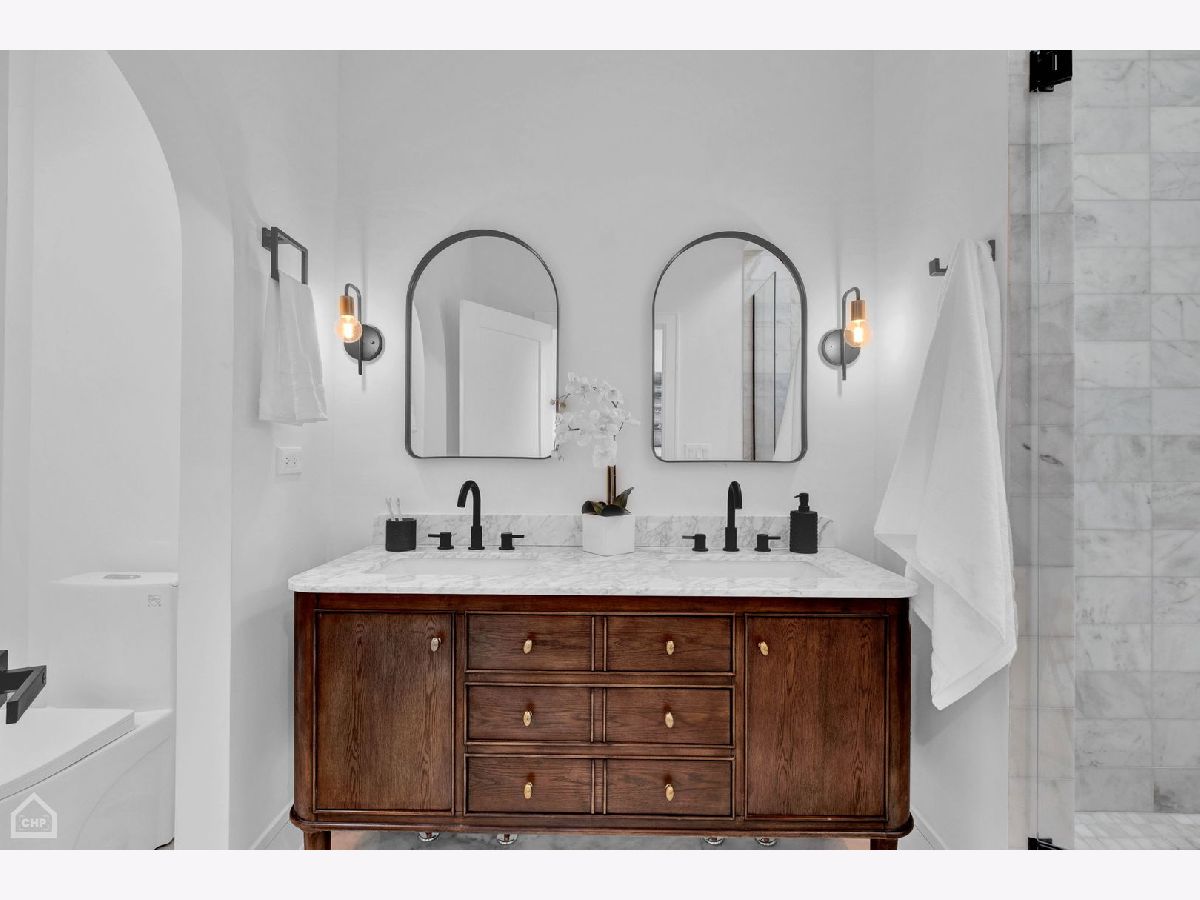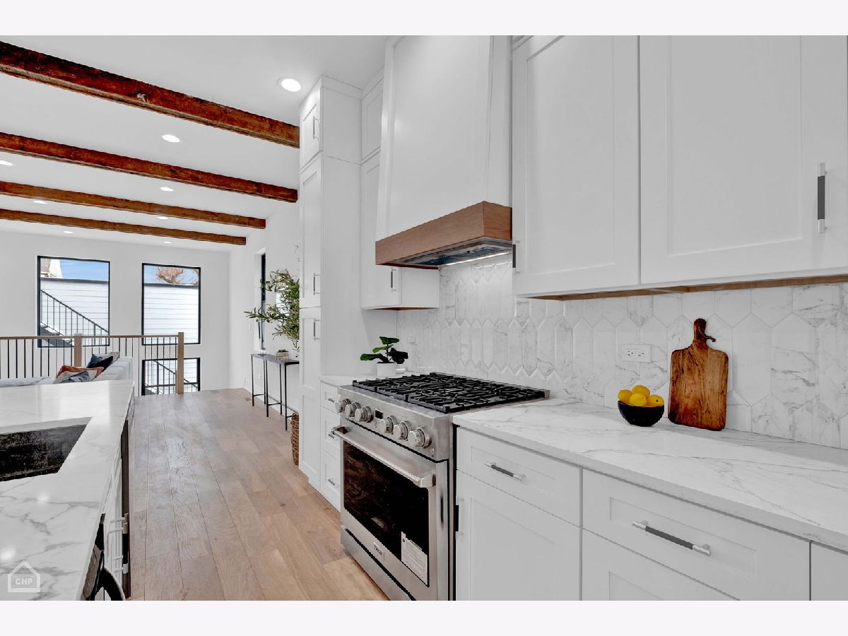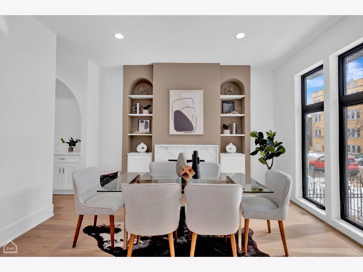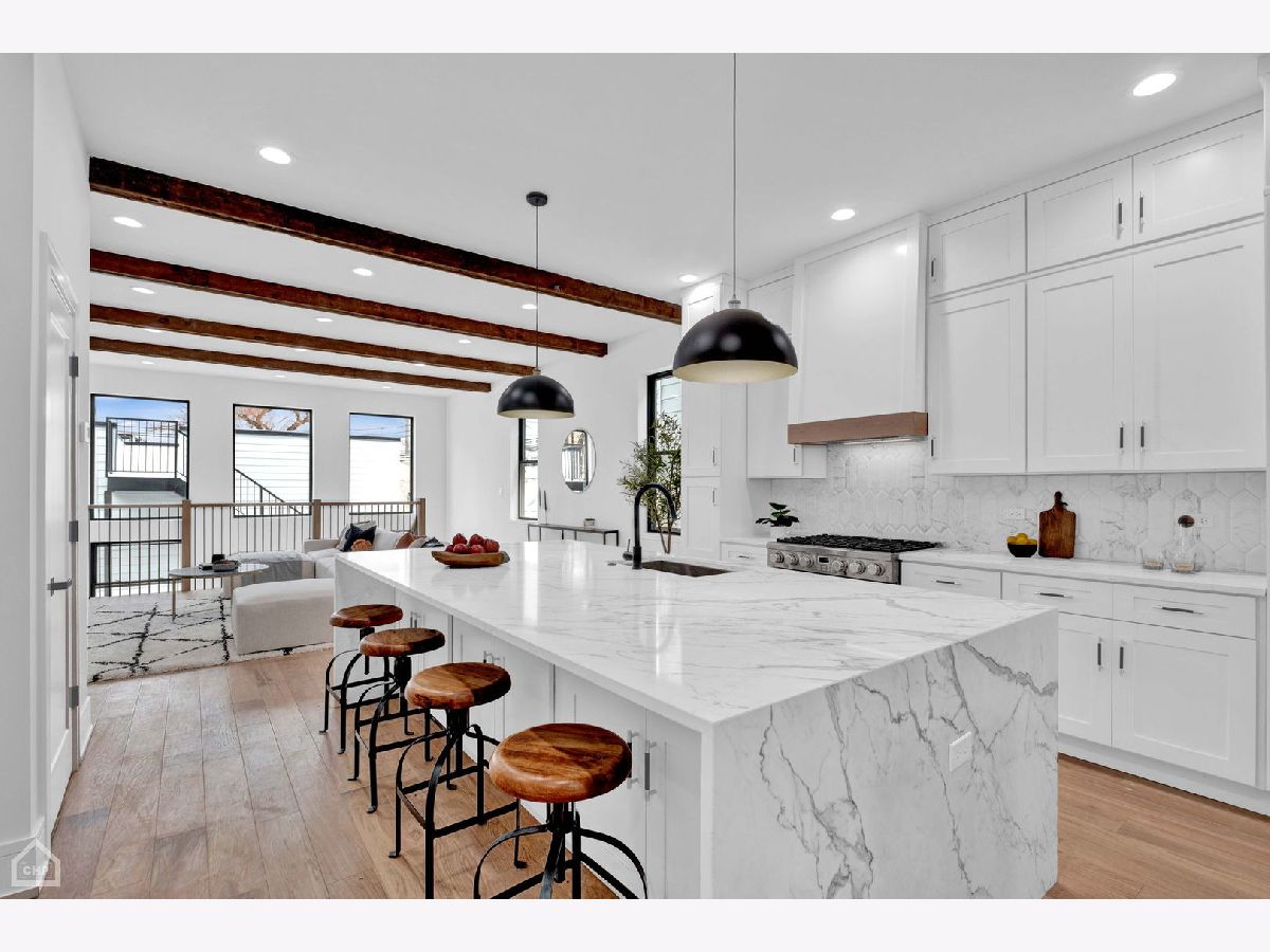 Masterfully rehabbed, 6-bedroom, 3.1-bath Avondale single-family home is a seamless blend of modern luxury and timeless charm. Thoughtfully designed for both comfortable living and elegant entertaining, the home features 4-bedrooms conveniently located on the second level, floor-to-ceiling windows that fill the space with natural light, stunning white oak hardwood floors, and custom millwork throughout. At the heart of the home is the chef's kitchen, a true show stopper with double-stacked custom cabinetry, a handcrafted wood-wrapped hood, a butler's pantry with a wine fridge, a walk-in pantry for additional storage, and a high-end Bosch appliance package. The 5-foot kitchen island, topped with quartz waterfall edges, serves as a functional centerpiece and a bold design element. Flowing effortlessly into the family room with a built-in entertainment center, this space is perfect for hosting or relaxing. The second level boasts a remarkable primary suite with cathedral ceilings, decorative wooden beams, and a MASSIVE dressing room. The spa-like en-suite bathroom is adorned with Calacatta marble tile, a double vanity, and a wet room illuminated by skylights, complete with a soaking tub, rain shower, and handheld body spray. Three additional bedrooms with generous closets and a convenient laundry room with floating shelves complete this level. The lower level is equally impressive, featuring extra tall ceilings, a large rec room with a sleek wet bar, quartz countertops, a wine fridge, and two additional bedrooms with a full bathroom. This versatile space is perfect for guests, a home office, or an exercise room. Outdoor living is elevated with a rooftop deck over the garage, ideal for entertaining, and a brand new two-car garage for added convenience. Other highlights include a mudroom off the rear entrance and an energy-efficient dual-zone HVAC system. Situated just minutes from Logan Square and steps from Avondale's vibrant restaurants, shops, and public transit, this home delivers the perfect combination of modern luxury, comfort, and urban convenience.