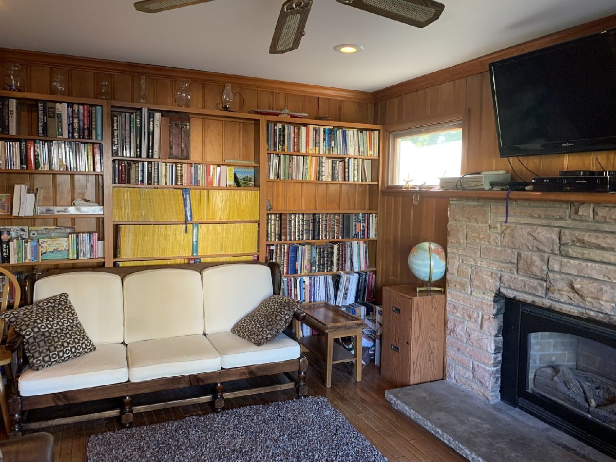 Adorable home on a corner lot with loads of charm. This home was once occupied by a lumber yard owner and it reflects the love for quality woodwork within the house. The attractive screened in porch greets you as you walk to the front door. Inside you will find custom cabinets, built-in cupboards and shelving, a bay window and a gas fireplace and an open concept through large arched door openings on the main floor. Two bedrooms on the second floor have built-in desks and dressers and in addition the master features a walk-out to a balcony. A 4th bedroom could be used as a guest room for Grandma. A custom wet bar and a wood burning fireplace are located in the cozy basement media room. Outside, a concrete patio, garden beds, and perennials look on to a view of Hallgren Park. A newly installed solar panel system will help you save on electricity. Take a short walk to downtown for entertainment and food if you wish. This home is just waiting for a new family to move in and add their own special touch!