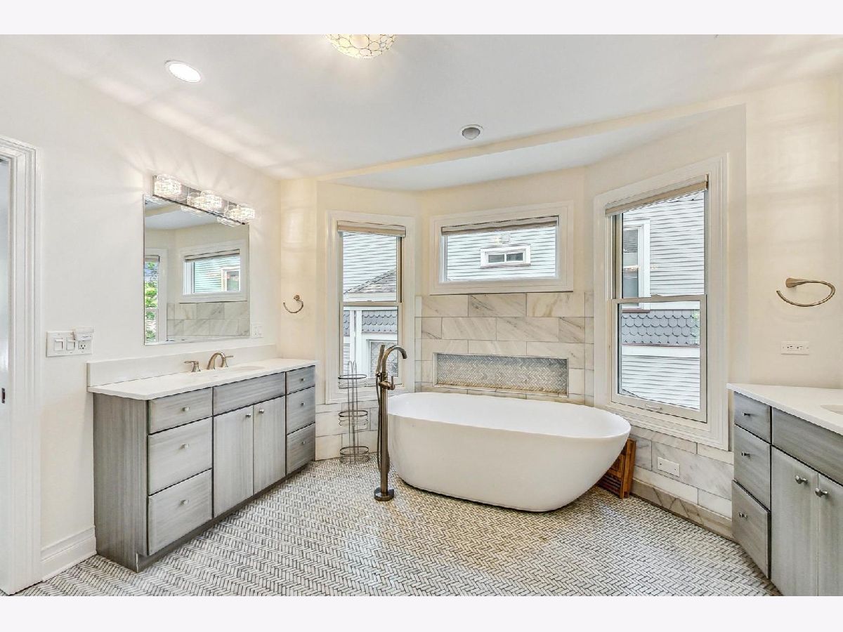 Stunning E.E. Roberts 3 flat converted into a single family in 2015, located in Central Oak Park. All new (2015) Pella windows/backdoor, HVAC (zoned), kitchen and baths. First floor open floor plan, kitchen w/ high end appliances, wine/beverage fridge and quartzite island. 2nd floor with 4 beds, oversized master with fireplace, balcony and bath w/ 2 vanities, soaking tub, walk in shower and an additional bed with ensuite. Huge, finished basement with high ceiling, drain tiles and sub pump w/ backup. 3rd floor with large living room, private bedroom and full bath. Large front porch w/ porch swing and spacious back deck. In 2023- rebuilt chimney, washer/dryer and a complete backyard reno with new turf, putting green, gas fire pit, pavers/patio, designer landscape- zoned sprinkler system with app control, solar lighting, new cedar fence and sport court. 3 car garage with coach house or party/game room (21'x28') potential. Walk to downtown Oak Park, schools, parks, and public transportation.