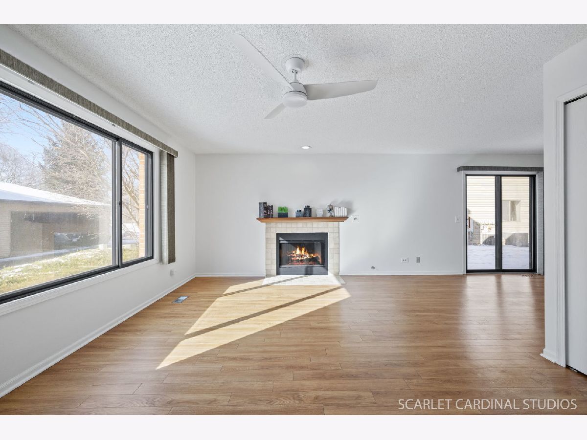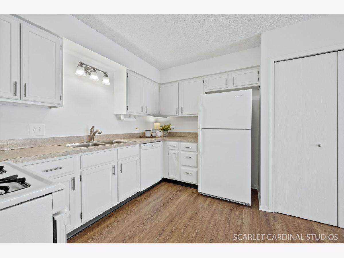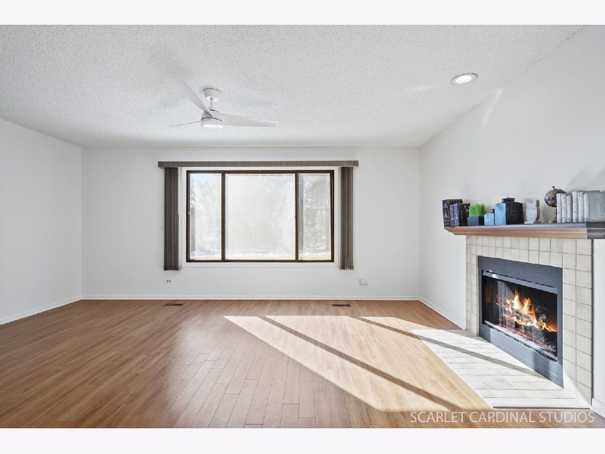 PINE BROOK MEADOW CONDOMINIUMS! Tucked away in a lovely quiet residential neighborhood just minutes from charming downtown Geneva with all its amazing eateries and quaint shops, this 2 bedroom, 2 updated bath (including a primary bedroom suite with full bath and door to a private covered patio ) home awaits your arrival! Expect an easy open design with additional living spaces that include: a living room with gas log fireplace to cozy up to for movie or game night; a dining area with sliding glass doors to a patio perfect for summer grilling; a well appointed kitchen with pantry; and laundry room with shelving and convenient utility sink. Features include great natural light, vinyl plank flooring, fresh soft neutral color palette, updated lighting & ceiling fans, 1 space detached garage (shared) and additional convenient guest parking. Close to parks, bike trails, and Metra! IMMACULATE AND MOVE IN READY! Recent updates include: fresh interior painting, ceiling fans, carpeting, & updated bathrooms (new walk-in shower in bathroom, tile floors in both bathrooms, luxury vinyl in primary bedroom, laundry room.
