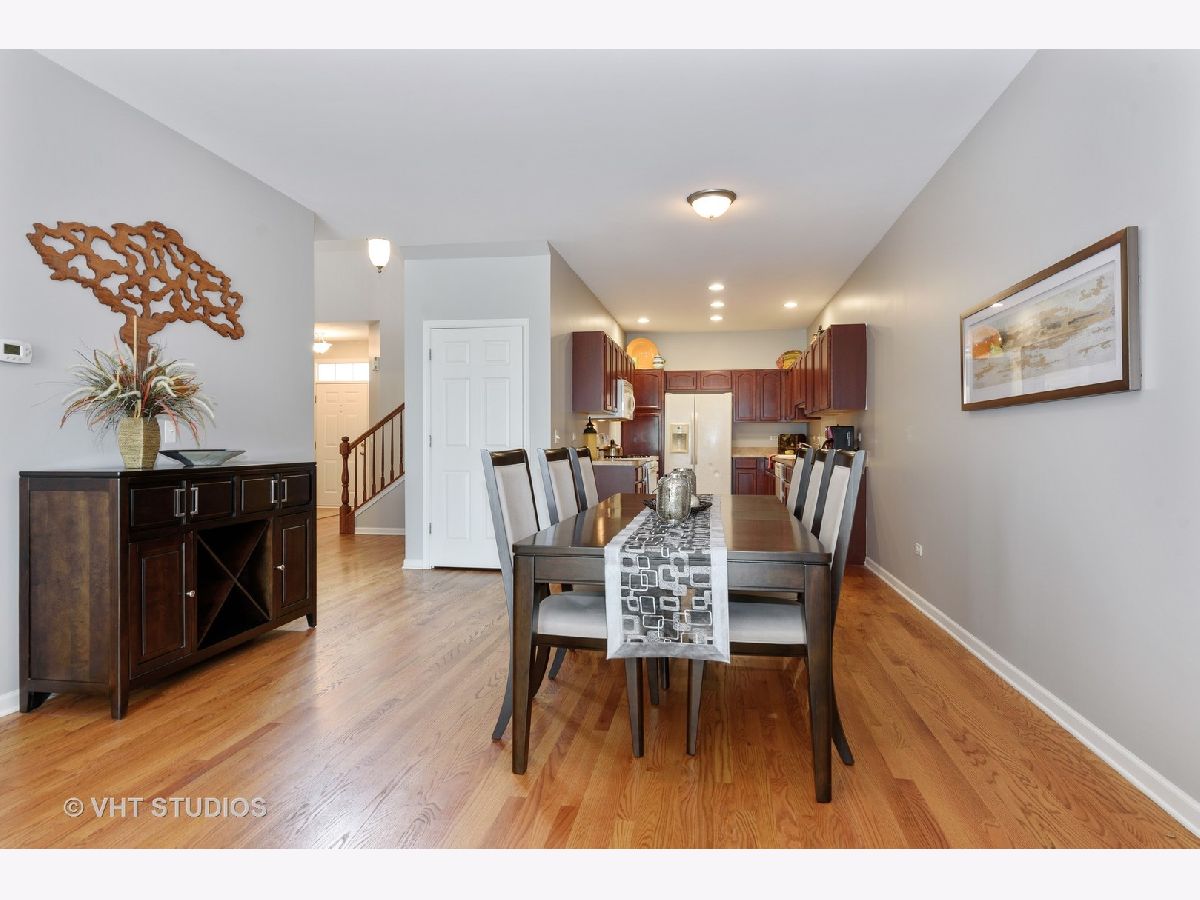 Rarely available, two story townhome with a Finished Walk-Out Basement set on a prime location in popular Cambridge Bluffs backing to mature trees and overlooking the Fox River. Sought after FIRST FLOOR PRIMARY BEDROOM is carpeted, has a tray ceiling, large walk-in closet, ensuite bath with double vanity, soaking tub and separate walk-in shower. Convenient First Floor Entry from both the 2 car garage and front door lets you bring your groceries right in without lugging them up a flight of stairs! Gleaming Hardwood floors run throughout the main level living space. Wonderful open concept living! The nice sized kitchen with tons of Cherry cabinets and lots of counter space is open to the large dining room which flows into the living room with a cozy gas fireplace and sliding glass doors to the spacious deck. The 2nd level is fully carpeted and has a large loft for additional living space and 2 additional large bedrooms with huge walk-in closets. You'll also find the 2nd full bath with double vanity and a tub/shower combo. Fabulous finished walk-out basement has engineered hardwood floors, sliding door access to a private patio, and a 3rd full bath. An abundance of finished space to be configured as you wish - family room, game room, exercise studio, or add a bed and it's the perfect space for out-of-town guests! Ideally located, enjoy the gorgeous views from the deck, easy access to the Fox River Trail for biking and hiking, close to parks, dining, shopping, parks and Metra.