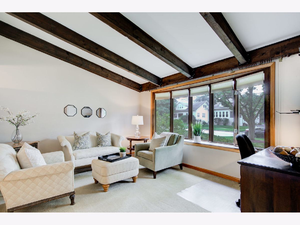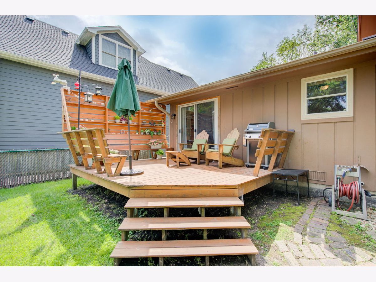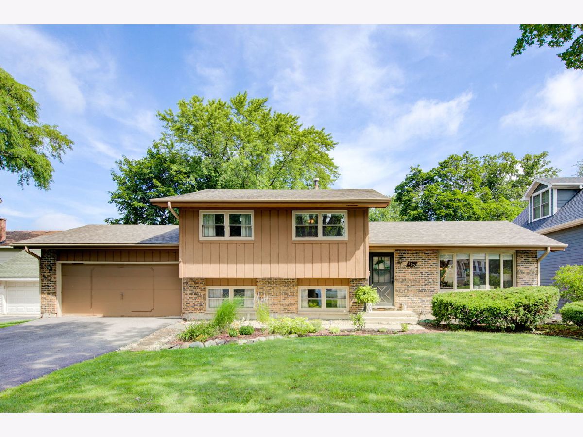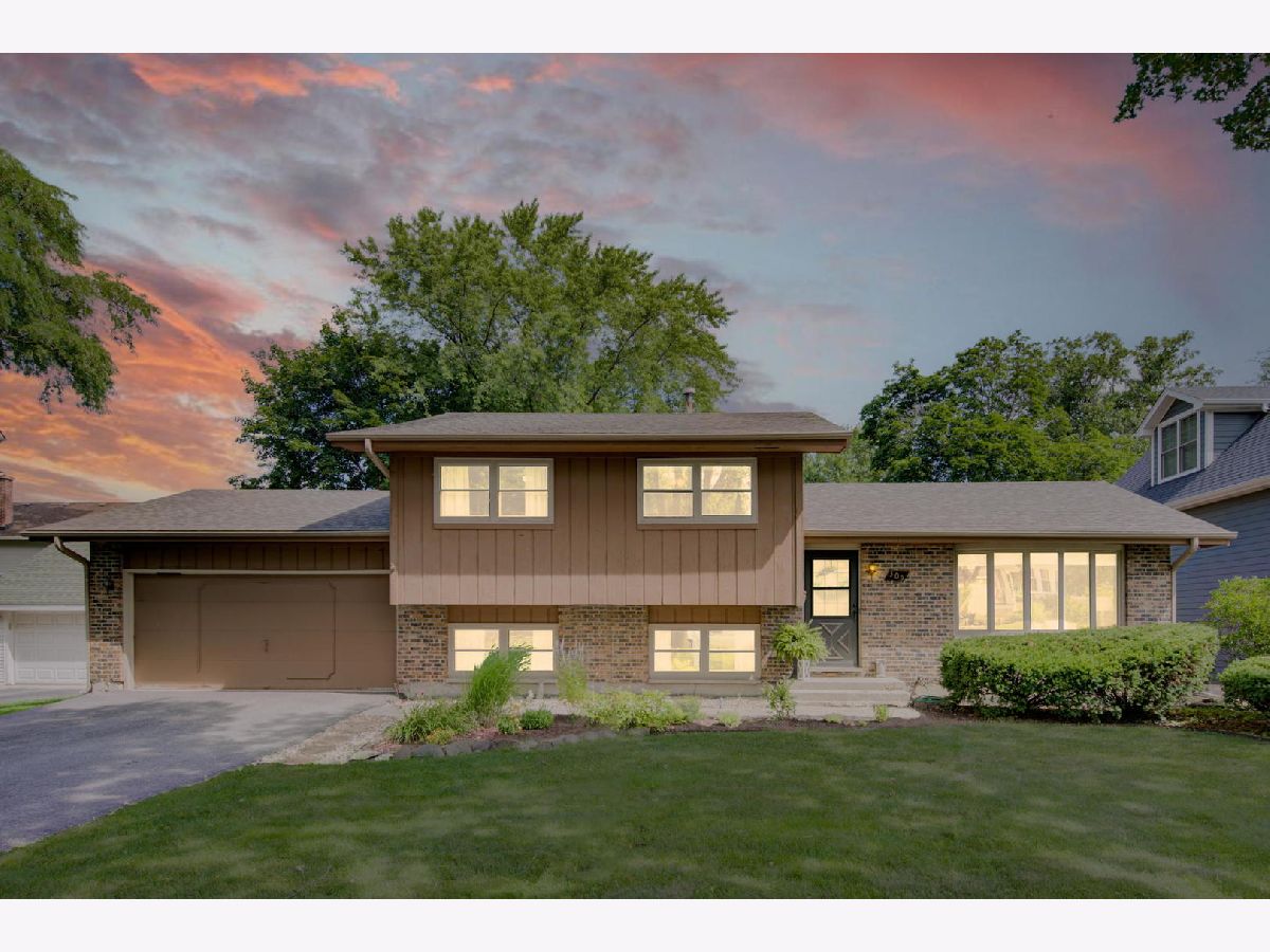 Location, location, location. Steps from Mariano's, the train, farmers market, dining and shopping finds this delightful three bedroom, two bathroom split level home on a tree lined street. Three levels of living space with extra wide stair cases leading both up and down. The oversized living room windows allow for streaming sunlight throughout. Vaulted beam ceilings create a spacious look and feel that is great for entertaining.The private deck off the kitchen is a great place to enjoy the professionally landscaped back yard with all its beautiful and colorful flowers. The driveway and roof are new.