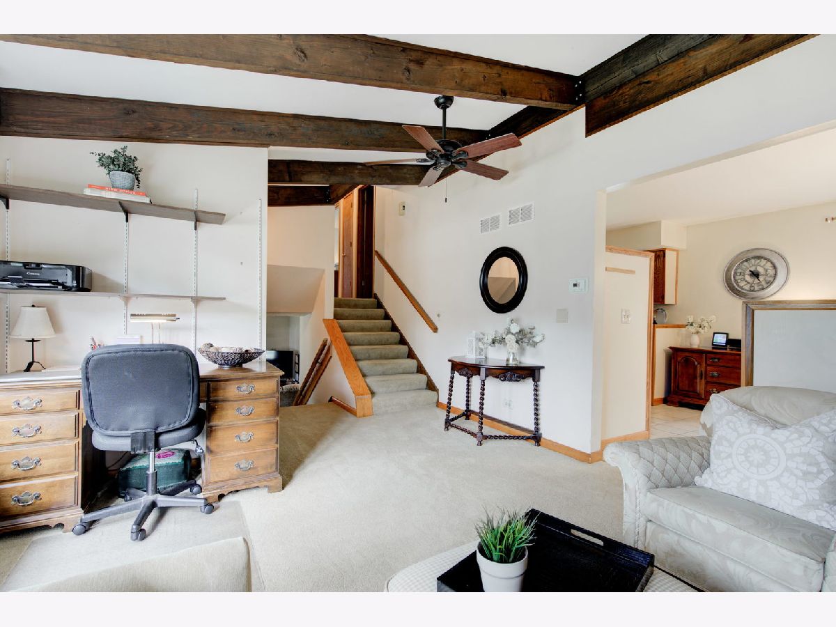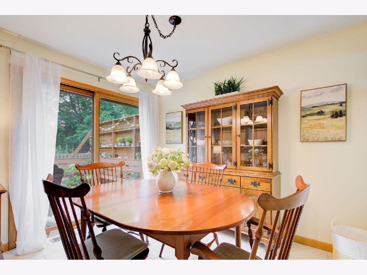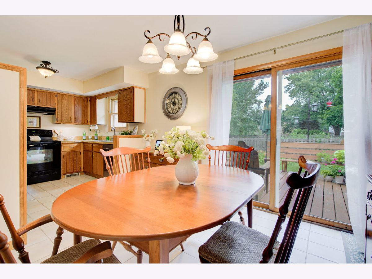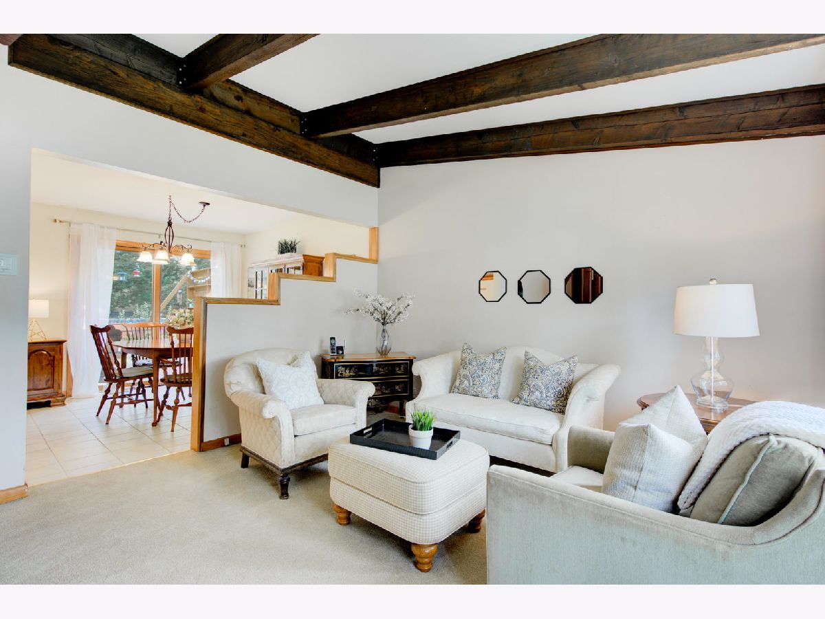 Location, location, location. Steps from Mariano's, the train, farmers market, dining and shopping finds this delightful three bedroom, two bathroom split level home on a tree lined street. Three levels of living space with extra wide stair cases leading both up and down. The oversized living room windows allow for streaming sunlight throughout. Vaulted beam ceilings create a spacious look and feel that is great for entertaining.The private deck off the kitchen is a great place to enjoy the professionally landscaped back yard with all its beautiful and colorful flowers. The driveway and roof are new.