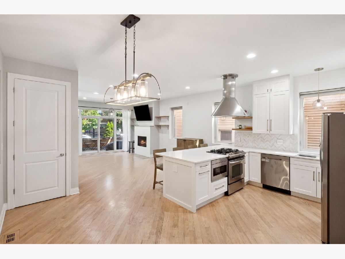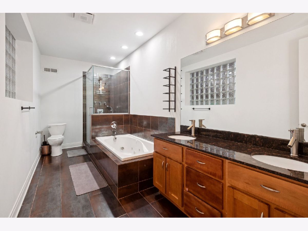 Welcome to this sprawling 3-bedroom, 2.5-bath duplex down, offering the perfect blend of modern luxury and comfortable living. This spacious home includes an additional den with beautiful hardwood floors throughout. Enjoy a spa-like experience in the expansive primary bathroom, complete with radiant heated floors throughout basement, a jetted tub, and a walk-in shower with body sprays for ultimate relaxation. The chef's kitchen is a true showstopper, featuring sleek finishes, gold accents, and ample storage space to accommodate all your culinary needs. Entertain or unwind in the open-concept living and dining area, anchored by a charming gas fireplace that creates a warm and inviting atmosphere. Step outside to enjoy not one, but two generous outdoor spaces-including a private walk-out patio measuring 17 by 11 feet-perfect for grilling, relaxing, or hosting guests. This home also offers tons of storage throughout, ensuring you'll never run out of room to keep everything organized. Included is a convenient garage parking space, adding to the ease and comfort of urban living. HVAC, Furnace & Water heater replaced in 2022. Ideally located within walking distance to public transit and all the dining, shopping, and charm of Roscoe Village, this home combines luxury, comfort, and an unbeatable location. Move in and enjoy everything this exceptional property has to offer!