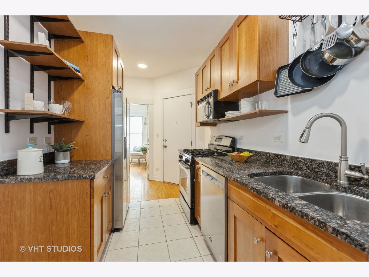 HOT! HOT! HOT! RAVENWOOD MANOR AREA! THIS FIRST FLOOR, 2 BEDROOM, 1 BATH CONDO HAS SO MUCH TO OFFER. GREAT SOUTHERN EXPOSURE & LOTS OF NATURAL LIGHT, SCALING 9' CEILINGS, UPDATED THROUGHOUT, INTERCOM SECURITY ACCESS, HARDWOOD FLOORS, EXPOSED BRICK WALLS, GRANITE COUNTER TOPS, CHERRY SHAKER CABINETS, NEW STAINLESS STEEL KITCHEN APPLIANCES, NEW BATHROOM WITH GORGEOUS SUBWAY TILES, IN UNIT LAUNDRY, OVERSIZED CLOSETS WITH CUSTOM ORGANIZERS, CUSTOM DESK & WALL SHELVING. IN UNIT CONTROLLED FORCED HEAT AND CENTRAL A/C. NEW OVERSIZED COVERED PORCH/DECK, A FANTASTIC SEPARATE & PRIVATE WALKOUT (900 SQ/FT) BASEMENT THAT'S PERFECT AS YOUR MAN CAVE AND/OR ENTERTAINMENT AREA AND INCLUDES, CUSTOM BUILT FLOATING SHELFS & BAR COUNTER. ITS A GREAT ATMOSPHERE. ANOTHER BASEMENT AREA WITH YOUR OWN DESIGNATED STORAGE LOCKER. NEW CONCRETE SIDEWALK & FENCE AT BACK OF BUILDING. LOVELY LANDSCAPED AREAS, WALK TO CTA BUS, BROWN LINE TRANSIT, LINCOLN SQUARE, HORNER PARK, COFFEE SHOPS, RESTAURANTS, SHOPPING, RIVER TRAILS, AND SO MUCH MORE. LOW TAXES AND ASSESSMENTS, AND PET FRIENDLY. EVERYTHING YOU'VE BEEN LOOKING FOR.