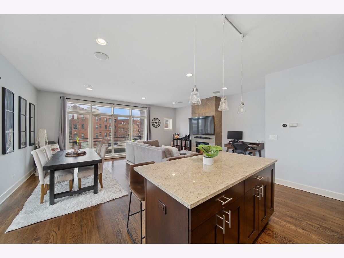 Immerse yourself in the bright, open elegance of this exceptional 2-bedroom, 2-bathroom condominium, thoughtfully designed for modern living. Enjoy generous natural light throughout the spacious layout, where comfort meets style in every corner. The residence includes convenient garage parking, adding ease to your daily routine. Whether you're entertaining or relaxing at home, this condo offers the perfect blend of functionality and charm. A focal point fireplace anchors the open-concept living area, creating a warm and inviting ambiance. Through sliding glass doors, step onto the first of two private balconies, where neighborhood views and a peaceful vibe offer the perfect place to relax and recharge. The primary suite offers a true sense of luxury with heated floors and a Jacuzzi tub in the en-suite bathroom, ideal for unwinding in comfort and style. This home offers premium features, including integrated surround sound speakers, a Nest smart thermostat, and a direct-access elevator secured with a private code. A true pet-friendly oasis, it warmly welcomes your four-legged companions. Located just a short walk from Roscoe Village shops and restaurants, you'll love being near popular neighborhood spots like Hexe Coffee, Turquoise Cafe & Restaurant, and Village Tap. This home truly places you in the heart of it all. You'll also enjoy easy access to Mariano's, public transportation, the expressway, and a wide array of local grocers, coffee shops, and more.