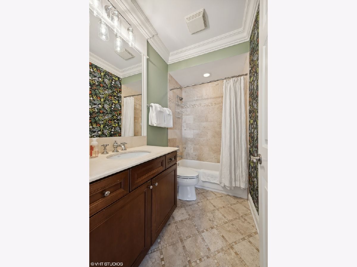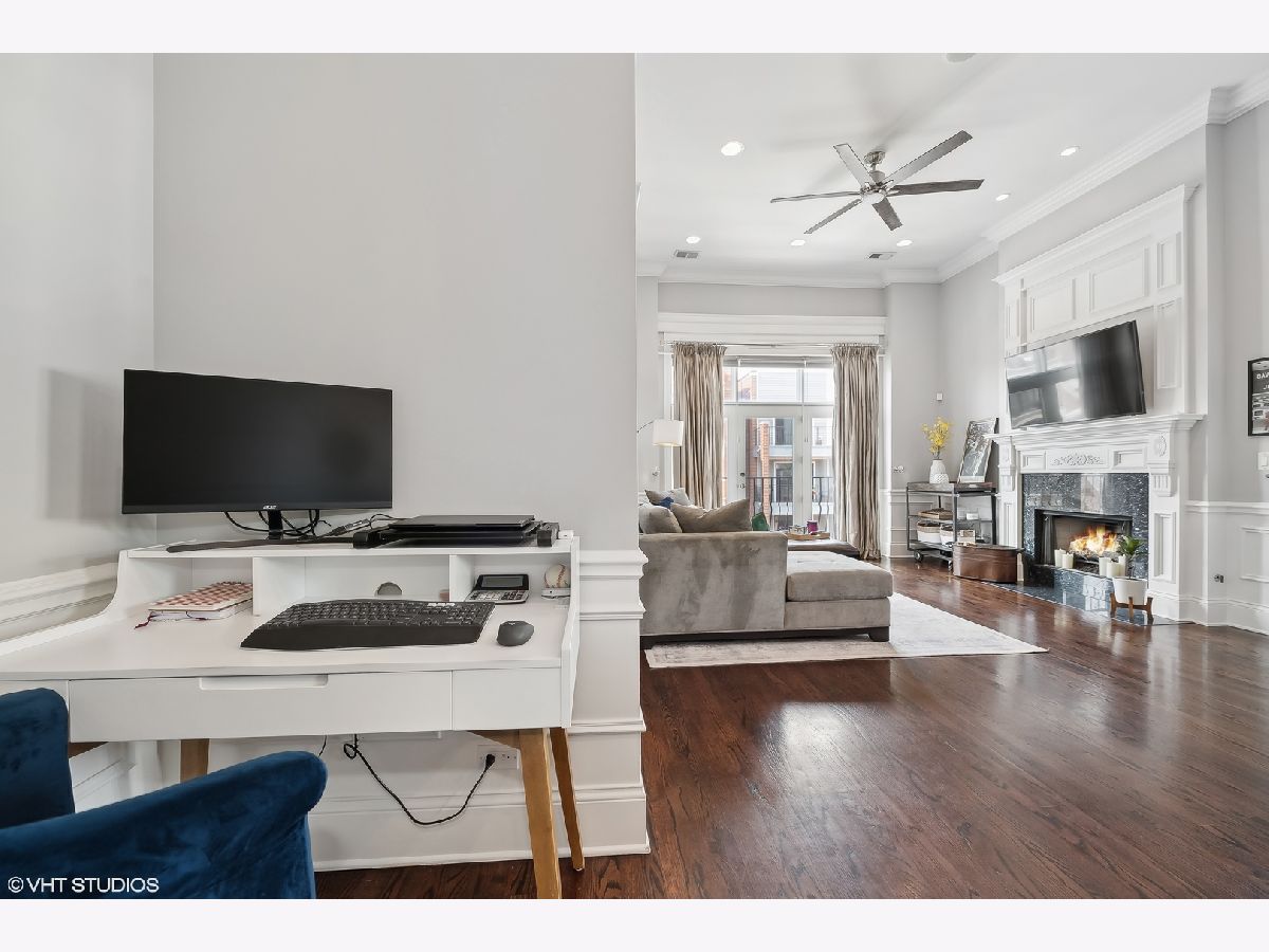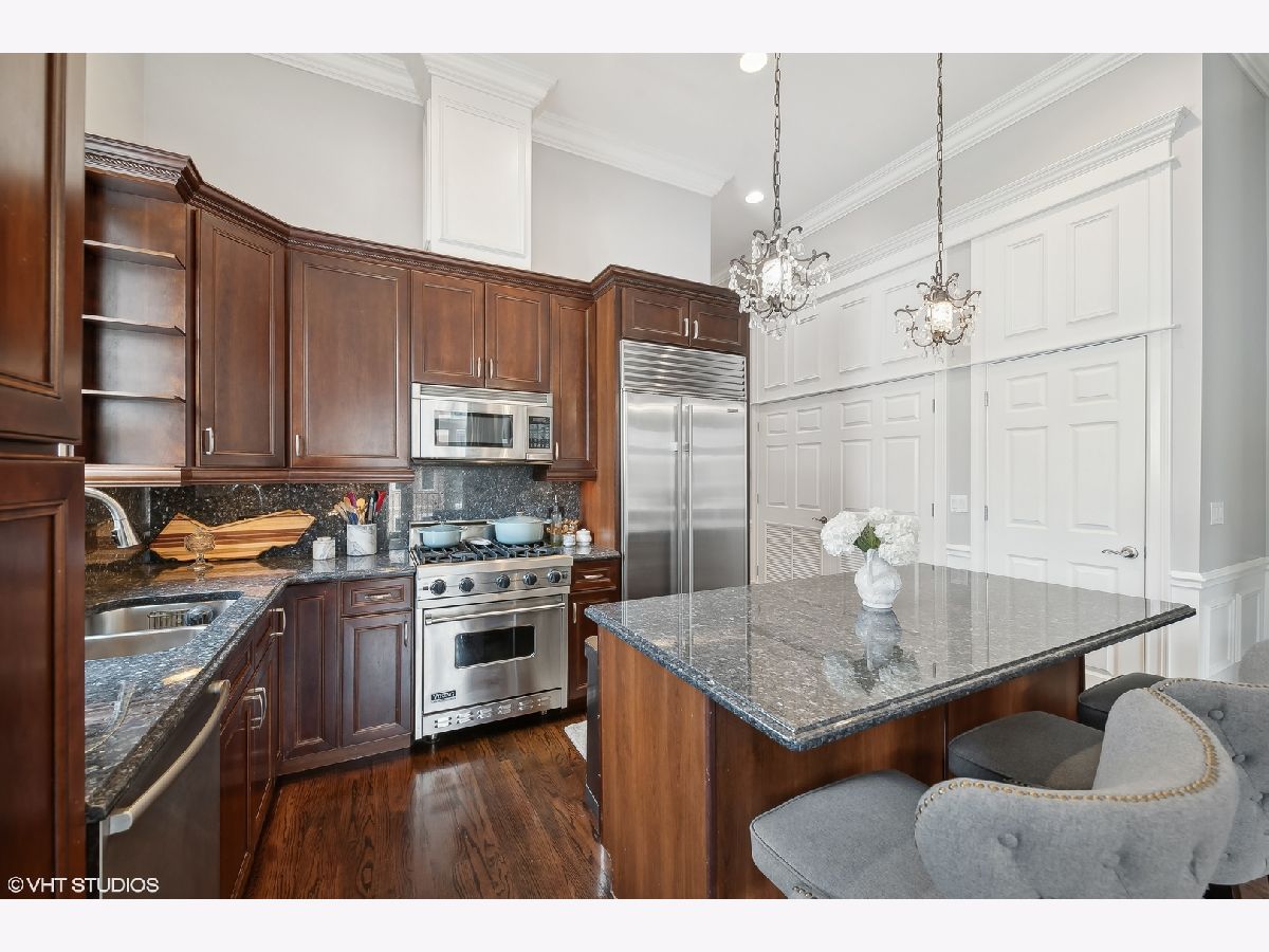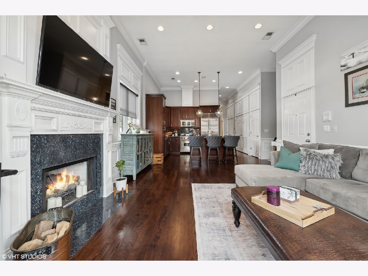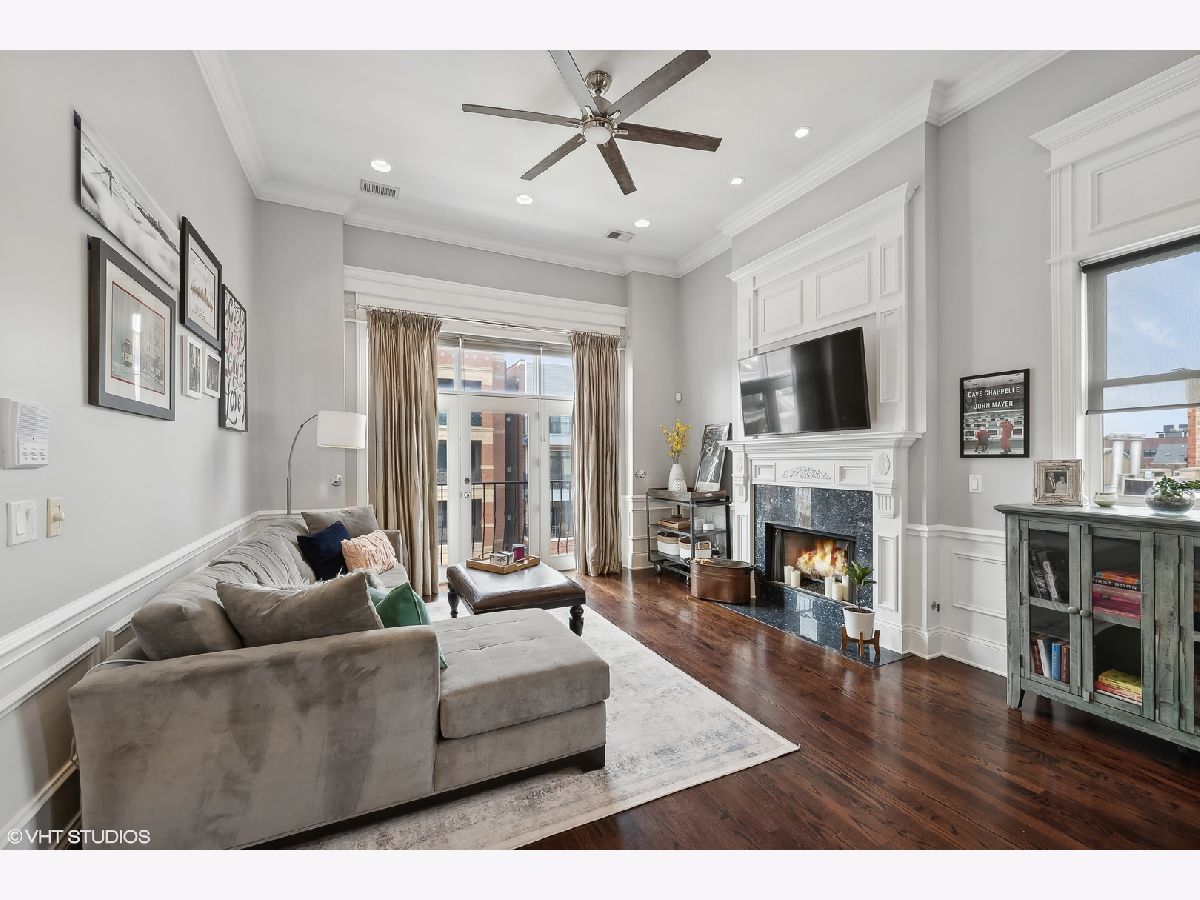 Introducing a stunning penthouse in Roscoe Village, offering 2 bedrooms and 2 bathrooms with soaring 12+ ft ceilings. This impeccably designed residence boasts elegant hardwood floors and custom millwork throughout. The expansive, light-filled living space is perfect for entertaining and intimate moments, featuring a gas fireplace, a large private deck, along with coveted roof rights. The eat-in kitchen is equipped with a large center island, 42" custom wood cabinetry, premium SubZero, Bosch, and Viking appliances, a wine fridge, luxurious stone countertops, and a large pantry. A spacious primary suite offers custom-designed closets and a spa-like bathroom with stone countertops, a deep soaking tub, a separate walk-in shower, double vanity, and a private water closet. Additional features include a side-by-side washer/dryer, low assessments, and an unbeatable location just steps from local Roscoe Village shops, Costco, boutique cafes, renowned dining, and the vibrant Hamlin Park. This sophisticated penthouse combines luxury living with the best of city convenience.