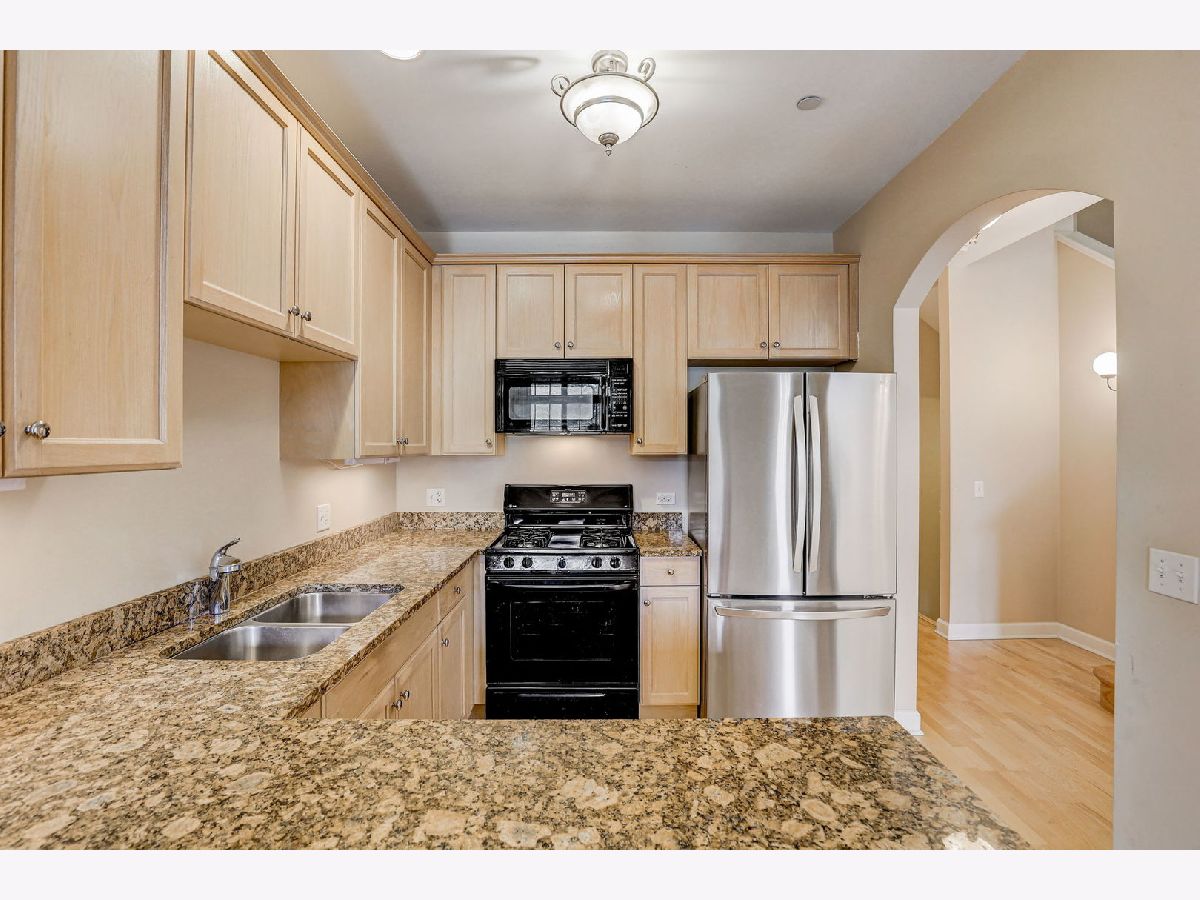 Fabulous opportunity in the heart of Morton Grove, this beautiful 2 bedroom, 2.1 bath townhome with vaulted ceiling and a 2 car garage is move in ready and waiting for you! As you enter the home, you'll be greeted by an inviting open-concept living room with a 2-story ceiling and dining room, designed to create a seamless flow throughout the main floor. Hardwood flooring continues throughout the main level into the kitchen with 42" cabinets, granite countertops, and an eat-in area with sliding doors that lead to a fantastic outdoor space, perfect for all your grilling and entertaining needs. Upstairs, the second level offers two generously sized bedrooms, each with its own full bathroom. The primary suite includes a full bathroom, a walk-in closet, and sliding doors leading to additional exterior space on a charming outdoor patio. The second bedroom is equally spacious and with access to another full bathroom complete with a tub. A convenient second floor laundry finishes off the upper level. The lower level features a large family room with plenty of natural light, perfect for entertaining and/or a home office. NEW AC in 2023, water heater-2021, and refrigerator-2022. Located in the highly sought-after Woodland/Park View School District, this property is just steps away from an array of shops and restaurants, beautiful bike trails, and parks for outdoor enthusiasts. Commuting is a breeze with the Metra Train Station just two blocks away, and easy access to I-94.
