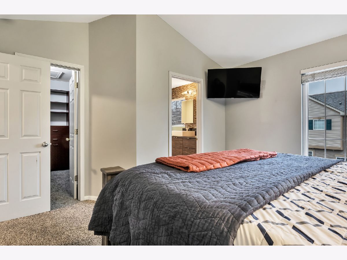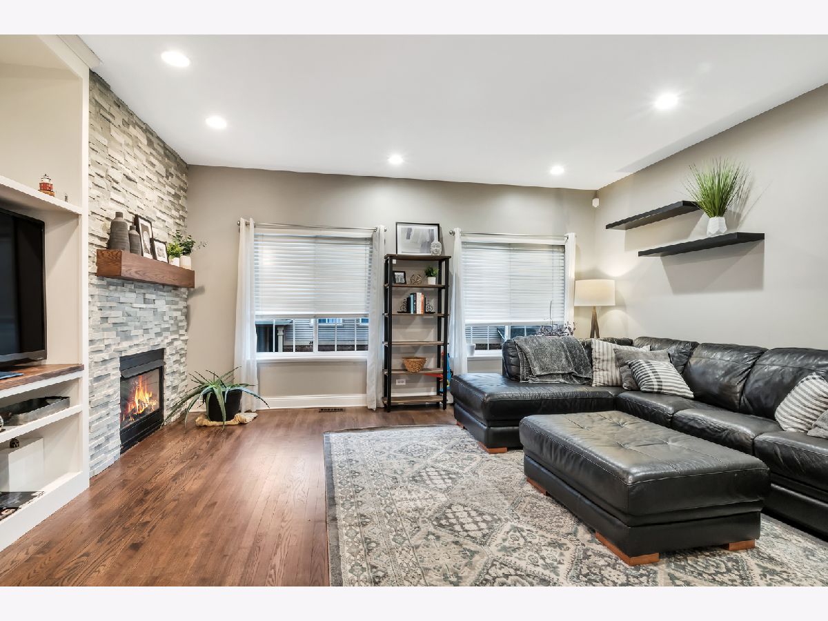 This is a gorgeous property - magazine photo worthy! There is a custom built-in for your entertainment system and custom fireplace and wood mantel in the living room which also has beautiful hardwood floors and a vaulted ceiling. The kitchen features an island, a pantry and a custom dry bar with mini fridge! The master bedroom features a vaulted ceiling and walk in closet with wonderful built in organizers. There is also a master bathroom with soaker tub, separate shower and double vanity! The lower level has built in shelving and finished nook from garage! Beautiful subdivision with pond and park! This is a very convenient and livable location close to expressways, shopping and restaurants to make life easier! Be sure to see this soon.