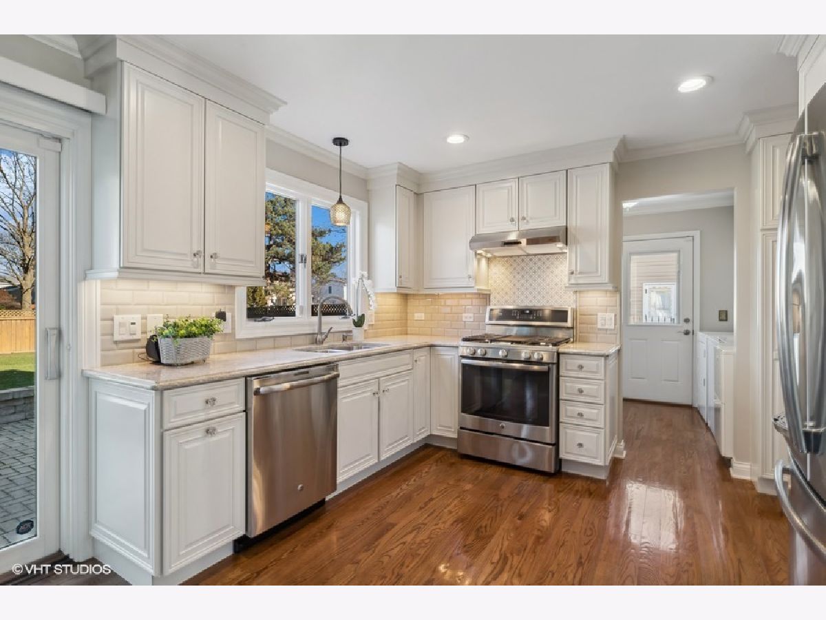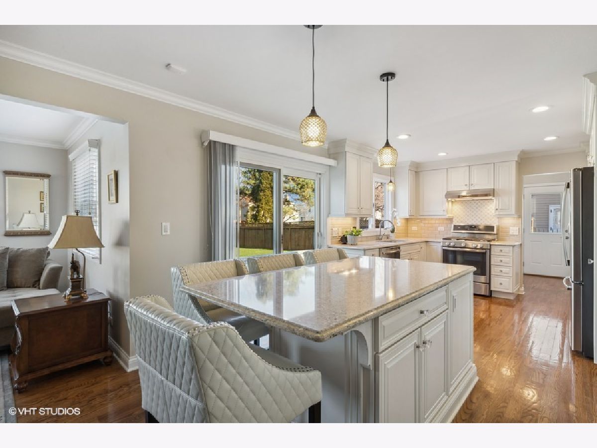 This fabulous home in Glenview is move in ready, has been beautifully renovated, features 4 bedrooms / 2.1 baths and is in the Top Ranked and Award Winning Glenview School Districts #34 & #225! The kitchen, baths & plumbing have all been redone and there are newer hardwood floors throughout the 1st floor. The classic entrance foyer welcomes you to this wonderful home that is a prefect blend of luxury and warmth but also comfortable for family living. The chefs kitchen features SS appliances, granite countertops, white cabinetry, crown moldings, recessed lighting and there is a large granite island with room for seating. Sliders open to the brick paver patio and private backyard that is completely fenced in. The kitchen opens to the sun-filled family room with a bay window, a fireplace & built-in bookcases. The formal dining room is perfect for hosting dinner or holiday gatherings & the large living room is ideal for relaxing with family & friends. The open floor plan is great for entertaining! The 1st floor powder room also been remodeled. The main level is complete with a laundry room that has a utility sink, cabinets and a newer Pella door. The upper level consists of 4 generously sized bedrooms and 3 walk in closets. The primary bedroom has a walk in closet with organizers and the primary bath has been remodeled with a walk-in shower, vanity, tile flooring & lighting. The hall bath has been also remodeled with a new tub, tile, vanity with double sinks & a granite countertop. The basement is unfinished and offers more living space, has great potential & is ideal for storage. New Siding 2018. Updated Anderson windows throughout. Whole house generator. Security System. Attached 2.5 car garage. Close to town, schools, shopping & The Glen. Easy access to highways.