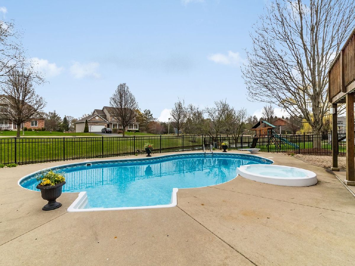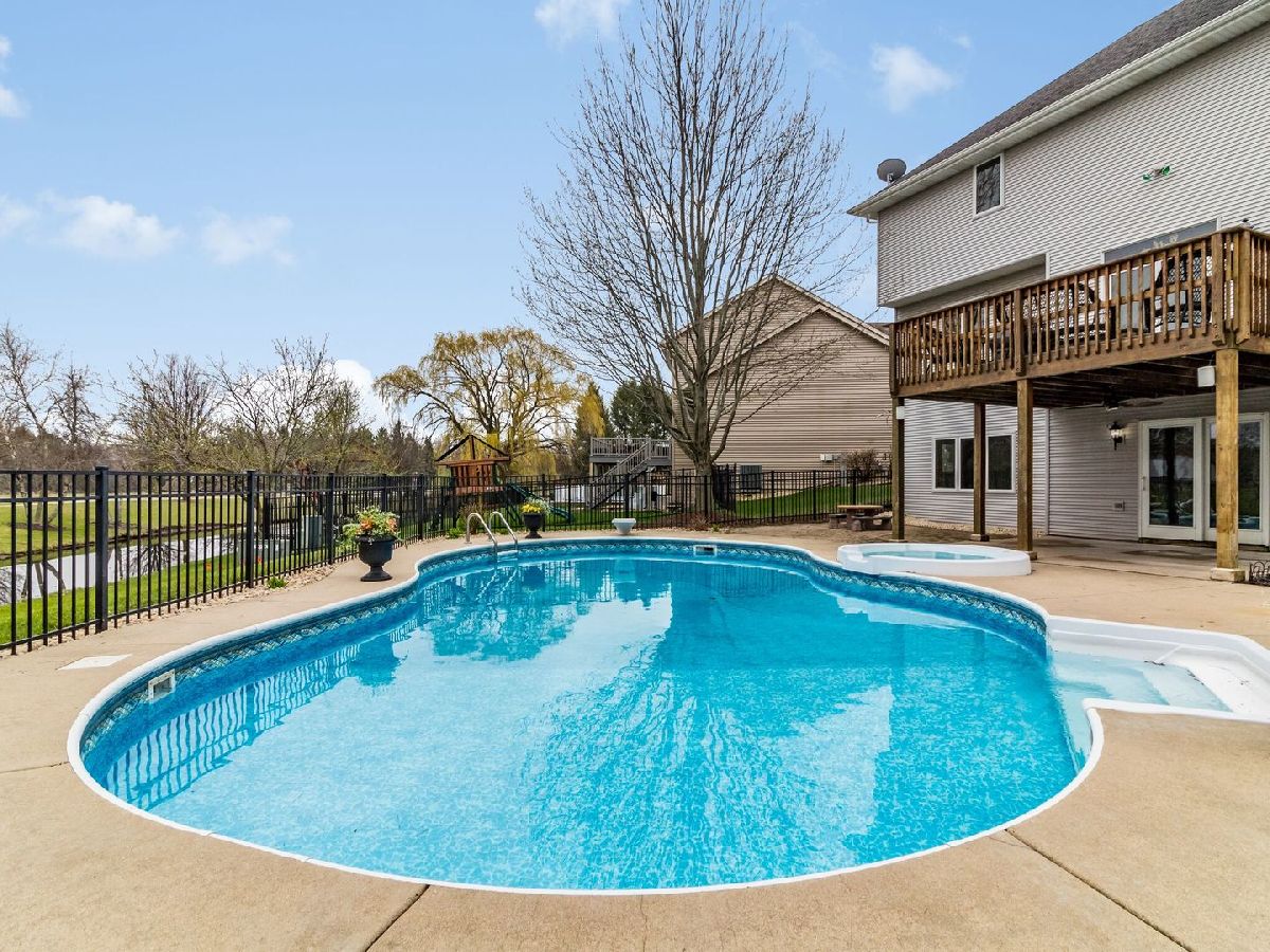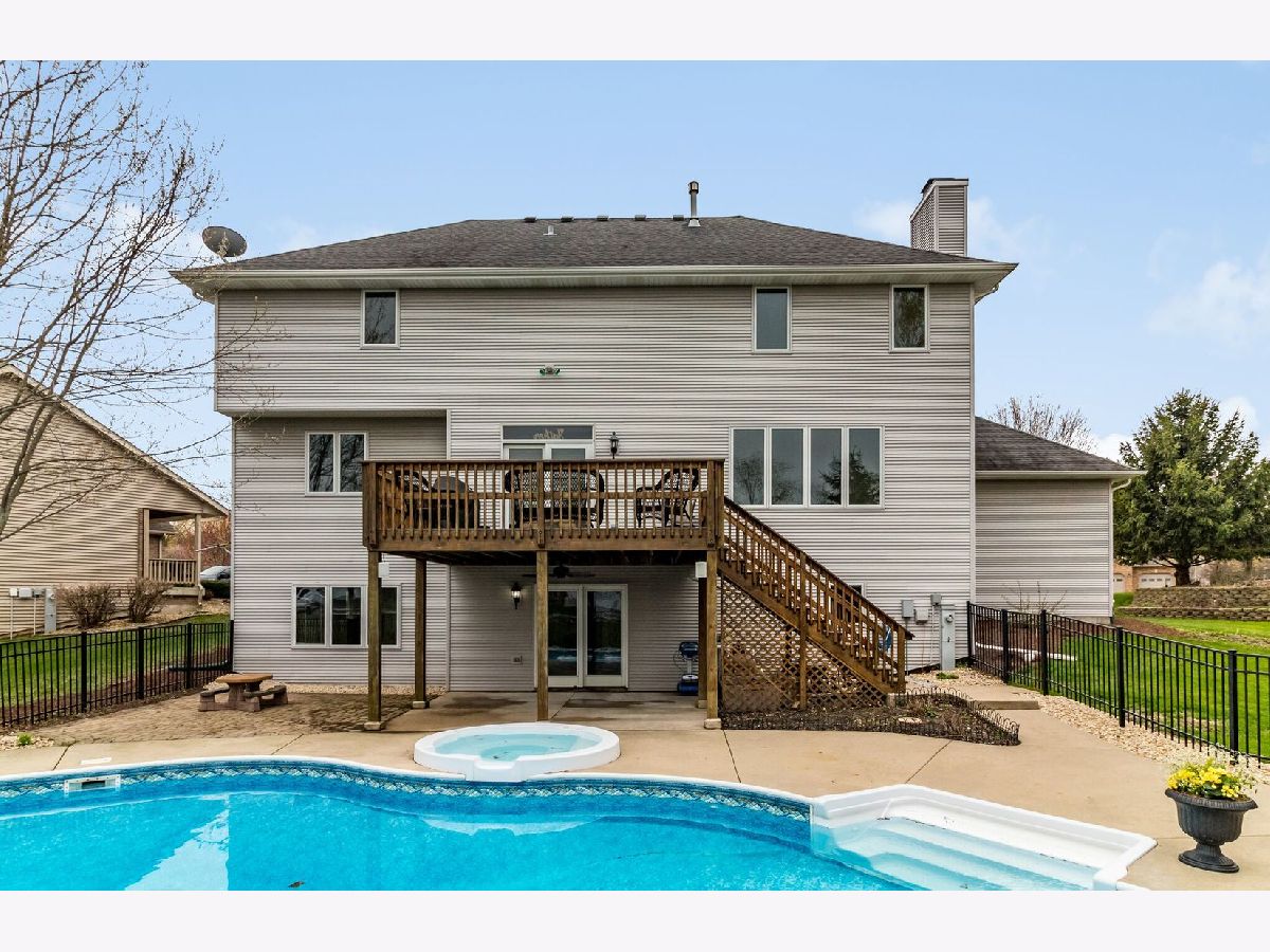 Covid19 Quarantined Blues? Walk right out of the finished basement patio doors to the in-ground heated pool or hot tub and relieve the tension of staying home 24/7. This 4 bedroom, 3.5 bath, 3 car garage, home is ready for your family to move right into and enjoy. Located in Bridges of Rivermist subdivision, just off of North 1st St, in DeKalb and only a couple of miles from Sycamore or Rt. 23 and Peace Rd for the shopper, restaurant seeker, or commuter. Family room has a gas fireplace, dining area in kitchen has patio door walk-out to the new Trex deck that leads down to the paver patio, pool area with ceiling fan under the deck. Newer in 2018, Gas S/S Range, S/S Refrigerator, Dishwasher and Built In Microwave are included. Great kitchen includes Aristokraft oak cabinets, granite counter tops and there are Oak 6 panel doors throughout home. Walkout Basement includes wet bar and a Shower has been added to the bath. Currently Living room is being used as an office. Formal dining room and 1/2 bath are on main floor. First floor laundry room leads to 3 Car garage. Garage has new TRS floor covering and Heater is negotiable, . Maintenance free fence surrounds the back and yard is nicely landscaped. Pool heater is 2 years old, new pump and equipment stay,**EXCEPT**, new pool electric vacuum**DOES NOT STAY.** Washer & Dryer **DO NOT STAY.**Seller will provide July, 2018 Survey at Closing. Enjoy the Virtual Tour! The basement has plumbed in floor heat from previous owner. It is not hooked up.