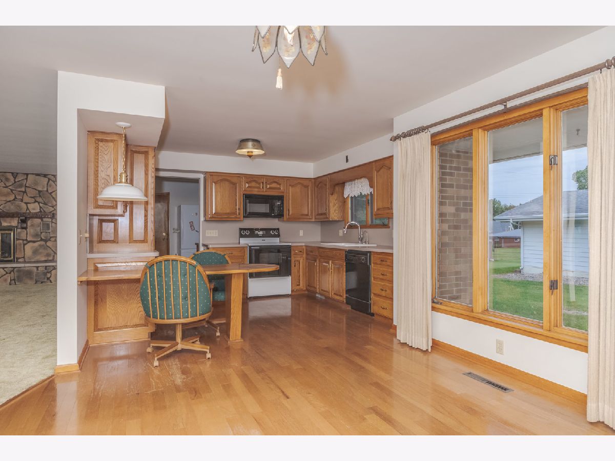 This is a sturdy, well-constructed all-brick ranch home featuring three bedrooms and two bathrooms. Situated on a corner lot, this home offers the elegance of beautiful hardwood floors in the kitchen and dining room, which are believed to extend beneath the bedroom carpets and possibly the living room as well. The spacious living room boasts a stone gas fireplace, creating a cozy focal point.The kitchen is a highlight with its solid oak cabinets and a convenient breakfast bar, seamlessly connecting to the dining room. From the dining room, a back door opens onto a sizable patio, perfect for outdoor enjoyment. Additionally, there is a generous utility room with ample storage cabinets.The property includes a two-car attached garage complete with a separate workshop area and extra storage space in the attic. This home truly combines functionality with charm and represents a great living opportunity.