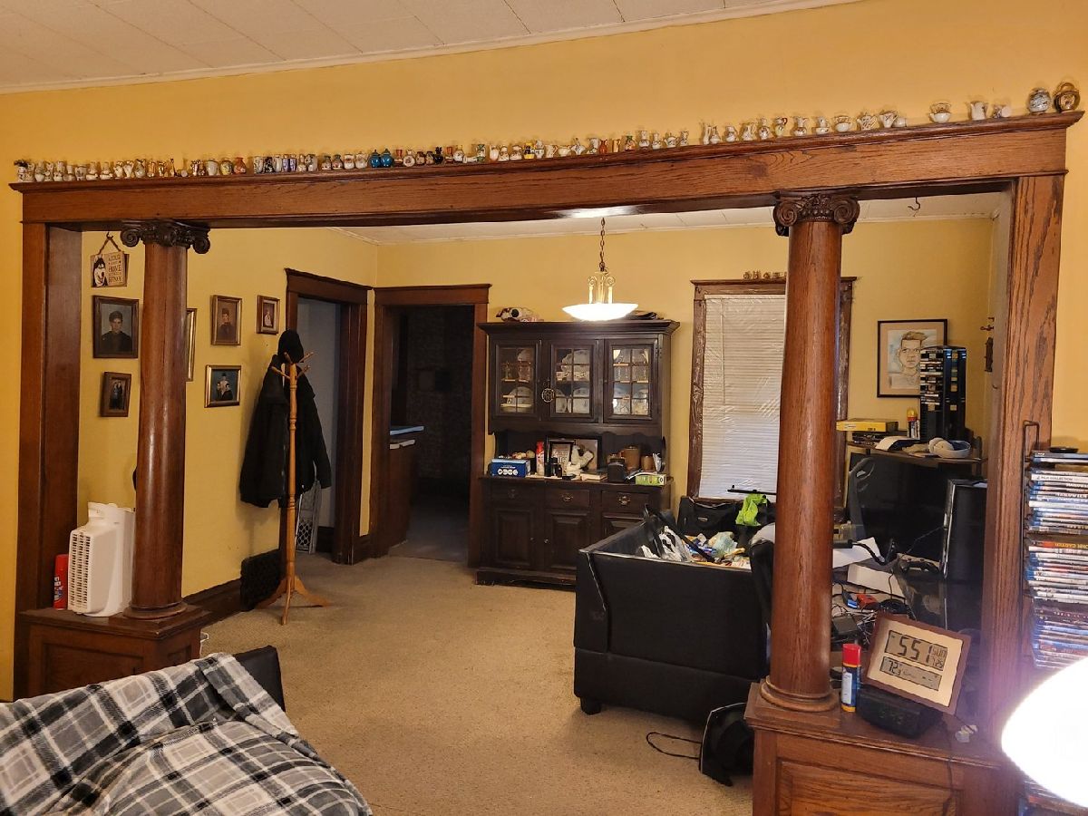 Loved for the last 50 years by the current owner, it is now time to make it yours. Original woodwork, hardwood flooring throughout. Kitchen has gorgeous built in pantry closet with floor to ceiling storage. First floor large master bedroom which has two entrances, one off the living area and a second for easy access to the homes first floor full bath. Large living room has original woodwork pillars/separation piece transitioning into large dining room with built in leaded glass and original woodwork buffet. The upper level has three additional bedrooms, one of which contains a private sitting area, 1/2 bath, built in original woodwork floor to ceiling cabinetry, and entrance to the third bedroom (think nursery) BUT, it is NOT a tandem, as the third bedroom ALSO has separate hall entrance. There is also a walk up attic, full basement, enclosed front and side porches. Much to appreciate here. Owner in process of ongoing cleaning and removing possessions. STRICTLY AS IS. NO FHA! ** MULTIPLE OFFERS RECEIVED, HIGHEST AND BEST CALLED FOR**
